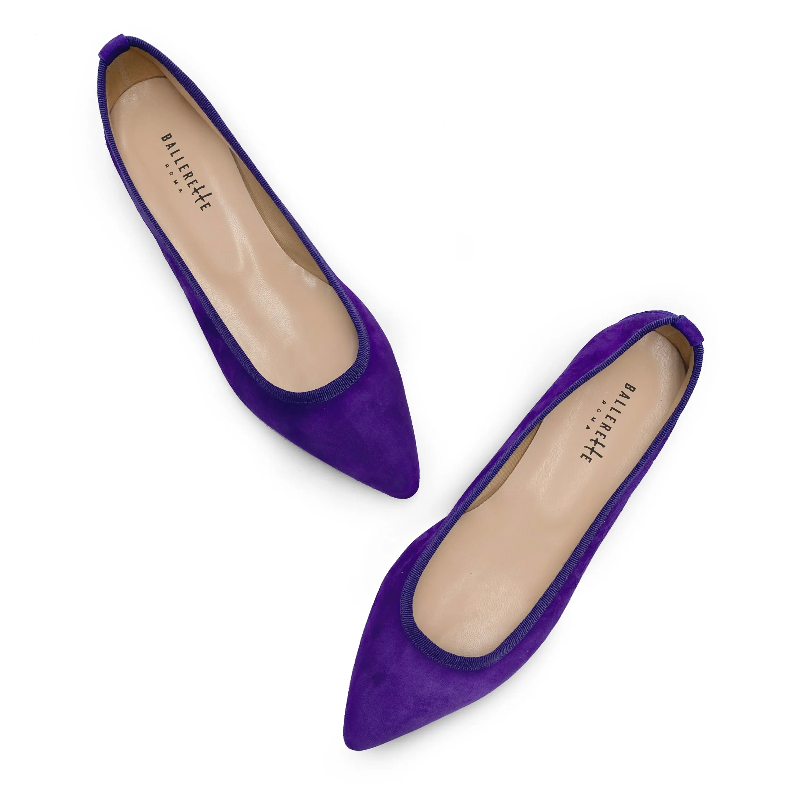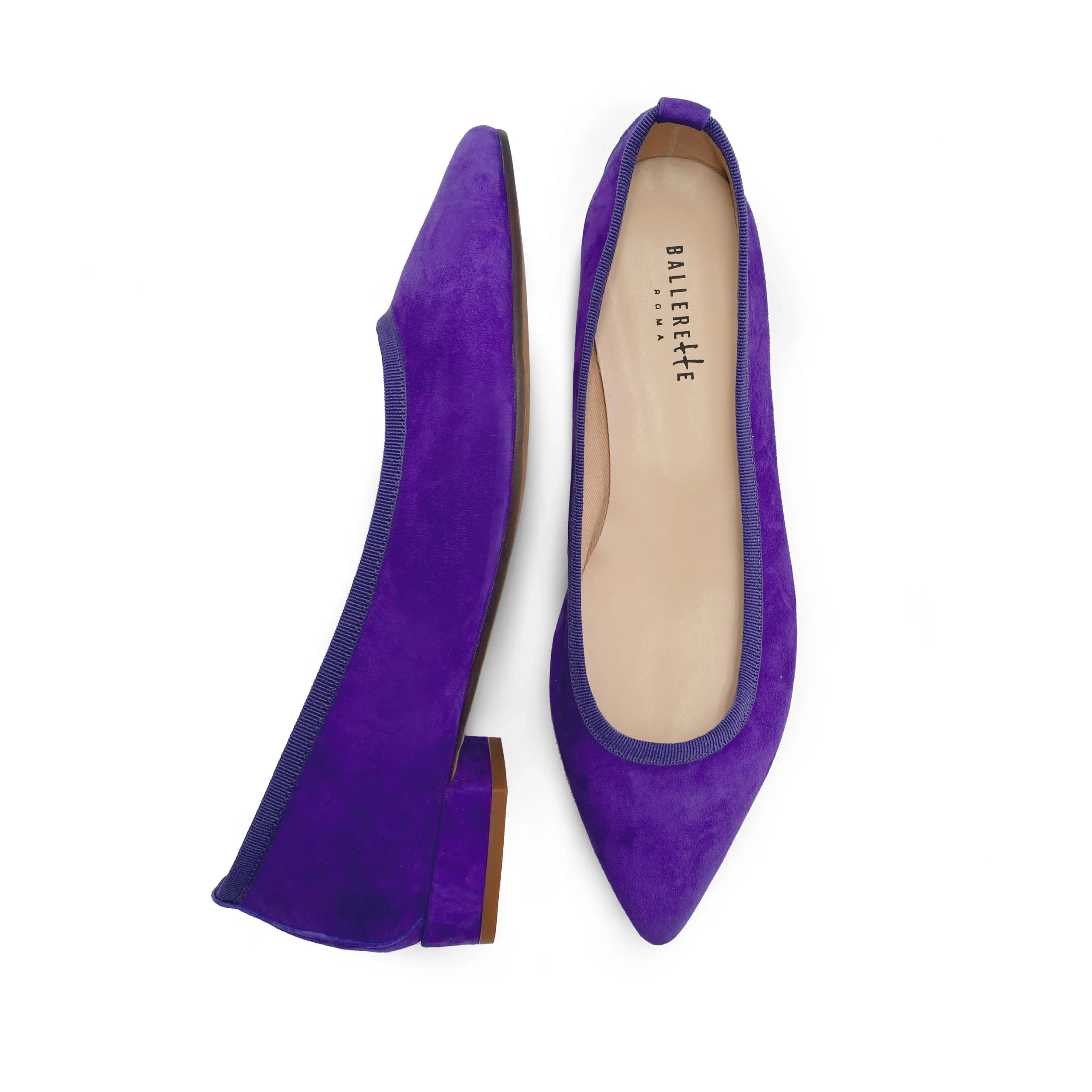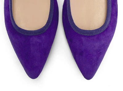 La caratteristica punta affusolata rende le ballerine Campo Marzio estremamente femminili e moderne. Leleganza delle linee è accentuata dalla rifinitura in gros grain della scollatura e la comodità e la vestibilità sono garantite dal sottopiede in pelle, dalla fodera in cotone e dal tacco di 2 cm, che conferisce inoltre ulteriore supporto. Un paio di ballerine a punta in camoscio viola è un accessorio particolarmente versatile, adatto per aggiungere un interessante tocco di colore anche ai looks più semplici, permettendo di creare outfits sempre nuovi: si abbina perfettamente a qualsiasi capo, dal classico paio di pantaloni a sigaretta neri ad un abito dalla stampa floreale.