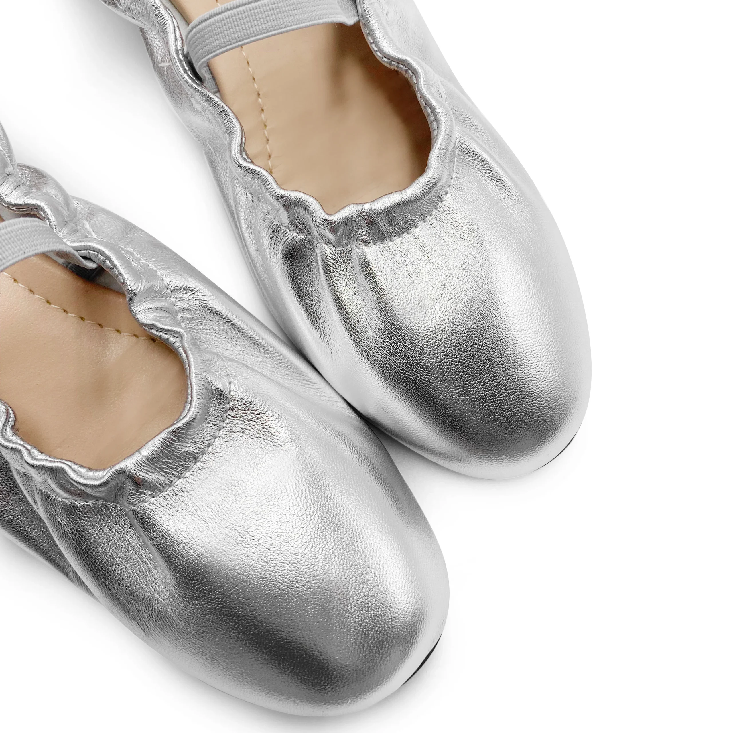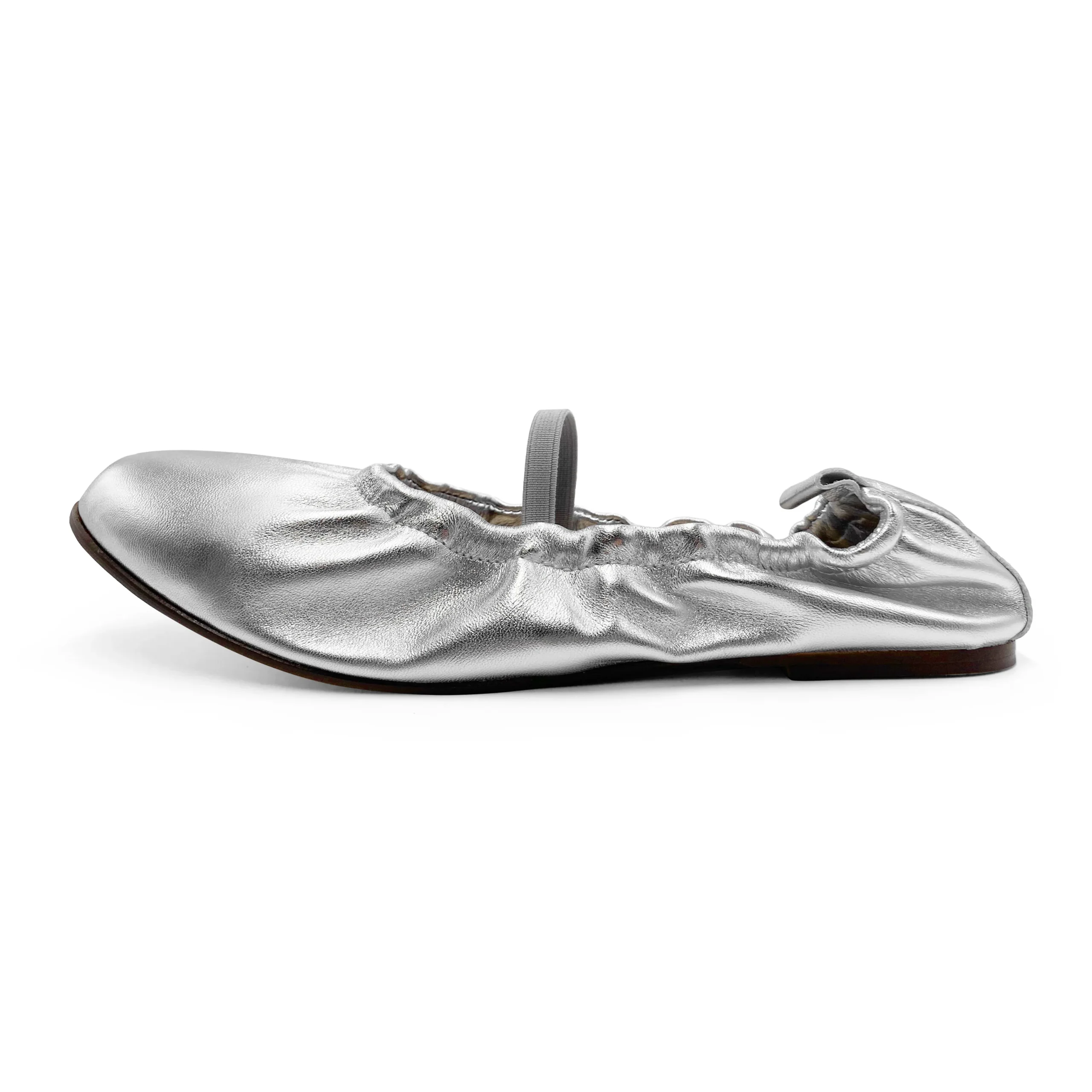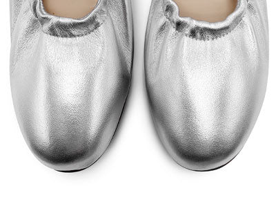 Le ballerine accollate Aniene in pelle laminata argento con cinturino elastico trasmettono tutto il romanticismo e il sogno legato al modello classico. Lo scollo alto e la linea minimal aggiungono un tocco contemporaneo e metropolitano che si addice anche a chi ha uno stile più rigoroso. Queste scarpette basse con laccetto risultano inoltre paticolarmente comode e avvolgenti grazie al pellame scelto e all’assenza di una fodera interna, in modo che possano essere calzate anche a piede nudo in estate. Il sottopiede è in pelle e la suola ha un tacco di 0,5 cm. Stupisci tutti abbinandole a un tailleur sparkling in total look o indossale semplicemente con i tuoi jeans preferiti e t-shirt oversize.