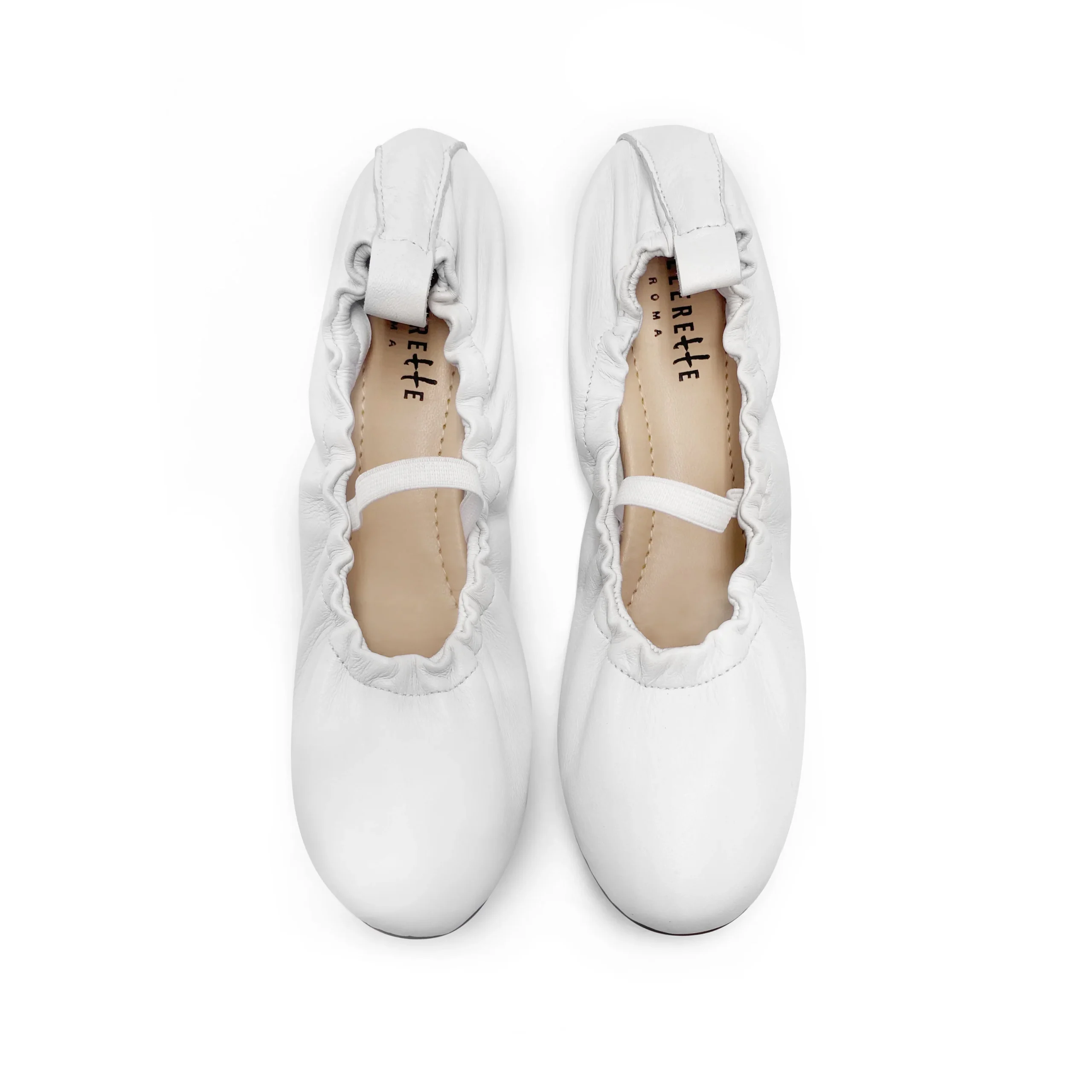 Le ballerine accollate con cinturino elastico, modello Aniene, si contraddstinguono per il loro stile minimal e moderno e la comodità di calzata. La scollatura alta, la punta tonda e la morbidezza del pellame, abbracciano perfettamente il piede e accompagnano ogni movimento. Il laccetto aggiunge un tocco baby e femminile che ricorda il mondo della danza classica. L’interno di queste ballerine di colore bianco ottico è senza fodera in modo che possano essere indossate anche a piede nudo nella bella stagione. Il sottopiede è in pelle e la suola ha un tacco di 0,5 cm. Il bianco è un colore must in estate abbinato al blu e al rosso, ma e’ da scopire anche in inverno con un caldo look total white in cashmere o con il marrone ciccolato.