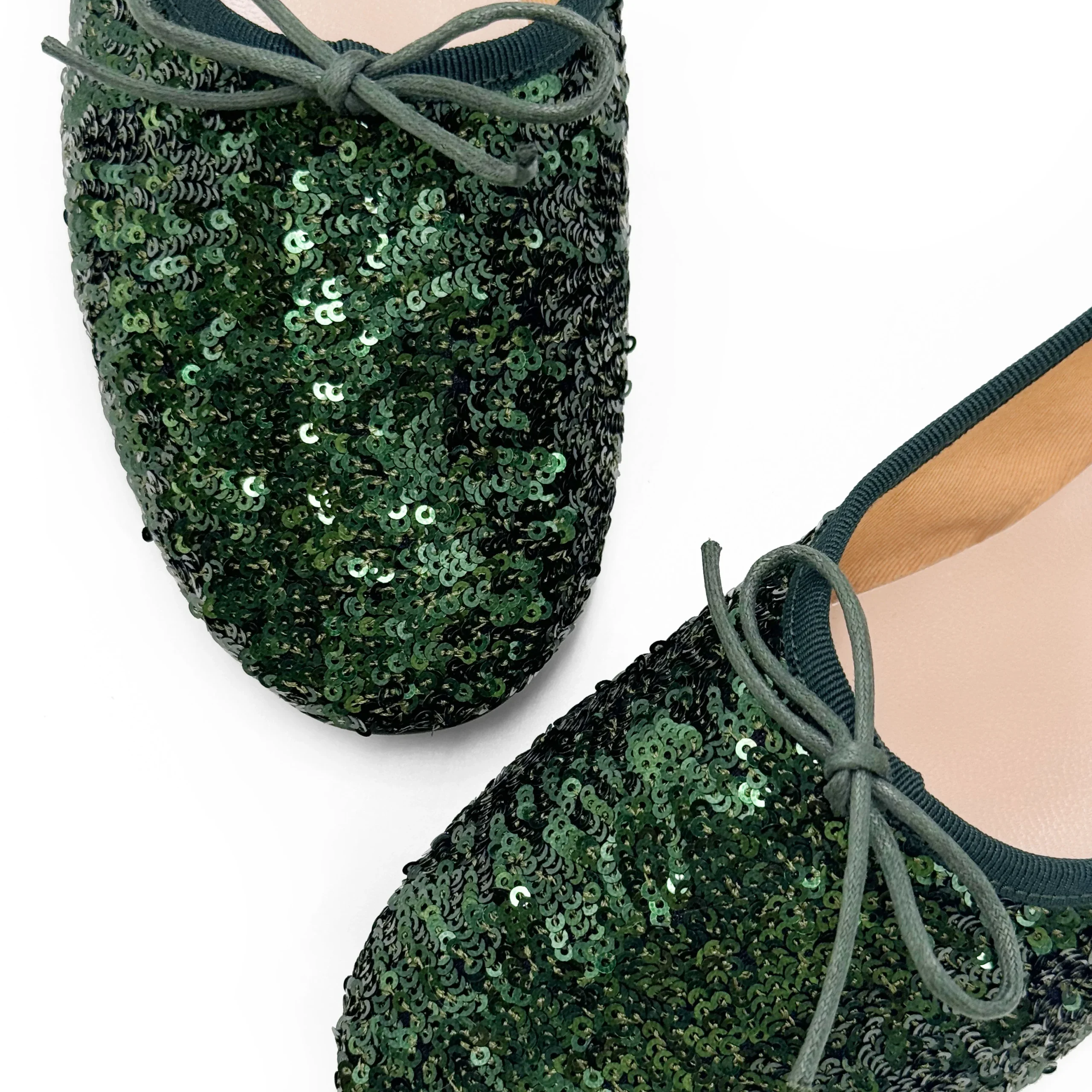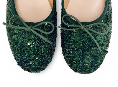 Le Parione sono ballerine accollate e avvolgenti, comode da indossare grazie alla forma che abbraccia tutte le tipologie di piede. Realizzate in tessuto di micro paillettes luminose verdi, possono essere scelte anche come ballerine o scarpe basse da sera per dare luce a ogni tuo outfit. La scollatura alta è bordata in gros grain tono su tono e al suo interno scorre un laccetto in cotone cerato che termina in un piccolo fiocco. Il sottopiede ha un’imbottitura extra per rendere più soffice l’appoggio. La fodera interna è in cotone e il sottopiede in pelle. Abbina le tue ballerine verdi con il nero, il marrone, il bronzo, ma anche tinte a contrasto come il viola e il rubino.