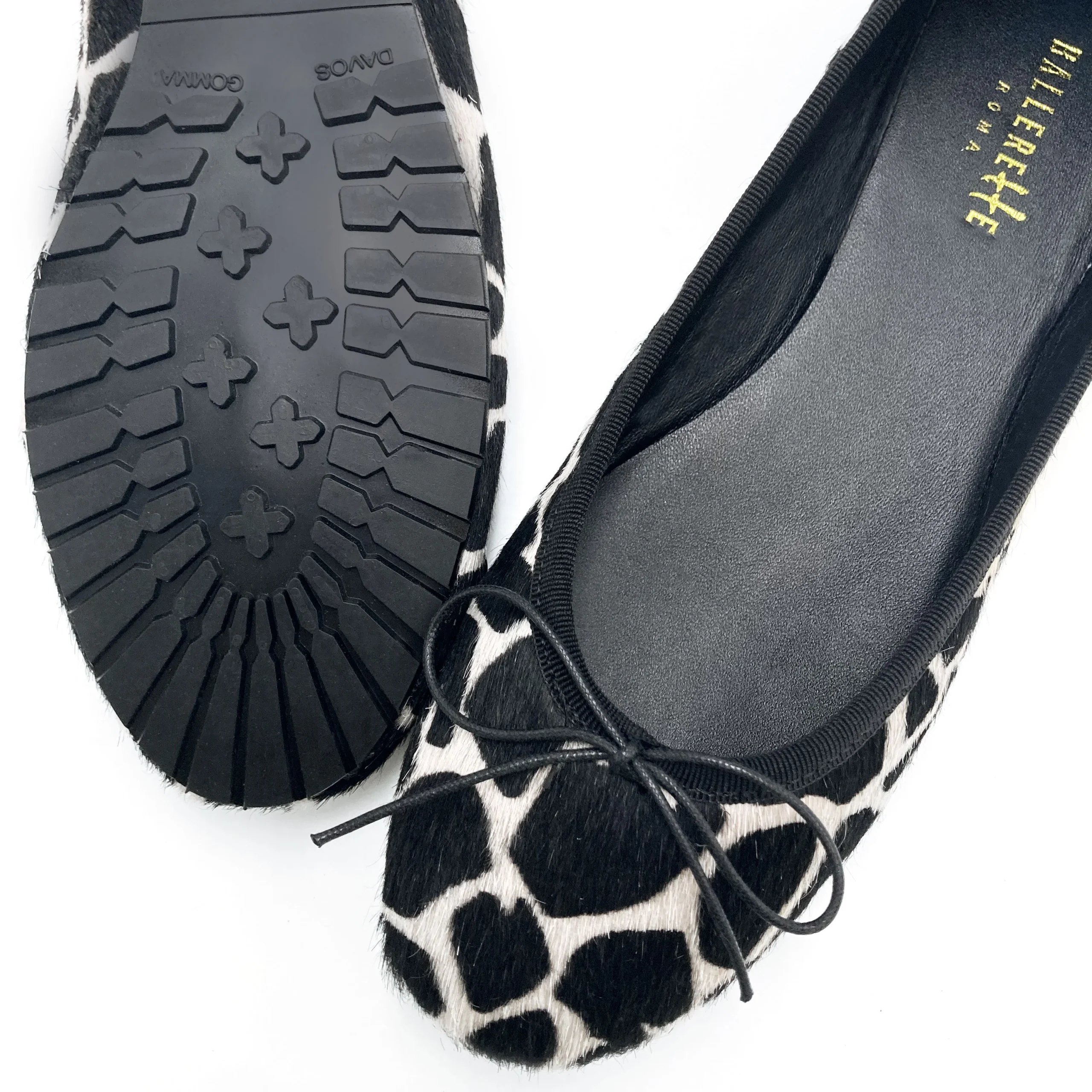 Le ballerine a punta tonda modello Colonna si distinguono per la loro linea morbida ed essenziale, che dona un’eleganza sobria ma contemporanea a chi le indossa. Pensate per chi cerca una calzatura raffinata ma facile da abbinare, questa versione in cavallino maculato è perfetta: oltre a catturare l’attenzione con il suo design deciso, garantisce grande comfort grazie alla tomaia in pelle cavallino, alla suola bassa e alla calzata regolabile con laccetto in cotone cerato. La tomaia presenta una ricercata trama a chiazze nere effetto giraffa su base bianca, per una lettura luminosa e originale del classico animalier. Completano il modello il profilo in gros grain nero che contorna elegantemente lo scollo e i dettagli interni in pelle, inclusi il sottopiede e la fodera, ideali per offrire traspirabilità e comfort anche nei mesi più freddi. La para leggera assicura una camminata stabile e piacevole, senza compromettere la leggerezza complessiva della scarpa. Le ballerine maculate modello Colonna sono un accessorio versatile e distintivo, perfetto per valorizzare la femminilità con discrezione e stile. Uniche nella loro semplicità ricercata, si prestano a moltissimi abbinamenti: ideali di giorno con pantaloni chino e camicia in denim, oppure con un coordinato in maglia nei toni neutri; di sera aggiungono un tocco sofisticato sotto un tubino rosso, una gonna midi in seta o un tailleur con pantaloni ampi. Scelte da chi ama unire comfort quotidiano, eleganza e stile personale in un’unica calzatura.