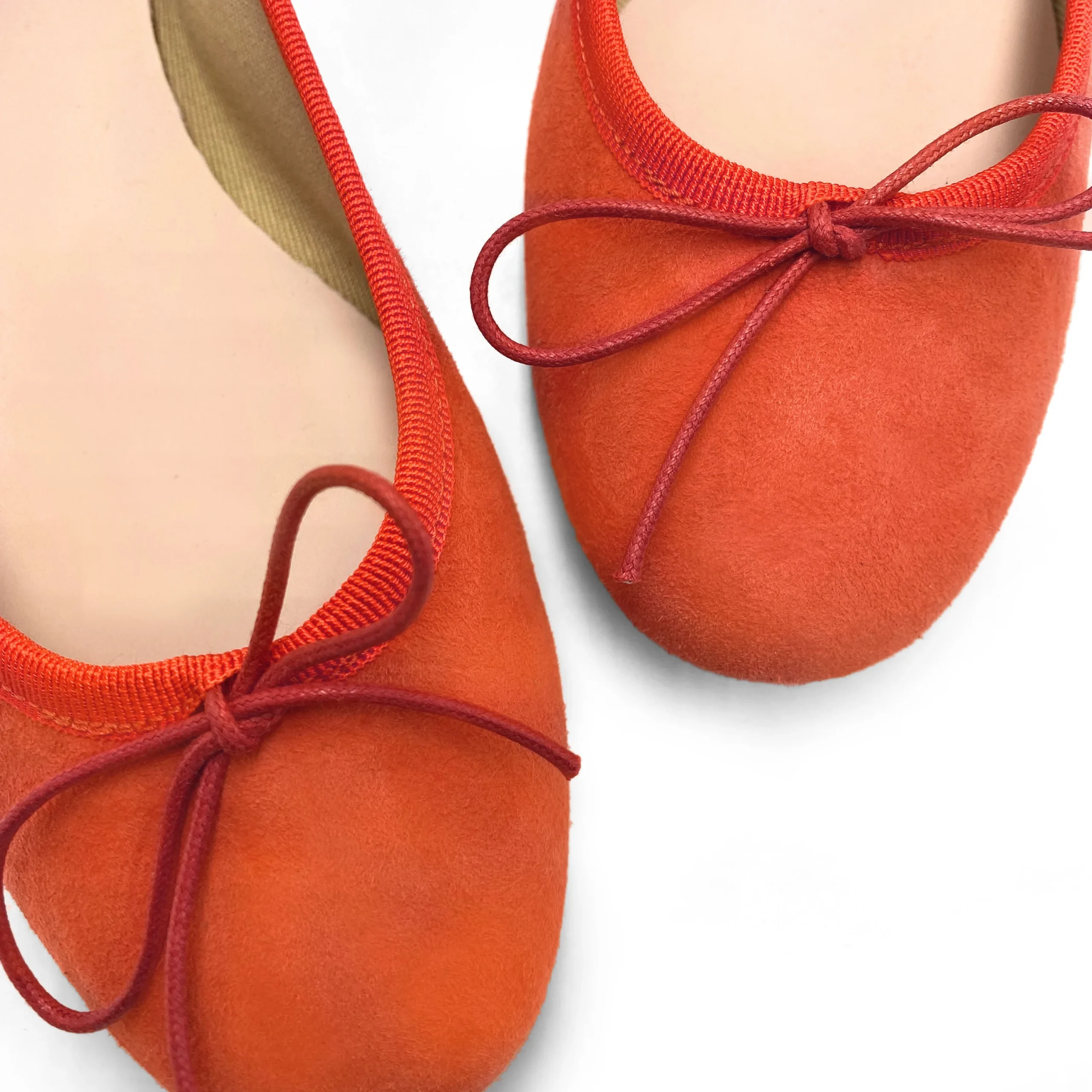 Le Colonna sono ballerine classiche a punta tonda, suola flat e tacco basso dell’altezza di 0,5 cm per una comodità costante nel tempo. Il bordo è realizzato in gros grain tono su tono ed arricchito con un laccetto regolabile in cotone cerato per garantire una calzata adatta a tutte le tipologie di piede. La fodera interna è in cotone per migliorare il comfort della calzatura grazie anche al morbido sottopiede in pelle presente in tutte le ballerine del modello Colonna. L’arancione è un colore audace ma adatto a tutte le stagioni, per questo le ballerine in morbido camoscio arancioni saranno un fido alleato nel vostro guardaroba per rendere speciale ogni look. Bianco, marrone e color cuoio abbinamenti con i quali andare sul sicuro per ottenere un outfit trendy-chic. Ma perchè non provare anche queste deliziose ballerine con un pantalone o una camicia melanzana? Potreste restarne piacevolmente stupite…