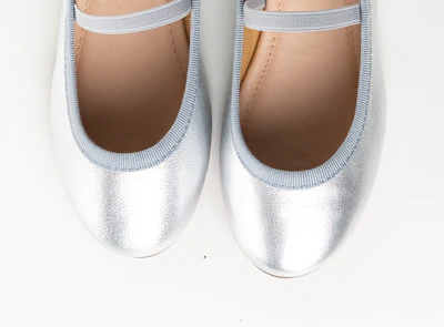Le ballerine bambina argento in pelle laminata hanno punta tonda con tacco basso 0,5 cm. Il dettaglio dell’elastico in tinta garantisce stabilità alla calzata, permettendo alle più piccole di correre e giocare liberamente. La fodera è in cotone con sottopiede in pelle. Classiche ed eleganti, le ballerine da bimba possono essere indossate sotto un vestito da festa o in maniera più casual sotto una gonnellina jeans e maglietta. Da portare comodamente a piede nudo nelle stagioni più calde, sono ideali anche in inverno con calze coprenti.