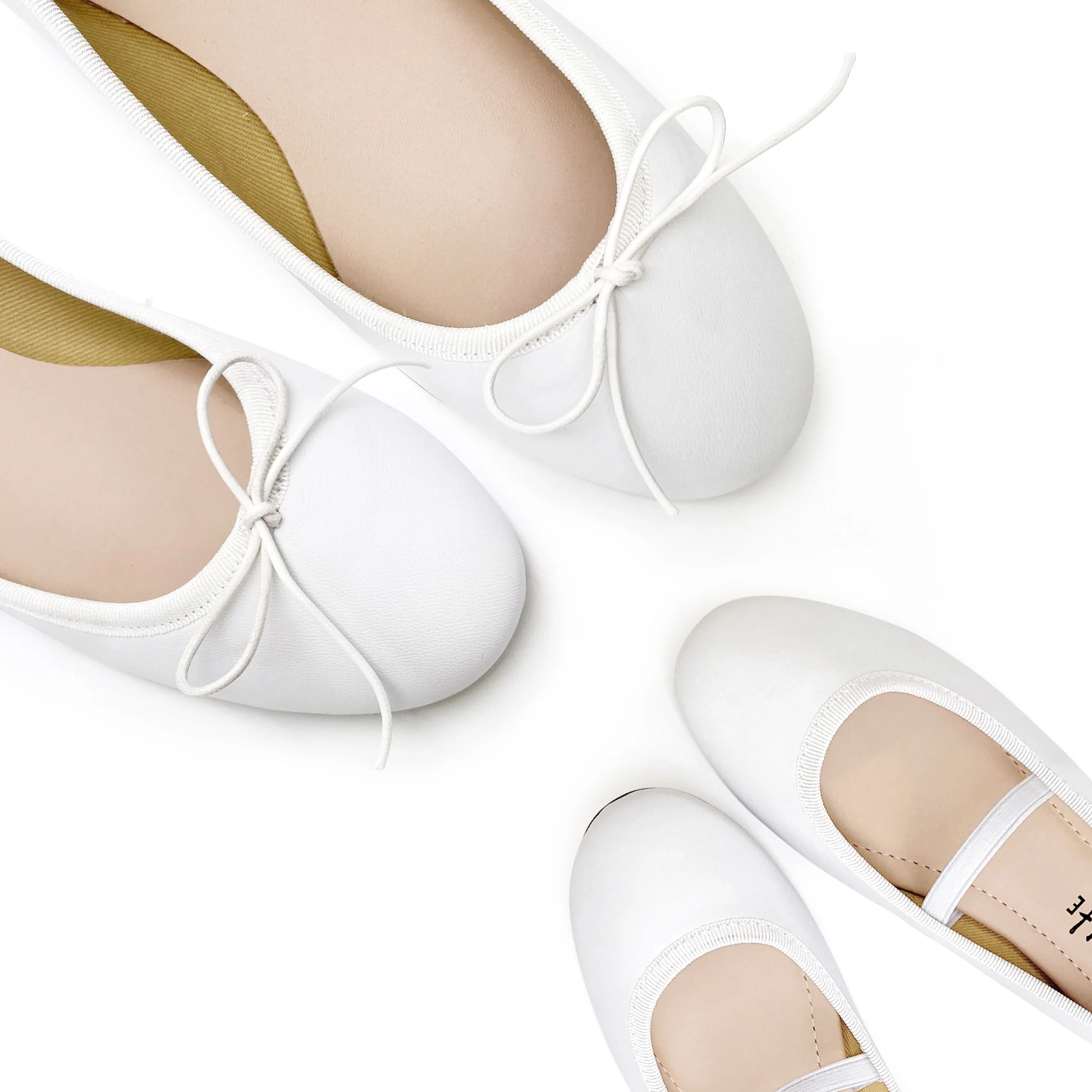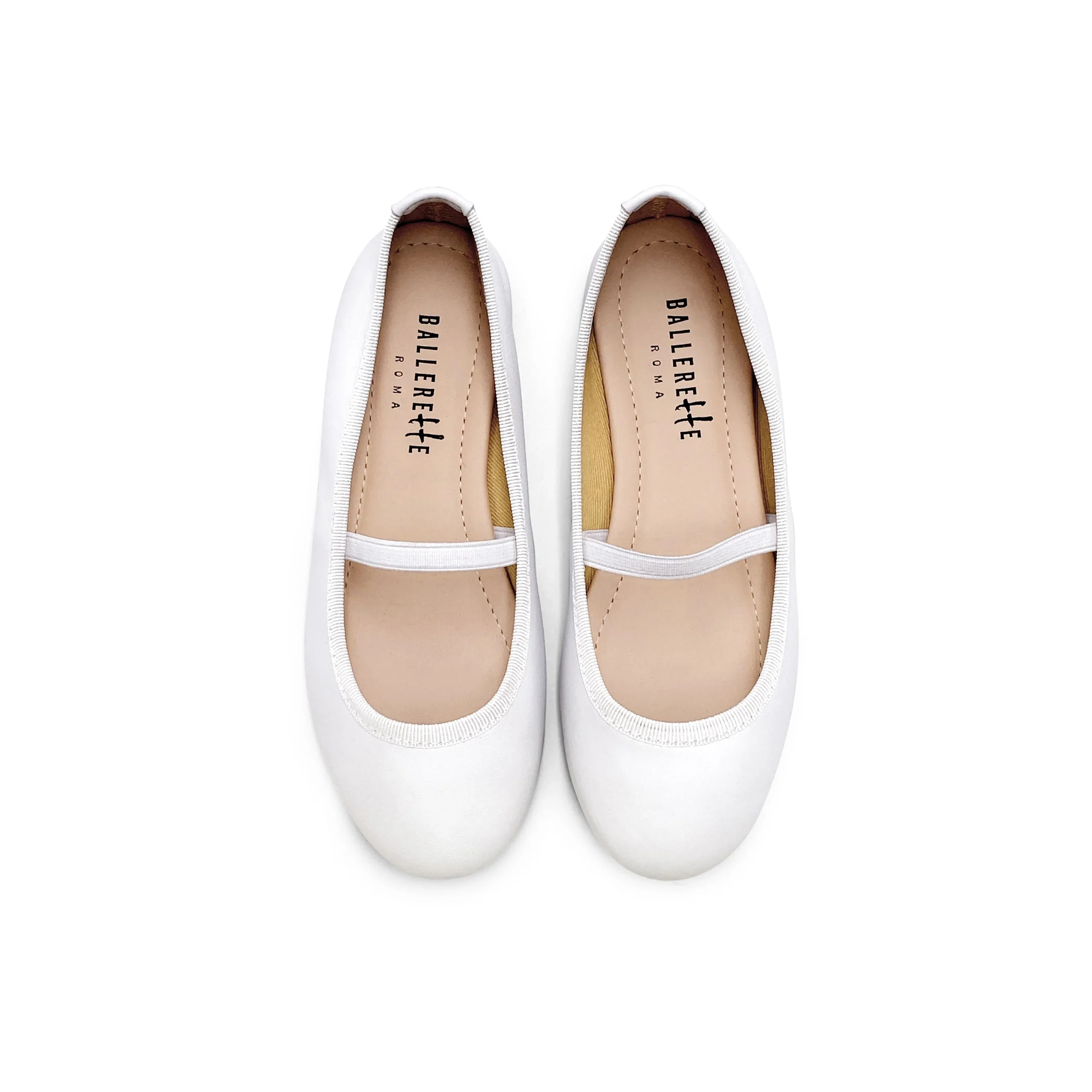 Le ballerine della linea Colonna Kids permettono alle bambine di muoversi in libertà, grazie all’elastico sul collo del piede, che ne garantisce l’aderenza. Caratterizzate da punta tonda e tacco basso di appena 0,5 cm, sono comode e pratiche, ma allo stesso raffinate in questa luminosa variante in pelle bianca, ideale per cerimonie e altri eventi formali. Foderate in cotone e con un morbido sottopiede in pelle, sono pensate per essere indossate in ogni stagione.