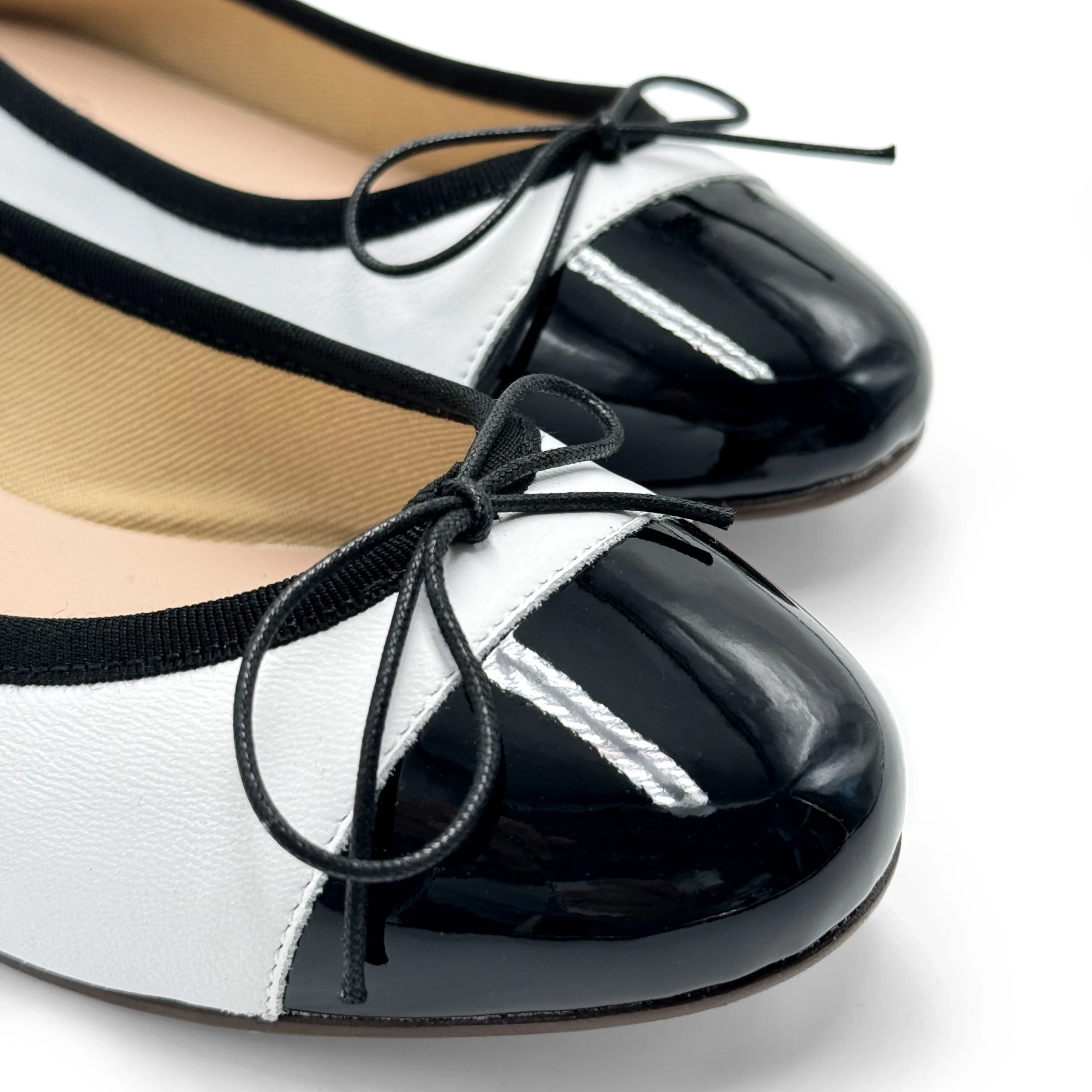 Soyez le premier à laisser votre avis sur “Ballerine bianche in pelle con punta in vernice nera”