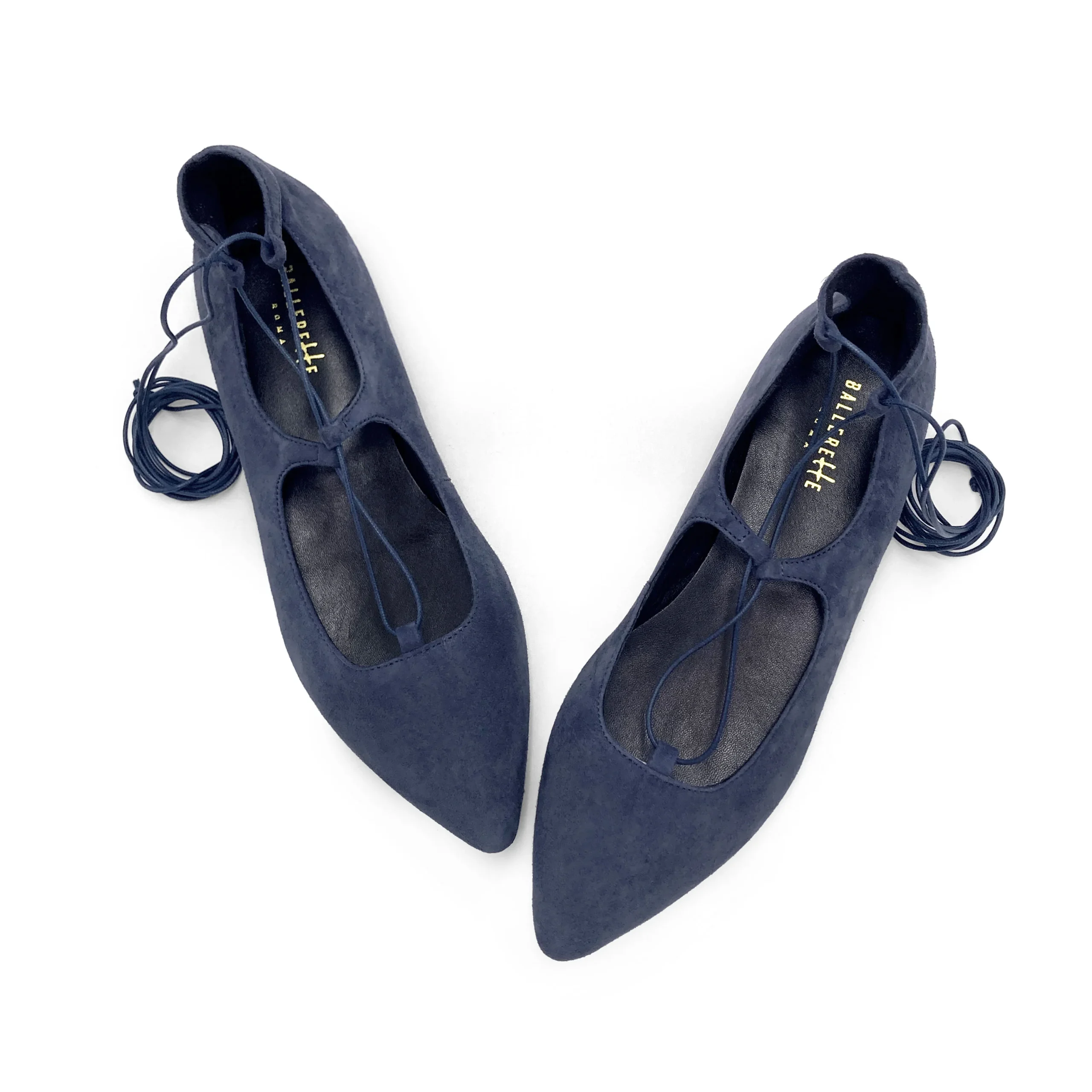 Un tocco di raffinatezza moderna per ogni momento della giornata: questa ballerina a punta in camoscio blu petrolio chiaro combina eleganza e versatilità con dettagli femminili unici. I lunghi lacci alla schiava, morbidi e regolabili, possono essere avvolti intorno alla caviglia o più in alto sul polpaccio, regalando un effetto sofisticato e personalizzato. La fodera e il sottopiede in pelle nera garantiscono una calzata confortevole, mentre la suola in gomma nera leggera assicura stabilità e comodità. Perfette per completare look diurni, come pantaloni cropped chiari e una blusa fluida, o per dare un tocco chic a un outfit serale composto da una gonna midi e un top minimalista, queste ballerine sono la scelta ideale per chi desidera uno stile d’impatto senza rinunciare alla praticità.