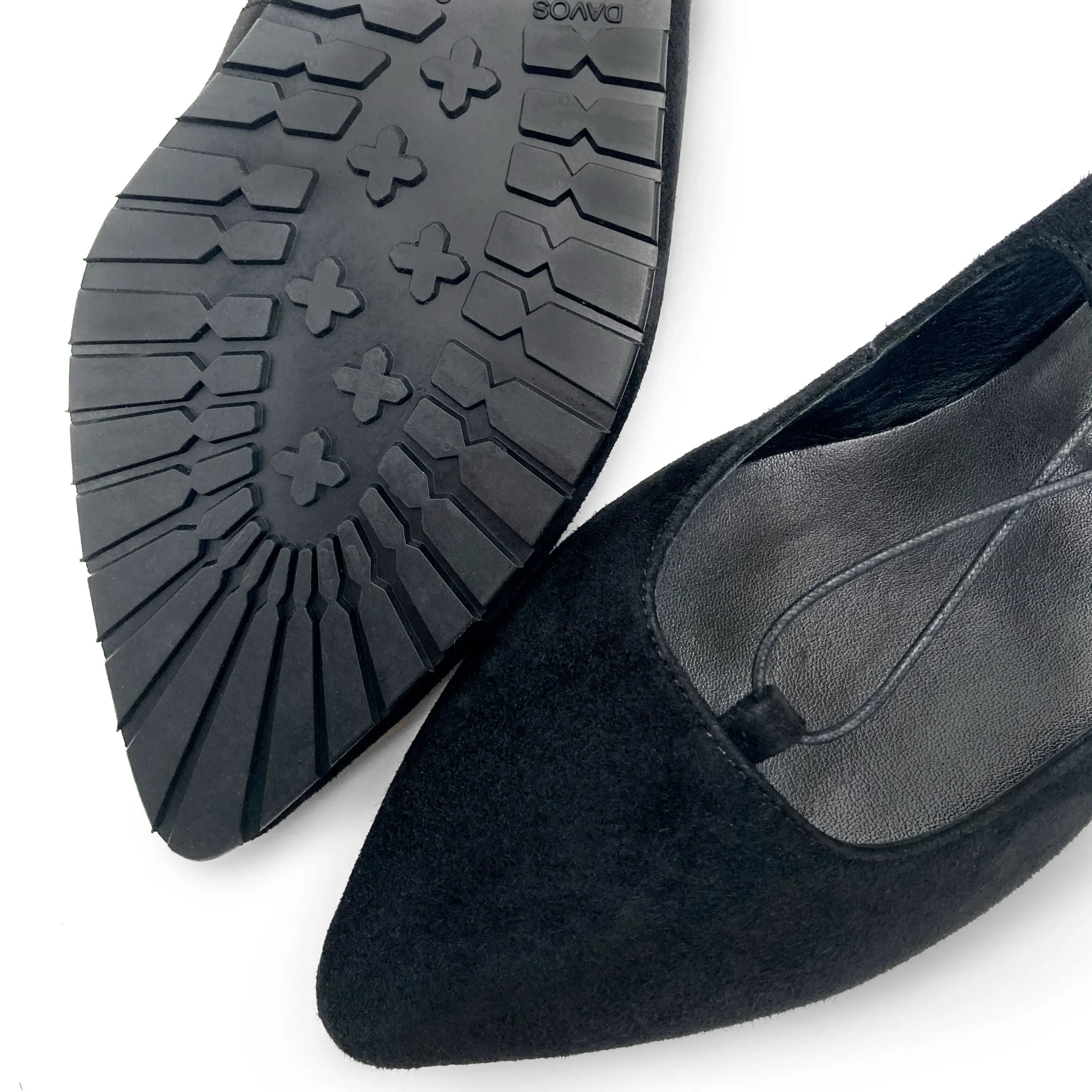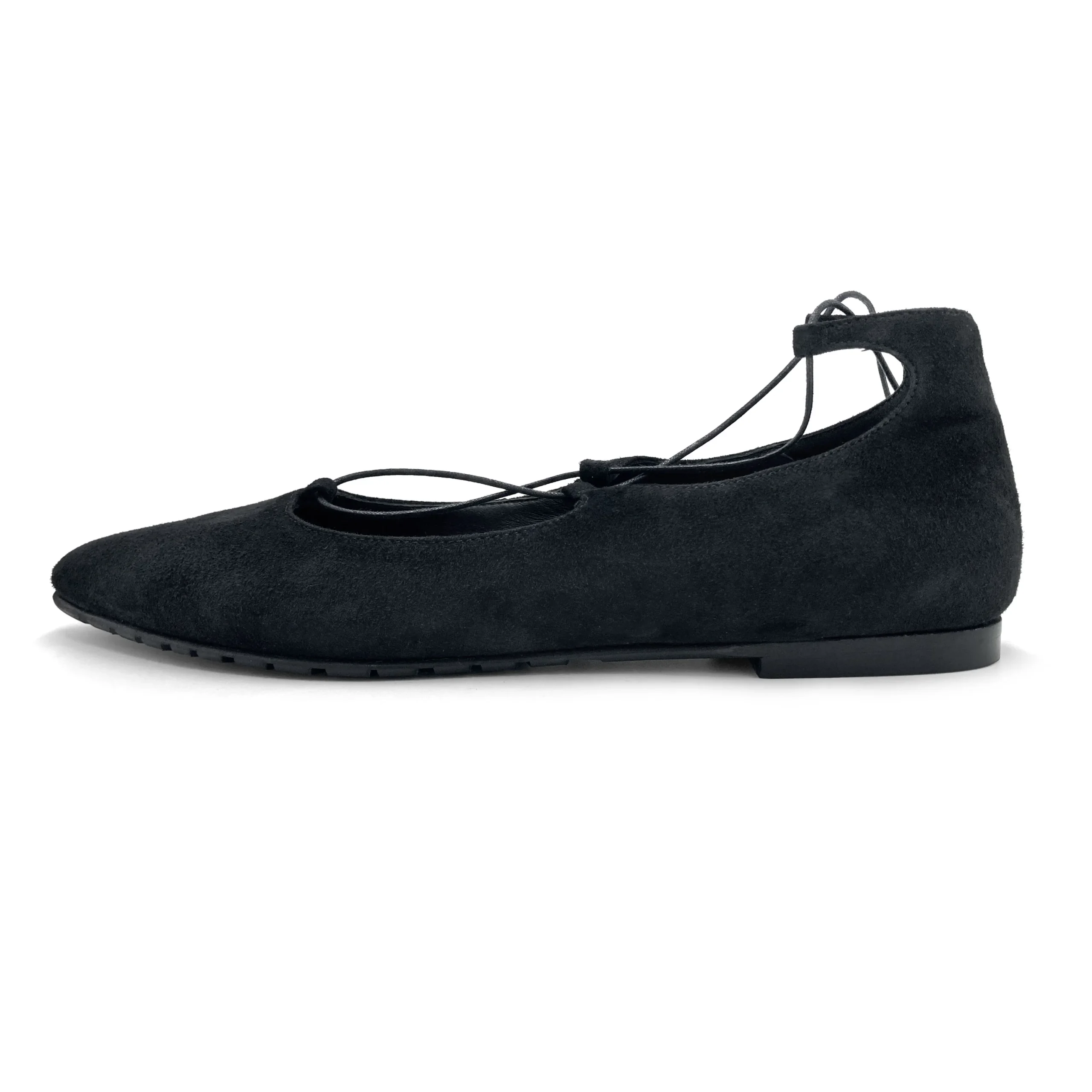 Per chi desidera un modello femminile e seducente, questa ballerina a punta in morbido camoscio nero modello Colosseo si presenta come un’interpretazione moderna e raffinata della calzatura classica. I lacci alla schiava, eleganti e versatili, possono essere annodati sia intorno alla caviglia sia sul polpaccio, regalando un’allure sofisticata e personalizzabile. La fodera e il sottopiede in pelle nera assicurano una calzata confortevole e avvolgente, mentre la suola in gomma nera garantisce flessibilità e sicurezza in ogni passo. Perfette per completare look femminili e decisi, queste ballerine con lacci si abbinano con facilità a pantaloni cropped in tessuto tecnico e un blazer sartoriale per un’eleganza contemporanea, oppure a una gonna midi plissettata e a un top minimalista per un outfit raffinato e seducente. Ideali anche con un vestito a tubino per la sera, sono la scelta perfetta per chi vuole unire comfort, stile e un tocco di personalità.