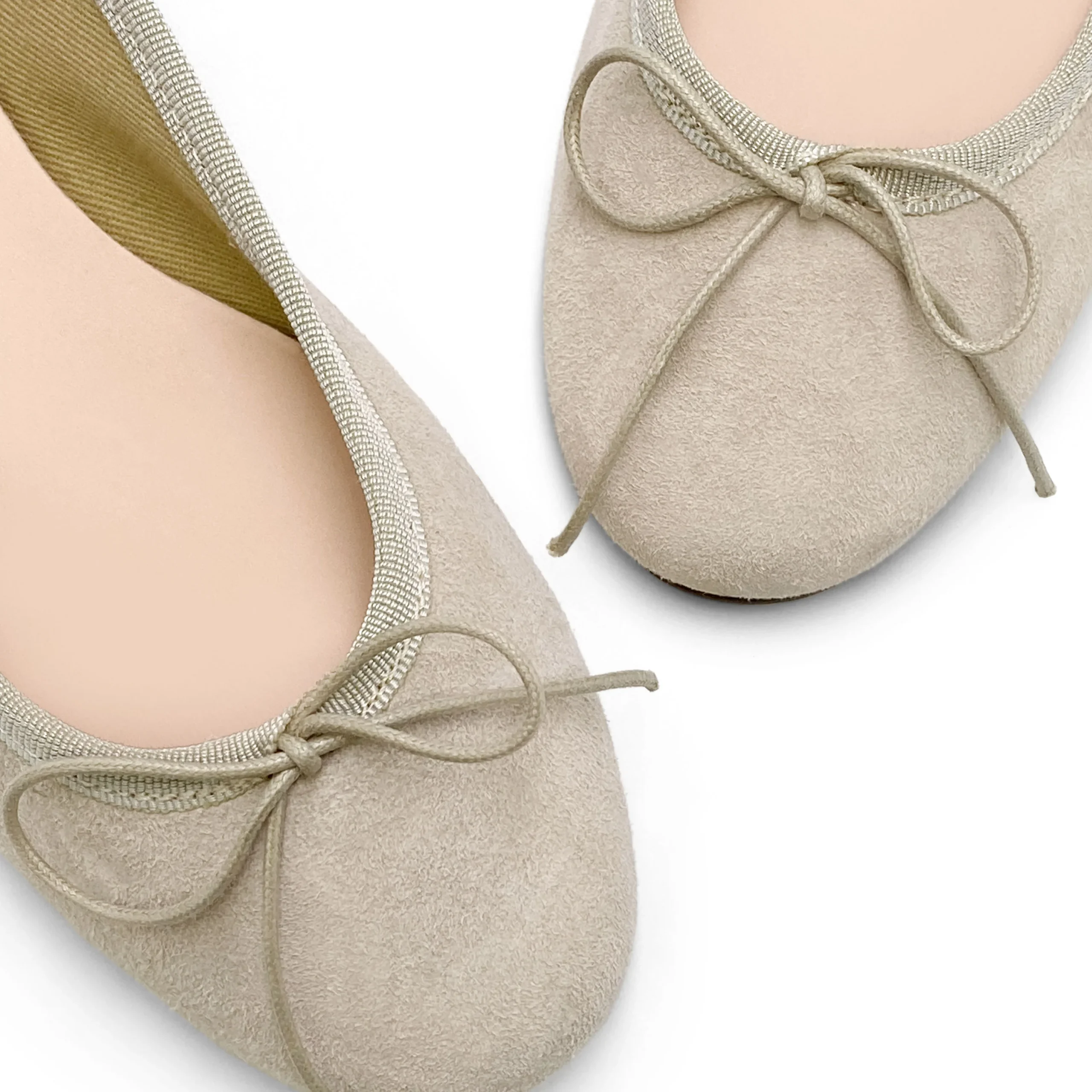 Il modello Colonna è caratterizzato da un’elegante punta tonda, un tacco di 0,5 cm e rifiniture della scollatura in gros grain ton sur ton. Il sottopiede in pelle e la fodera in cotone rendono queste ballerine comodamente indossabili anche nei mesi più caldi, con o senza calze, mentre il laccetto regolabile permette di adattarne la calzata a qualsiasi piede. Un paio di ballerine in camoscio beige è un accessorio senza tempo, indispensabile in qualsiasi guardaroba. Queste sofisticate ballerine sono perfette in abbinamento con qualsiasi colore, dalle tonalità del blu e del marrone, ideali per looks da ufficio alla moda, a toni delicati, come il verde menta, il rosa cipria ed il giallo pastello.