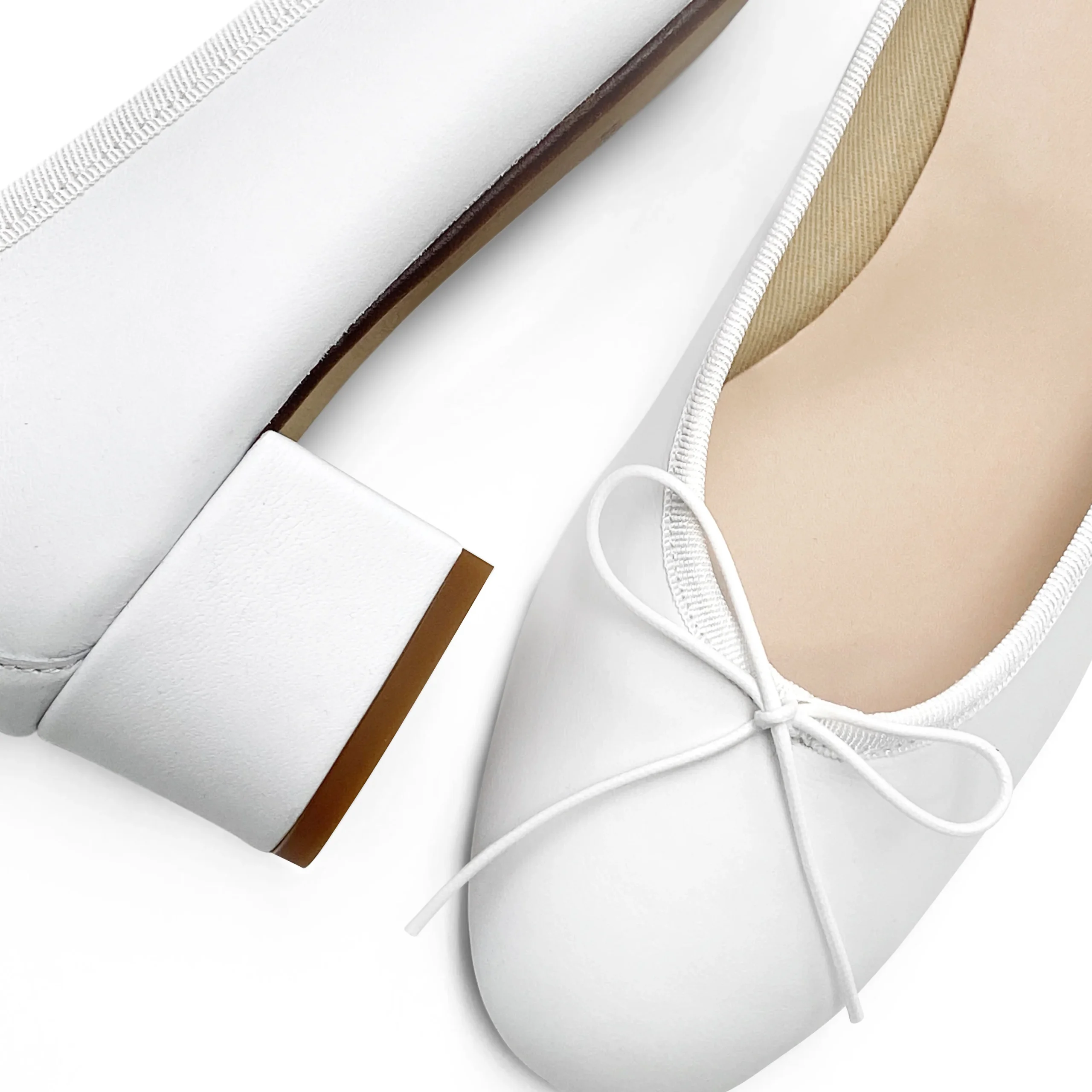 Le Aventino, ballerine classiche con tacco alto, sono le scarpe da donna perfette per chi cerca un’alternativa più alta rispetto alle classiche ballerine ultra piatte. Grazie alla fodera interna in cotone, che le rende adatte a ogni stagione, al sottopiede in pelle e al tacco di 4 cm, garantiscono comfort durante tutta la giornata. In questa versione in pelle bianca sono valide alleate in tante situazioni: possono essere indossate come scarpe da sposa, per ballare fino a sera, ma possono essere anche abbinate a pantaloni in lino blu con cintura a cordone cuoio e polo rosa cipria, ad esempio, per un look fresco e attuale.