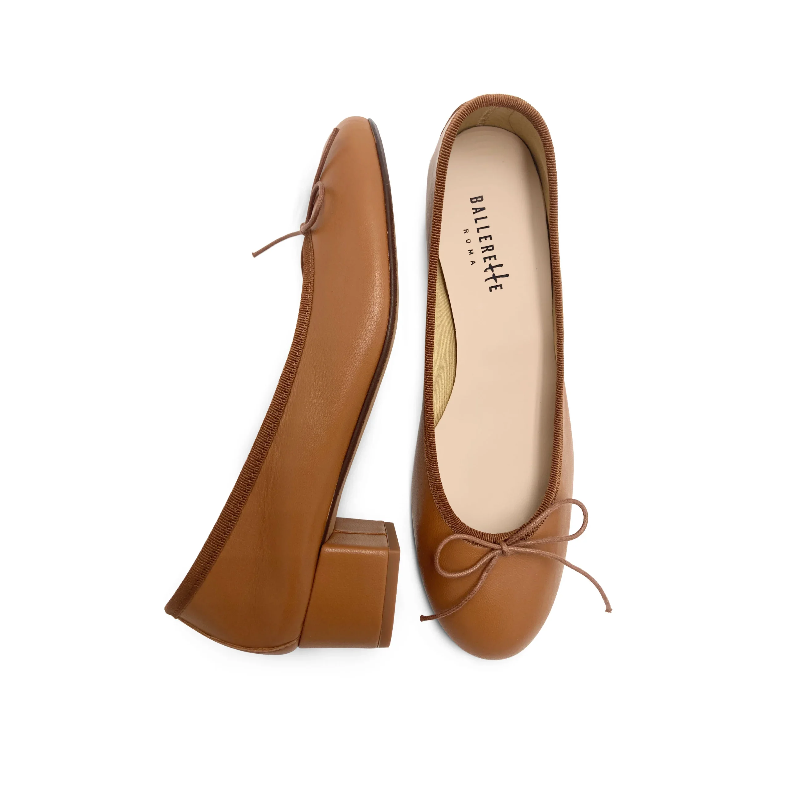 Le Aventino sono ballerine classiche da donna a punta tonda con un tacco alto di 4 cm. Pratiche ed eleganti queste scarpe da donna in pelle presentano una fodera interna in cotone che le rende comode anche a piedi nudi e un morbido sottopiede in pelle. Le ballerine in pelle cuoio con tacco hanno una tonalità classica e neutra risultando casual, ma eleganti allo stesso tempo. Sono scarpe adatte a ogni occasione, perfette in ufficio se indossate con il bianco, che lo illumina e lo valorizza, o anche con un grigio antracite per un effetto più ricercato. Abbinate con un paio di jeans chiari, una camicia rosa e un blazer blu sono scarpe perfette per il tempo libero.