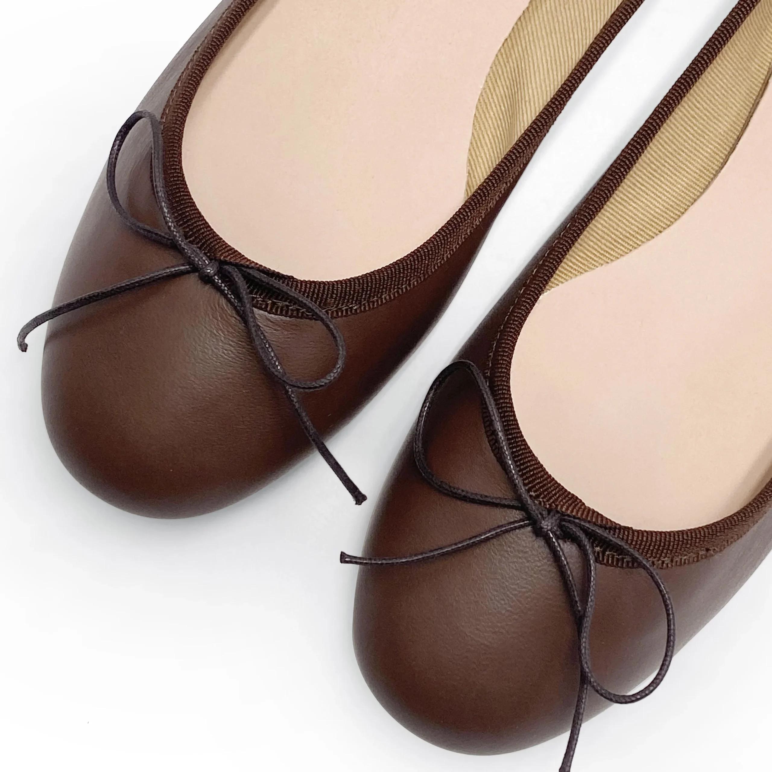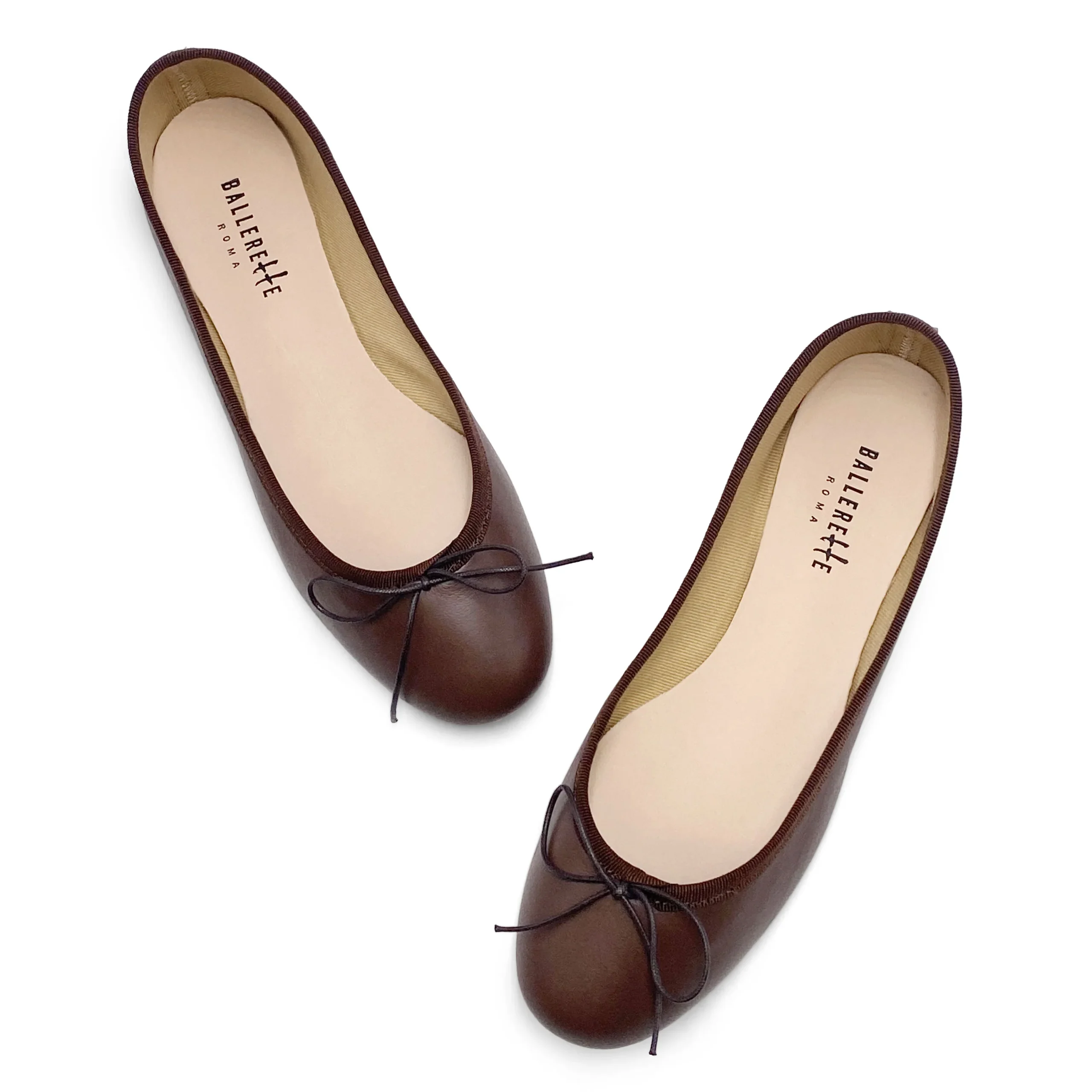 Le ballerine classiche in pelle del modello Colonna esistono in moltissime colorazioni per adattarsi a ogni stile o umore del momento e poter giocare e divertirsi con il proprio look. Questa versione è in marrone testa di moro, una tonalità semplice ed elegante da indossare nelle diverse occasioni o periodi dell’anno. La punta è tonda e il tacco basso è di 0,5 cm rendendo la forma armoniosa e femminile. Il classico fiocchetto in cotone cerato passa sotto i profili in gros grain per stringere leggermente lo scollo quando si necessità di maggiore accompagnamento sui piedi più sottili. Comode e versatili hanno la fodera in cotone e il sottopiede in pelle che le rende adatte a tutte le stagioni. Le ballerine marroni testa di moro sono molto adatte a outfit da giorno, sia per l’ufficio che per il tempo libero, e sono ormai diventate un classico del guardaroba femminile. Facili da abbinare sotto gonne o pantaloni, con calze o senza, rendono ogni look assolutamente perfetto e chic. Da provare in abbinamento a colori intensi come il rosso o l’ocra o sotto tonalità tenui e romantiche per creare stili ogni giorno diversi.