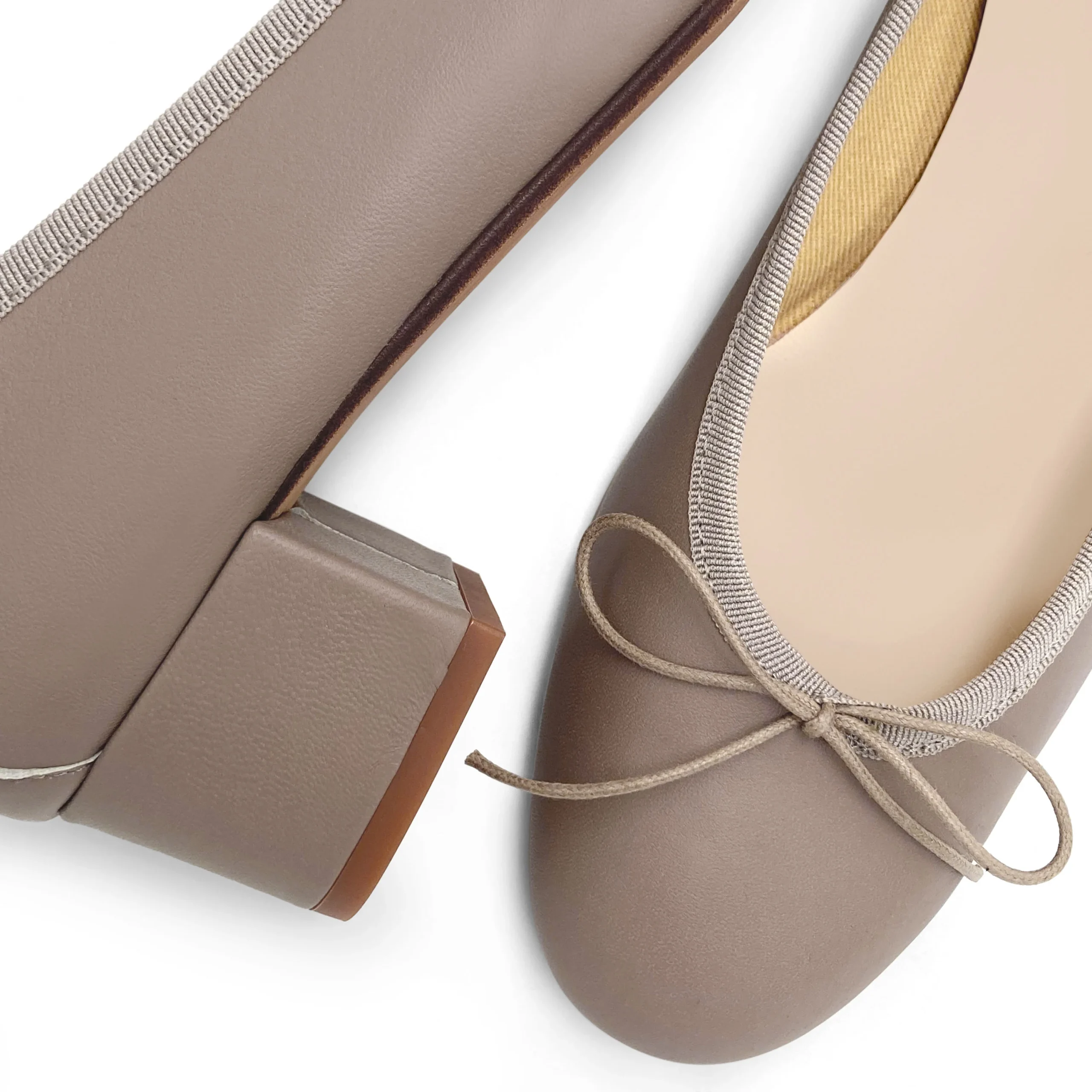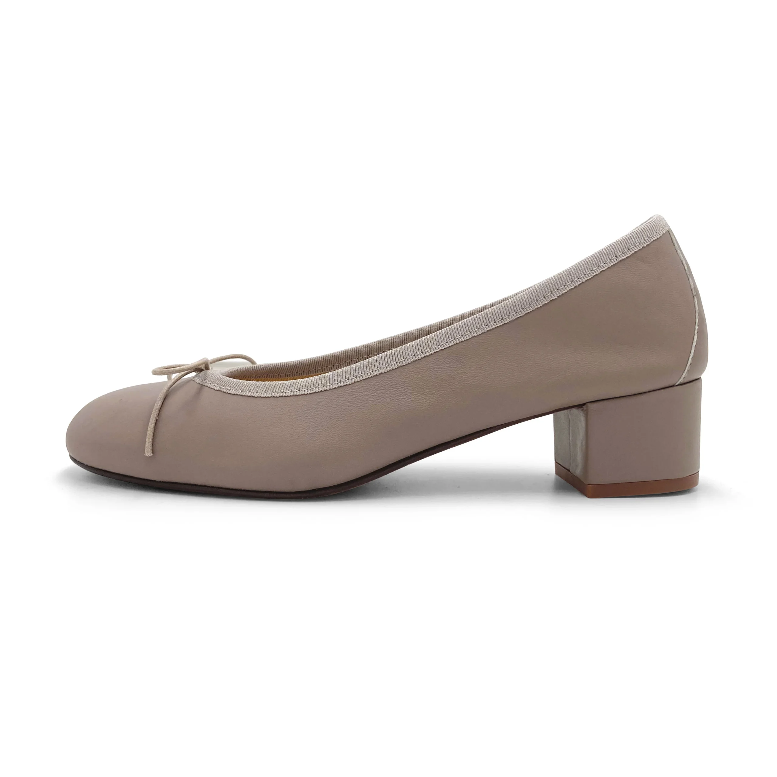 Le Aventino sono ballerine classiche con punta tonda e aggraziata con un tacco alto di 4 cm, che donano un appoggio confortevole al piede. Con profili in gros grain tono su tono, e grazie alla fodera interna in cotone e al sottopiede in pelle queste scarpe alte da donna sono indossabili sia in estate a piede nudo che in inverno con calza. Le ballerine tortora con tacco alto sono un modello raffinato in virtù della loro nuance naturale e discreta. Lo sposalizio perfetto per queste deliziose e versatili ballerine si ha con i classici blu, bianco e nero ma anche con il viola, il verde petrolio e colori brillanti come il rosso, l’arancio e il giallo. Una scarpa che riuscirà a valorizzare qualsiasi tipo di abbigliamento dal tailleur al semplice jeans aggiungendo sempre quel tocco di stile in più.