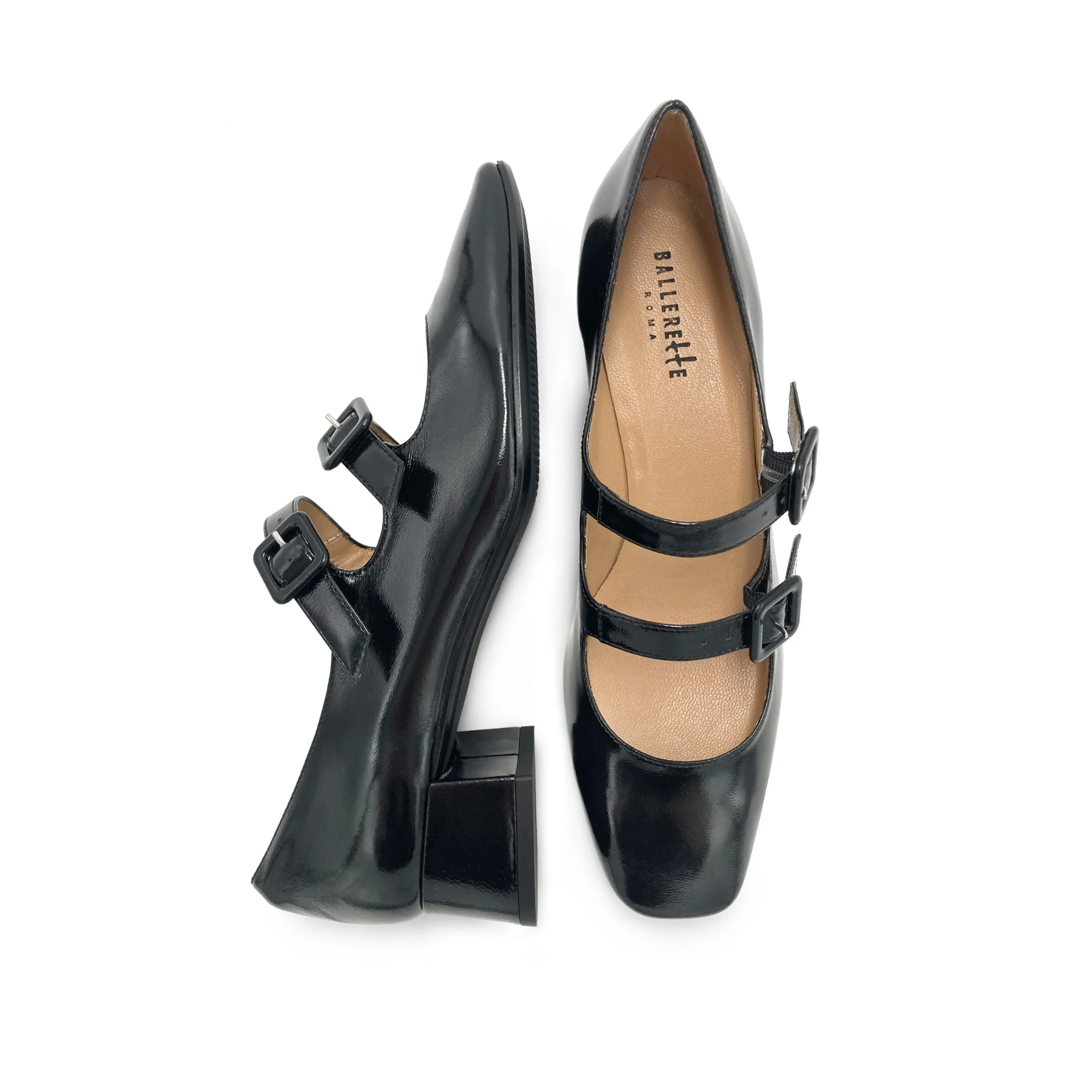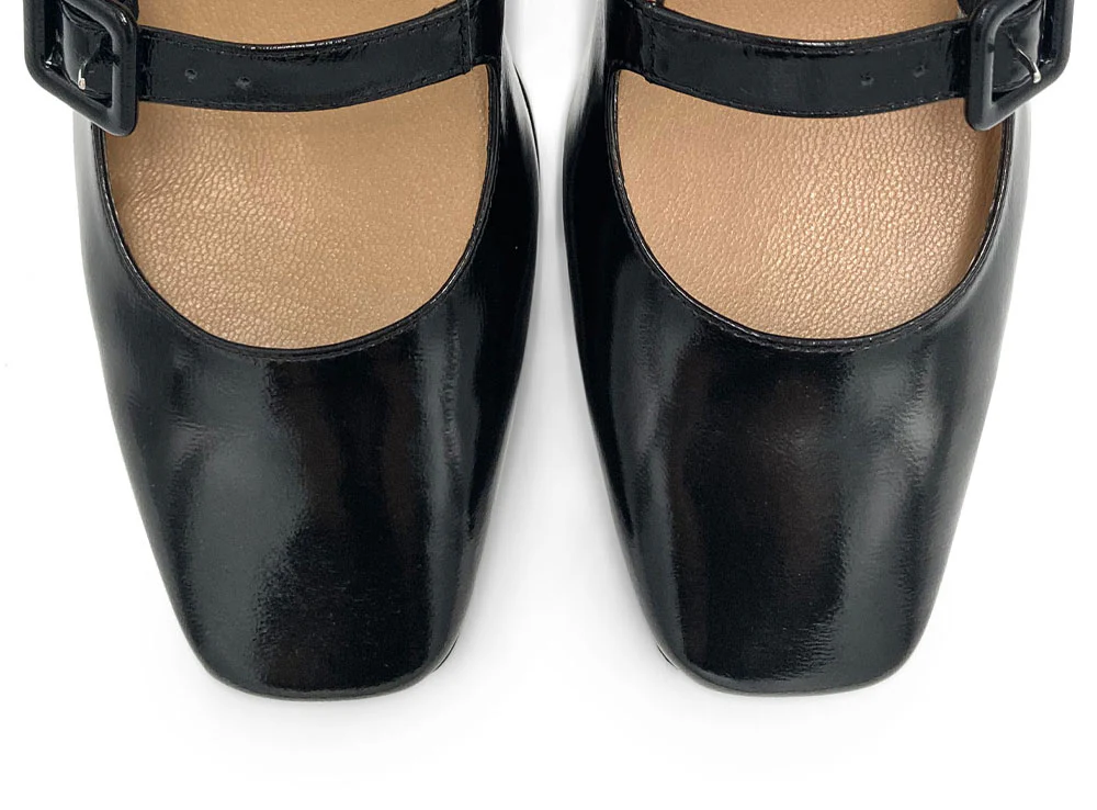 Le scarpe ballerine Mary Jane Barberini incarnano un’eleganza dal fascino retrò, con un design curato nei dettagli che esalta la femminilità senza rinunciare al comfort. Realizzate in pelle verniciata lucida nera, presentano una punta quadrata molto attuale, uno scollo basso e un doppio cinturino regolabile con fibbie quadrate rivestite in pelle, che donano carattere e un tocco vintage al modello. Il tacco largo di 3 cm assicura stabilità e comodità per tutto il giorno, mentre la fodera e il sottopiede in pelle avvolgono il piede con morbidezza. La suola in gomma nera completa una calzatura versatile e pratica, perfetta anche per la stagione invernale. Le Mary Jane Barberini sono ideali da abbinare a look bon ton e ricercati: si sposano perfettamente con gonne a trapezio abbinate a calzini o calzette a coste per un tocco giocoso e femminile, ma sono altrettanto chic con pantaloni a sigaretta e un dolcevita aderente per un outfit da ufficio elegante e moderno. Per un look più sofisticato, possono essere indossate con un abito midi e un cappotto classico, completando così un ensemble raffinato e senza tempo. Queste ballerine Mary Jane sono la scelta ideale per chi ama uno stile vintage rivisitato con un tocco contemporaneo e una grande attenzione al comfort.