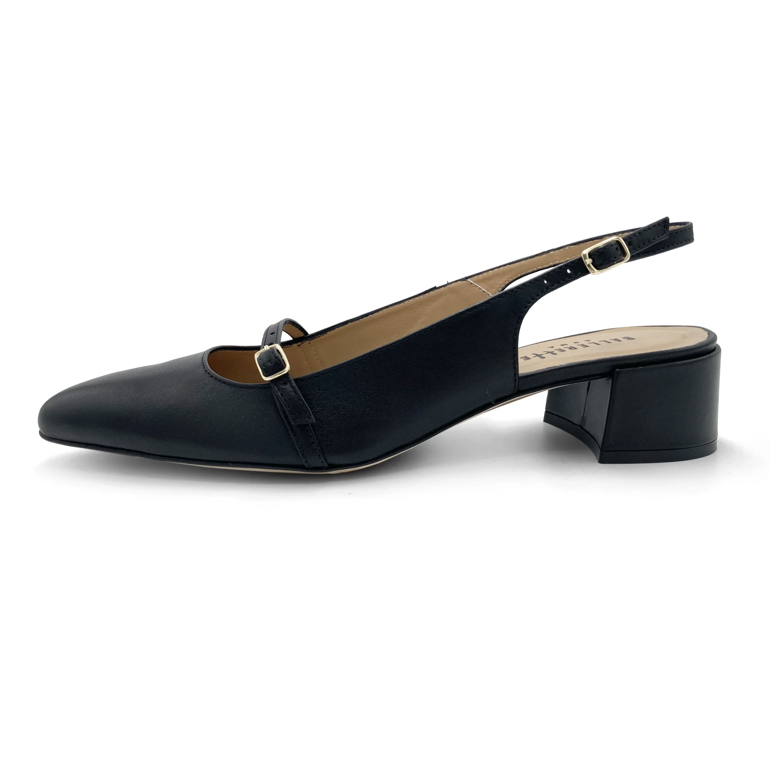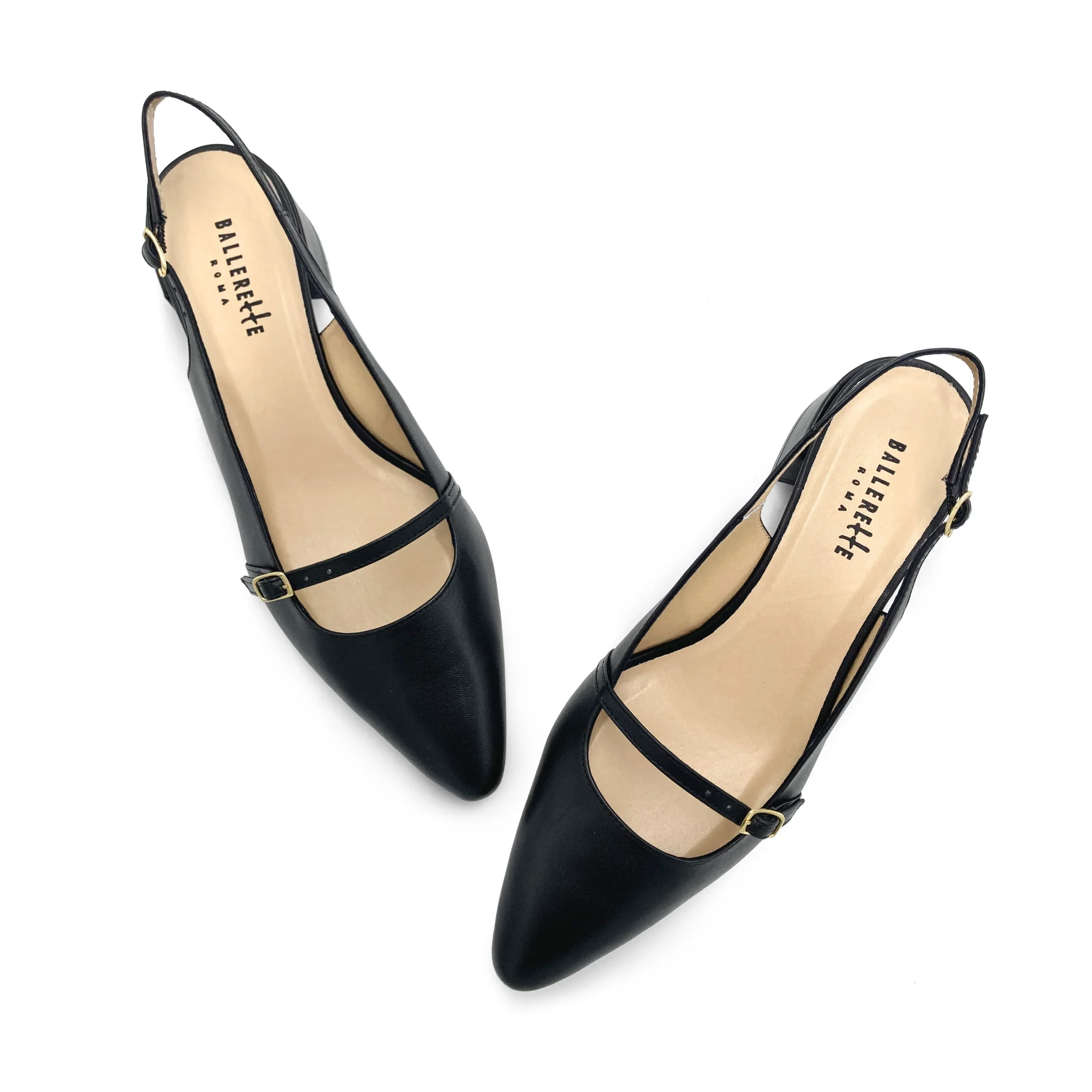 Le Coppedè sono slingback con un laccetto sul piede tipico delle Mary Jane e cinturino sul tallone. Dalla linea affusolata, con comoda punta e tacco alto di 4 cm, queste scarpe estive aperte nella versione in pelle nera saranno il modello perfetto da indossare in ogni occasione, da mattina a sera. La fodera è in pelle e la suola in cuoio. Entrambi i cinturini sono regolabili per adattare la scarpa a tutte le calzate. La classicità ed eleganza del modello ne fanno una scarpa estiva aperta di grande versatilità. Puoi scegliere se portarle sotto i tuoi denim neri preferiti e top morbido in seta, con i tuoi abiti da ufficio o giocare con tessuti e colori scegliendo un vestito rosso fuoco o blu elettrico.