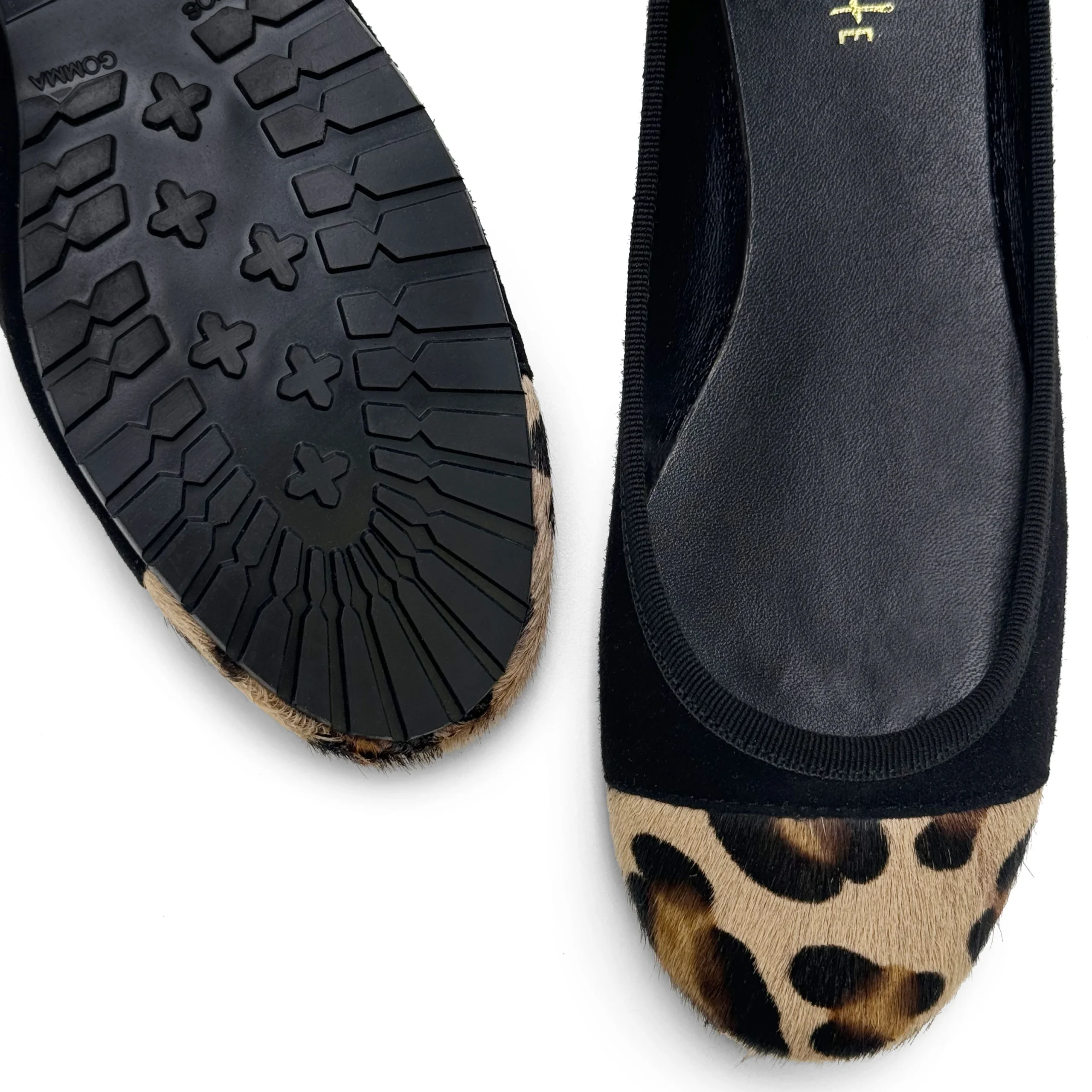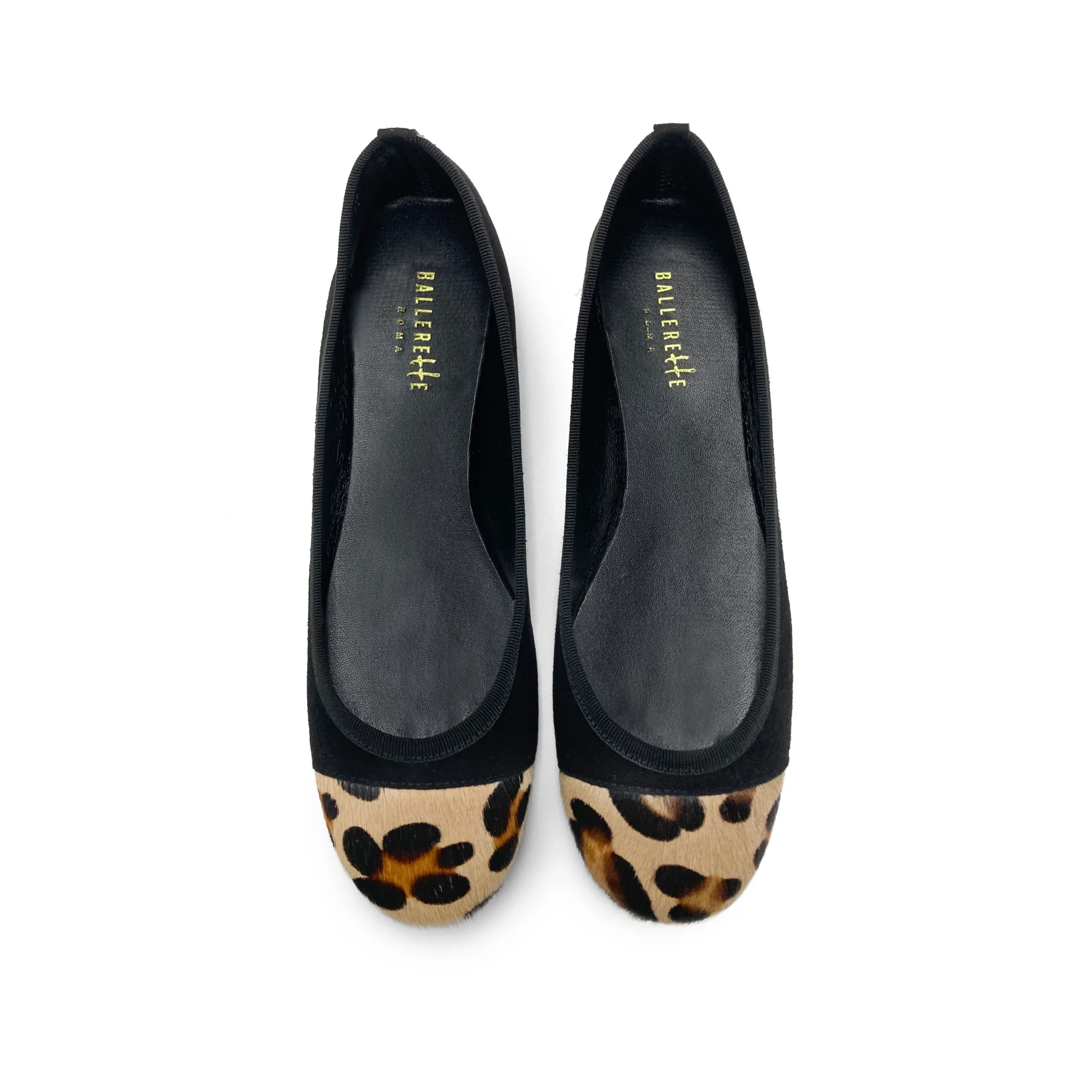 Le ballerine Colonna sono realizzate in morbido camoscio nero, bordo gros grain in tinta e punta a contrasto in cavallino maculato a stampa leopardo nelle tonalità neutre del beige, marrone e nero. Per adattarsi meglio alla stagione invernale, la fodera è stata realizzata in pelle nera come il sottopiede, mentre la suola è in carrarmatino di colore nero. Comode da indossare e versatili per gli infiniti abbinamenti possibili, queste ballerine nere in camoscio saranno il modello di cui non potrai fare a meno durante tutto l’arco della giornata.