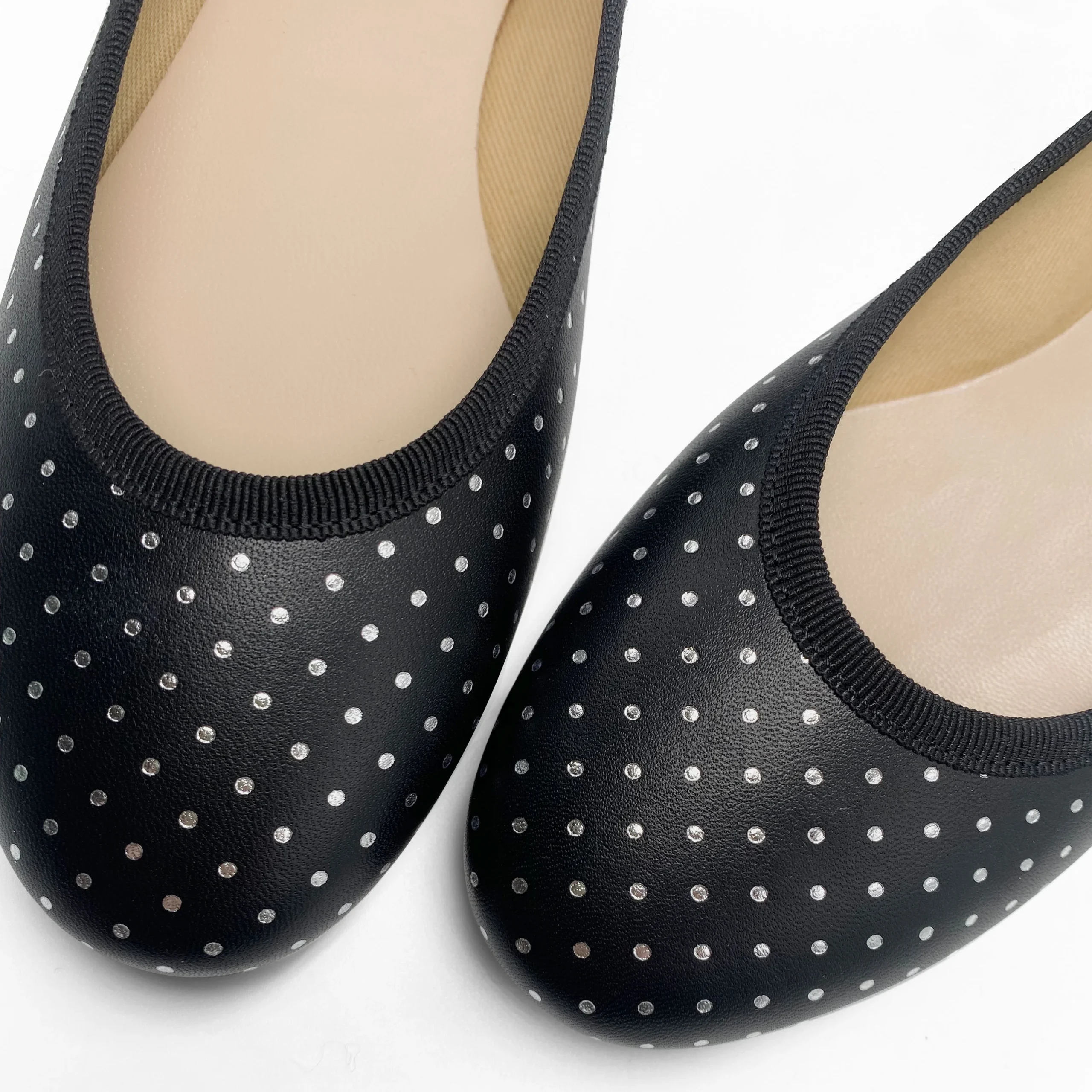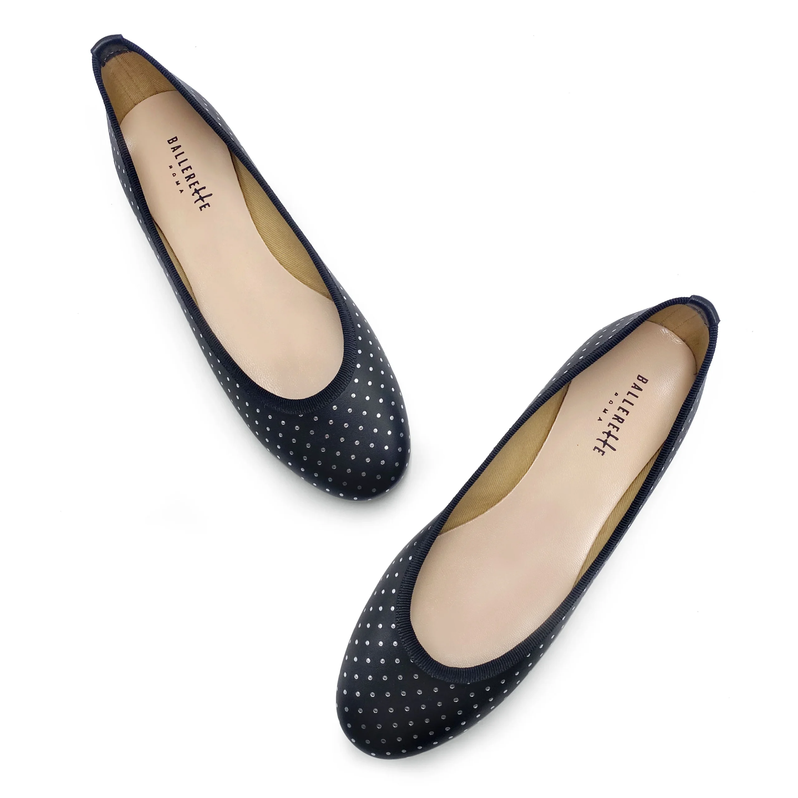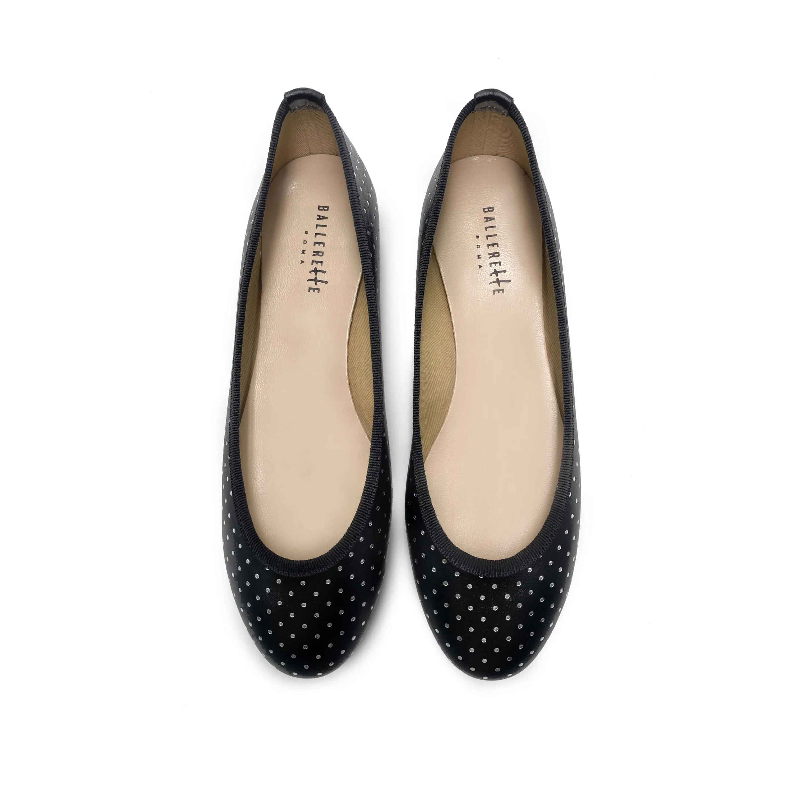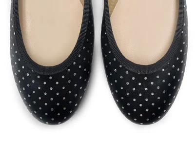 Il modello Colonna sono ballerine dalla punta tonda, con scollo regolare bordato in gros grain e tacco basso di 0,5 cm. Questa particolare versione è realizzata in pelle nera con stampati dei micro pois argento, un dettaglio luminoso e unico. La scarpa ha fodera in cotone beige e sottopiede in pelle per essere indossata comodamente in tutte le stagioni. Puoi indossare le tue BallereTTe Colonna nere e argento sia di giorno che di sera. Immaginale con una micro gonna laminata e top bianco, per una serata danzante, o con un abito in cotone rosso, per passeggiare in città.