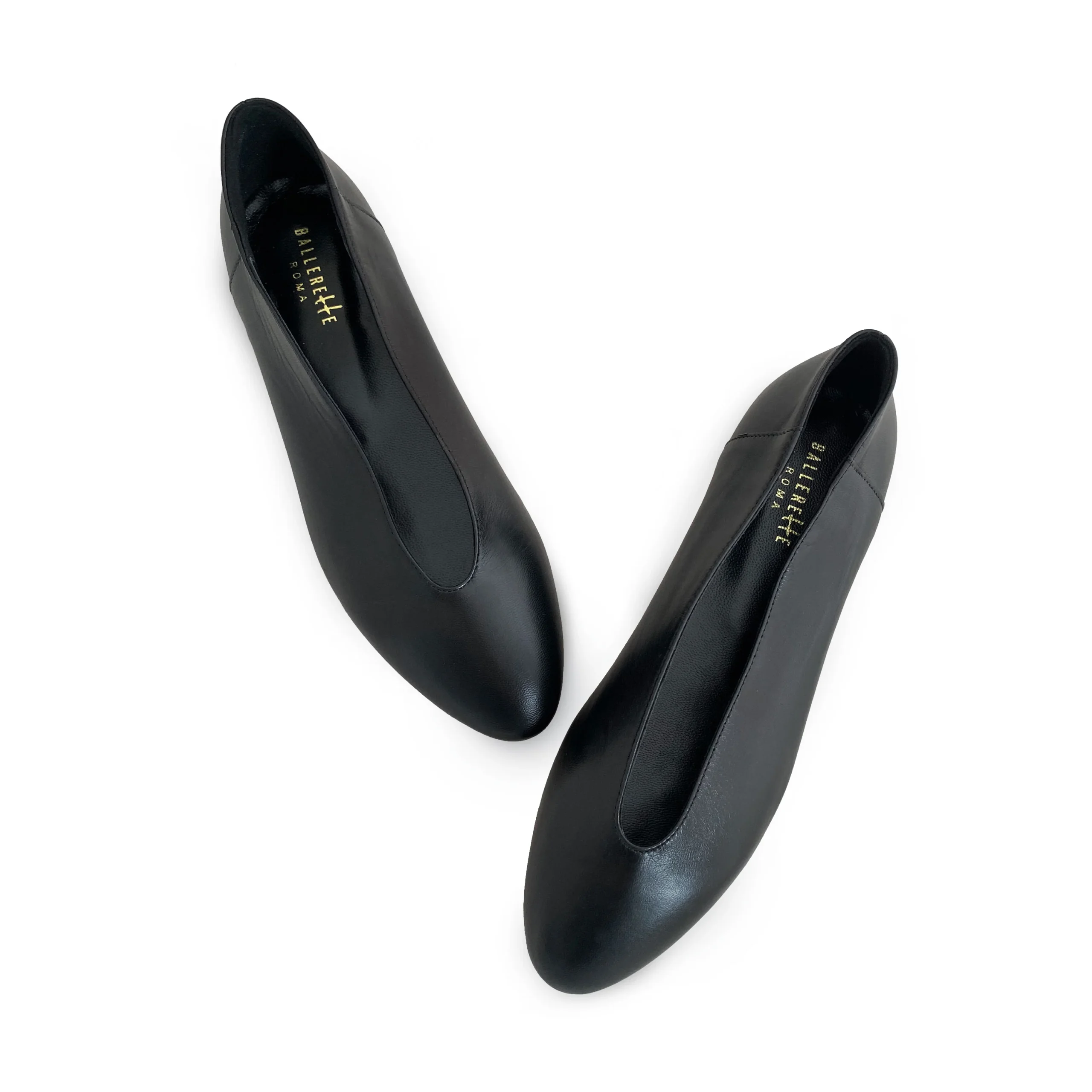Le ballerine Torlonia sono caratterizzate da una linea essenziale sottolineata dalla scollatura alta della scarpa, che conferisce un tocco minimal e moderno. Realizzate in morbida pelle nera, si adattano a tutte le tipologie di piede seguendone comodamente il movimento. La suola ha un tacco basso di 0,5 cm, la fodera e il sottopiede sono entrambi in morbida pelle per assicurare agio nella calzata. Le ballerine nere saranno un pezzo chiave del tuo guardaroba. Estremamente versatili, ti accompagneranno con stile durante tutta la tua giornata, tanto in ambienti formali che per un’uscita con le amiche.