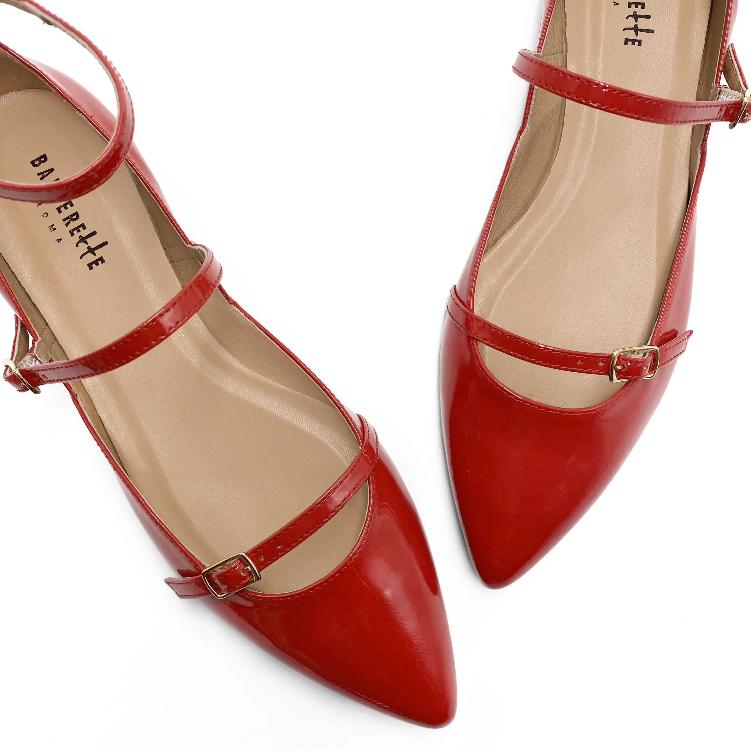 Uno dei modelli più femminili e sensuali della collezione BallereTTe sono le ballerine con tre cinturini modello Leonine. La linea, moderna e minimal, ha punta affusolata, un particolare scollo laterale e tacco basso. La fodera interna e il sottopiede sono in pelle, la suola è in cuoio. Queste ballerine Mary Jane con laccetti sono realizzate in pelle con vernice lucida rosso fuoco, una colorazione classica per le ballerine e sempre di grande impatto. Chi ama il rosso sa che è uno dei colori più facili d’abbinare perchè si sposa bene con i neutri e i pastelli come il cipria e il perla, da’ forza agli scuri come il nero e il bordeaux e risalta sotto le tinte più accese come il turchese e il viola.