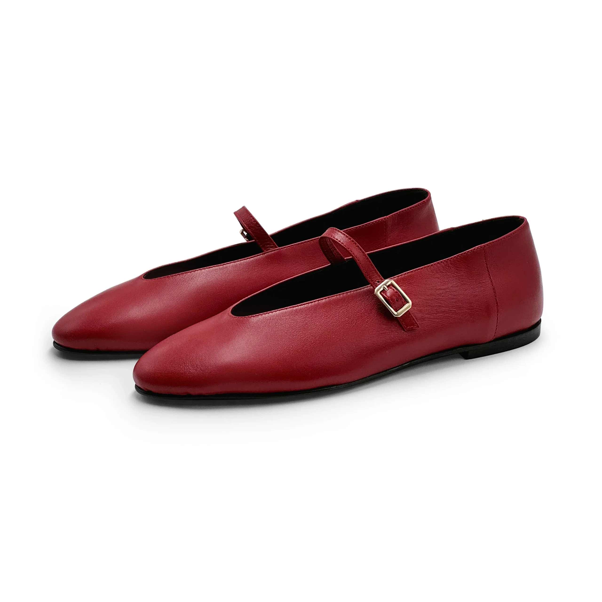 Lo stile inconfondibile del nostro modello Torlonia si arricchisce di un cinturino che abbraccia il piede e si chiude lateralmente sulla tomaia. Morbide e avvolgenti, sono caratterizzate da un particolare scollo a V che accompagna bene il piede, e da una linea a punta tonda minimal ed elegante. Queste ballerine accollate sono realizzate in pelle rosso scuro e foderate in pelle. La suola è in gomma light di colore nero per essere indossate con comodità in ogni occasione.