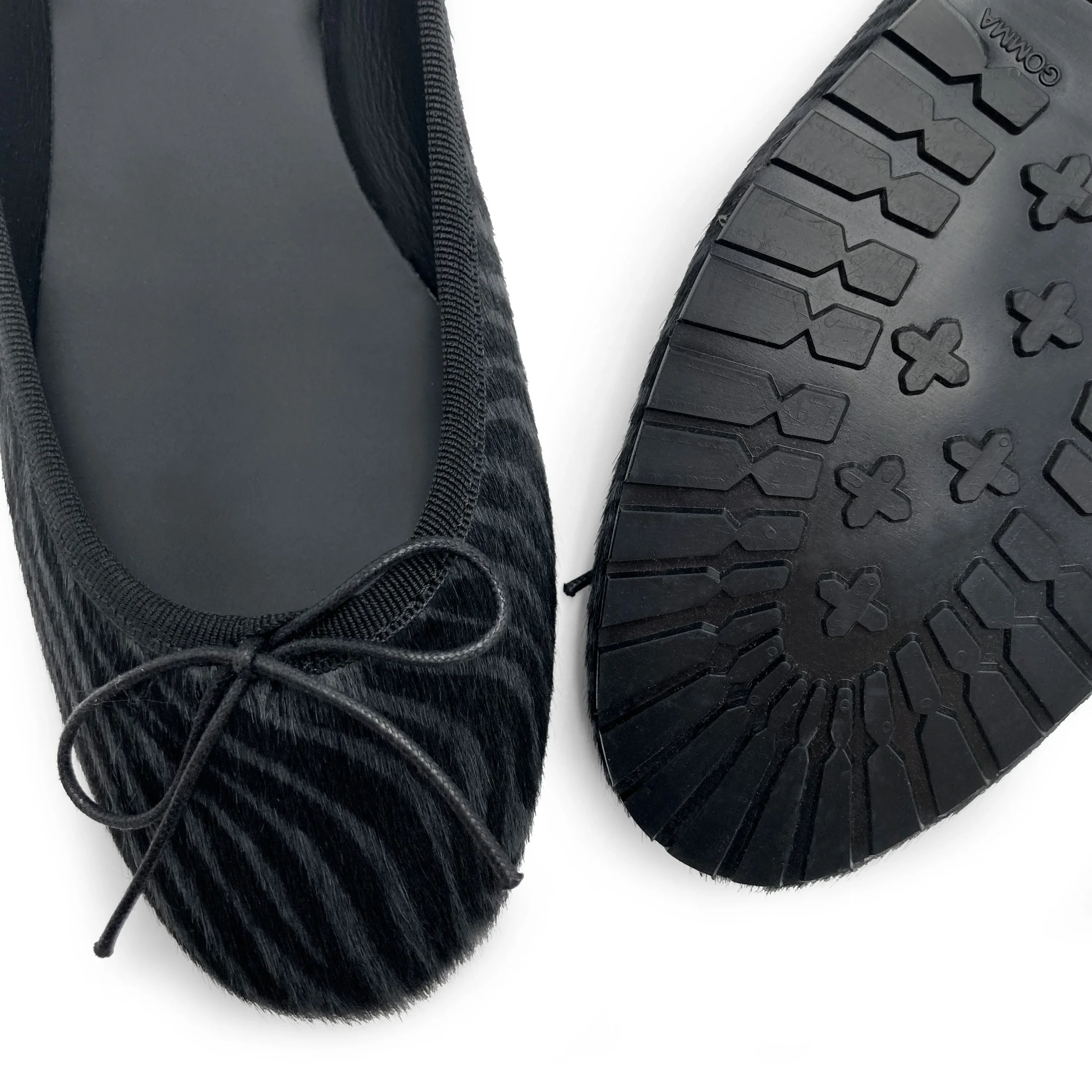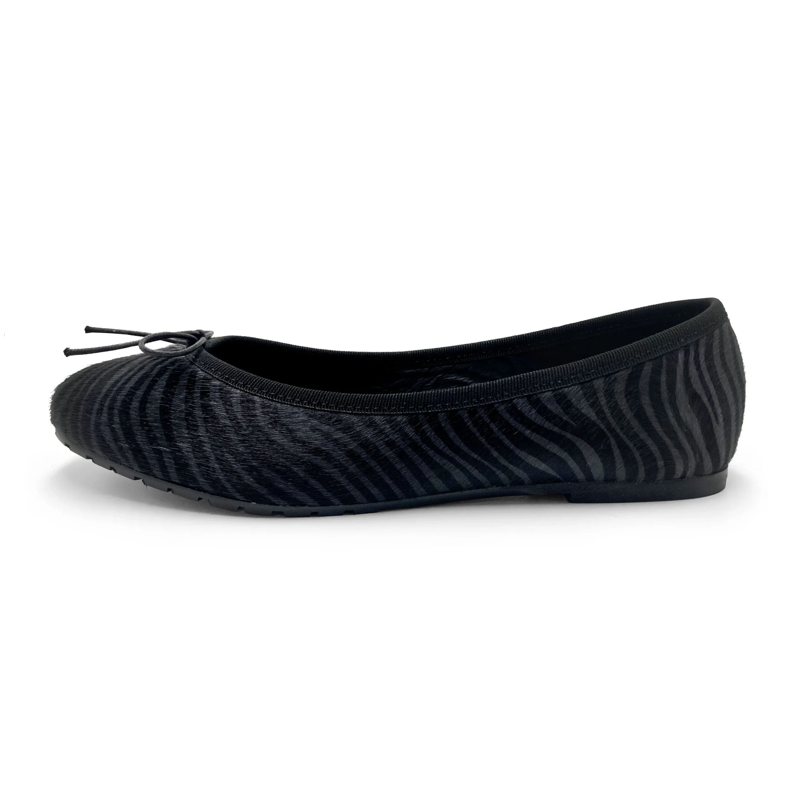 La delicata punta tonda e le linee classiche caratterizzano le ballerine Colonna, la cui eleganza è perfettamente combinata a praticità e comodità. Realizzate artigianalment in Italia, questa versione di ballerine invernali ha sottopiede e fodera in pelle nera e l’aggiunta di una suola in carrarmatino nero. Le ballerine animalier zebrate in cavallino sui toni del grigio e del nero aggiungeranno un tocco moderno e sofisticato a tutti gli outfit: abbinale ad un paio di mom jeans e una giacca di pelle nera, saranno il perfetto accessorio per completare un look rock-chic, indossale con tonalità pastello, saranno l’ideale per creare bellissimi contrasti alla moda.