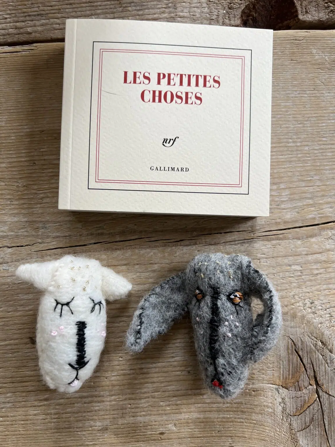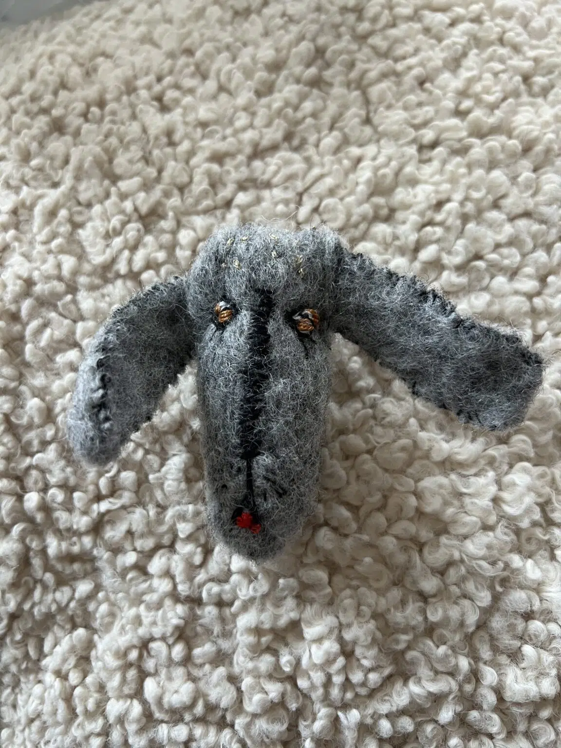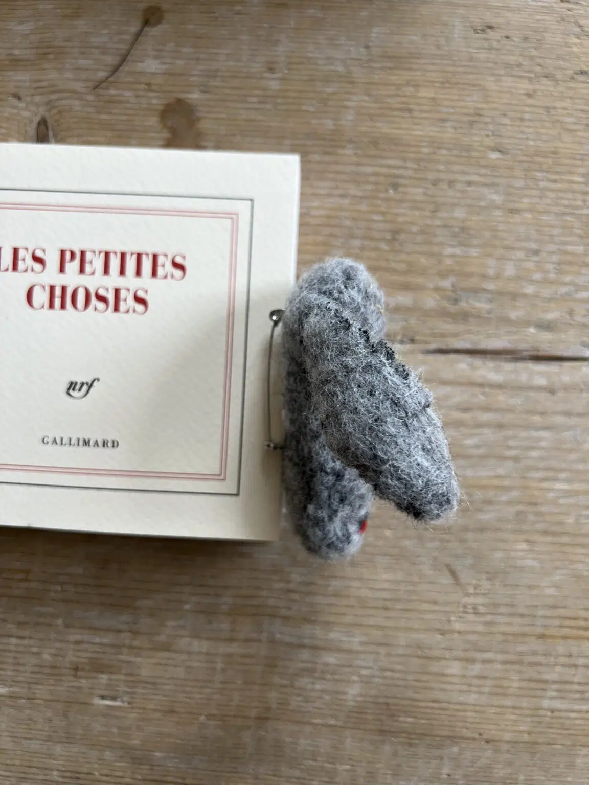 Broche loup en laine bouillie brodée main. Une pièce unique et poétique.