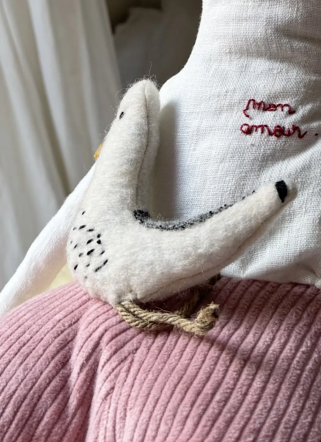 Broche mouette en laine bouillie. Une pièce unique et poétique.