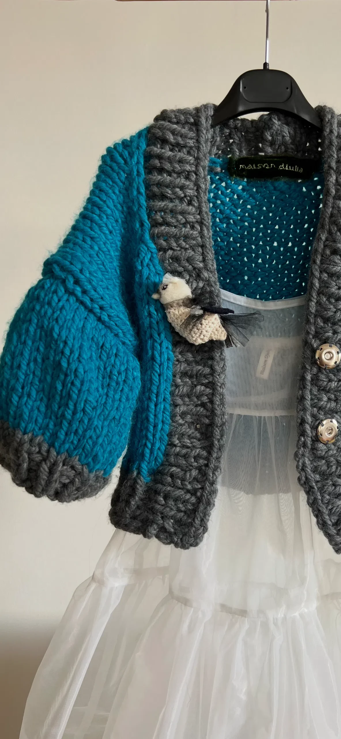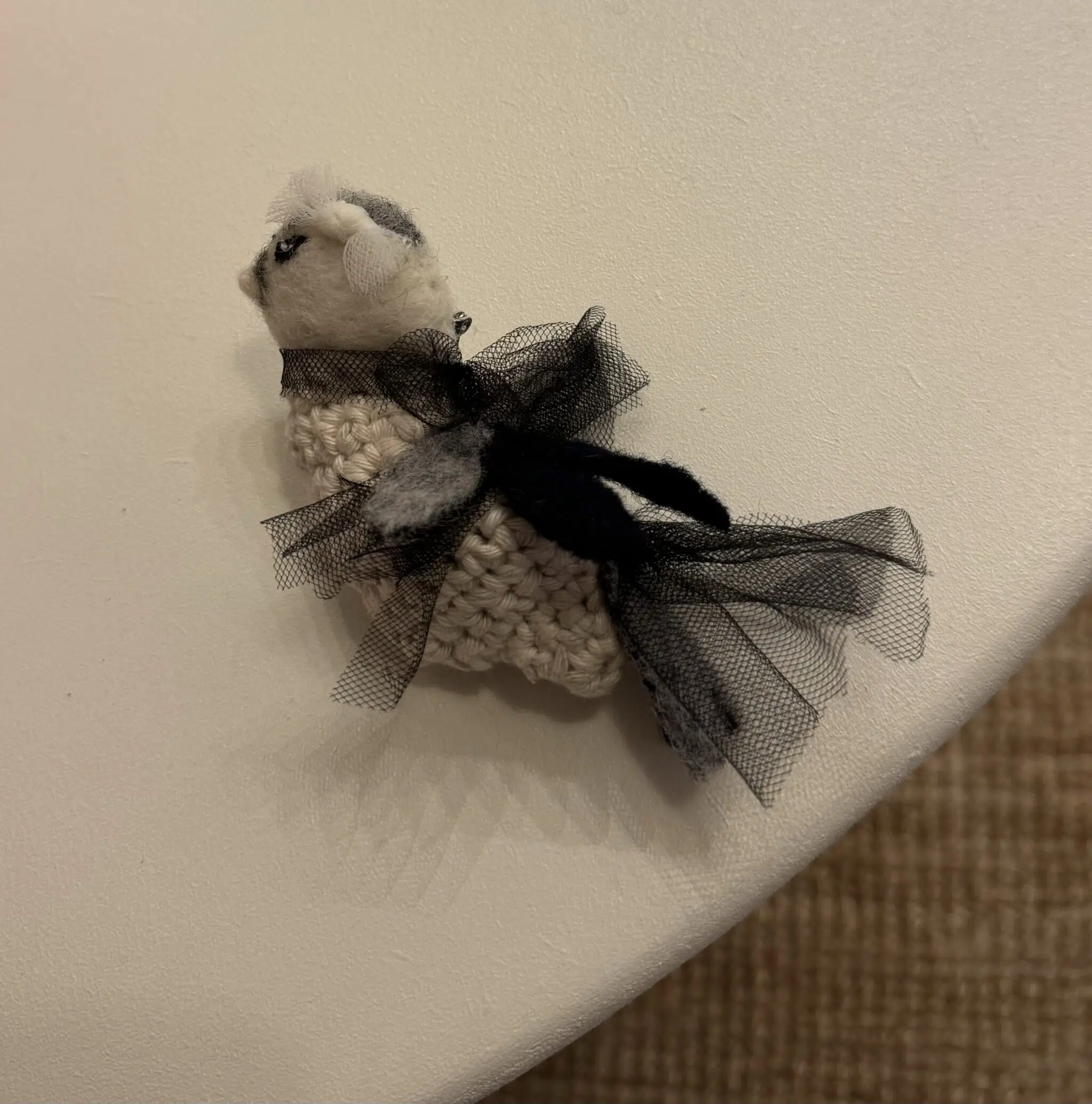 Broche oiseau crochetée et brodée à la main. Une pièce unique poétique.
