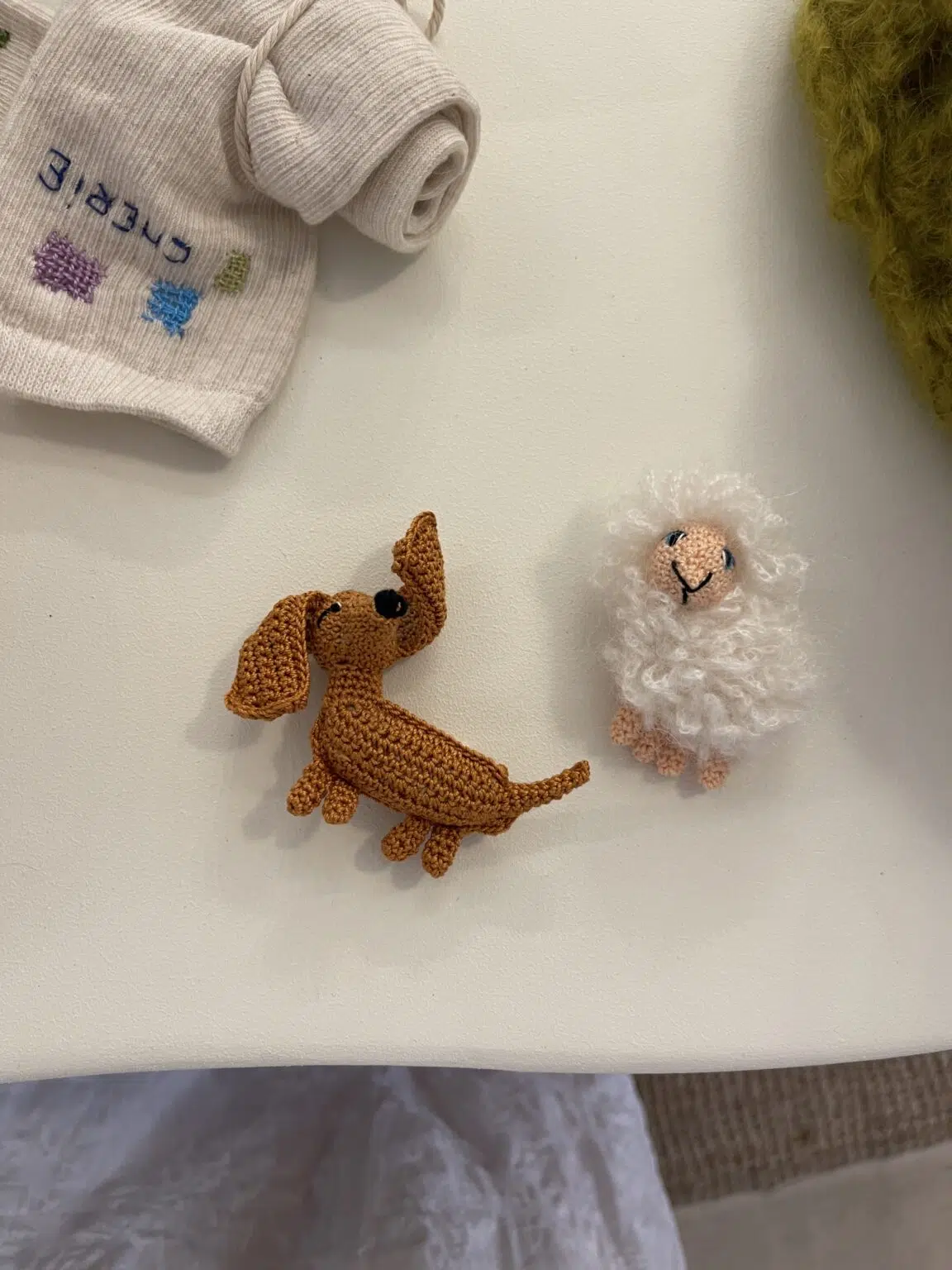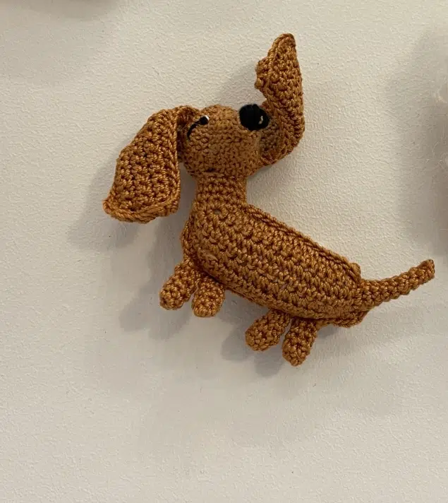 Broche teckel crochetée main en coton.