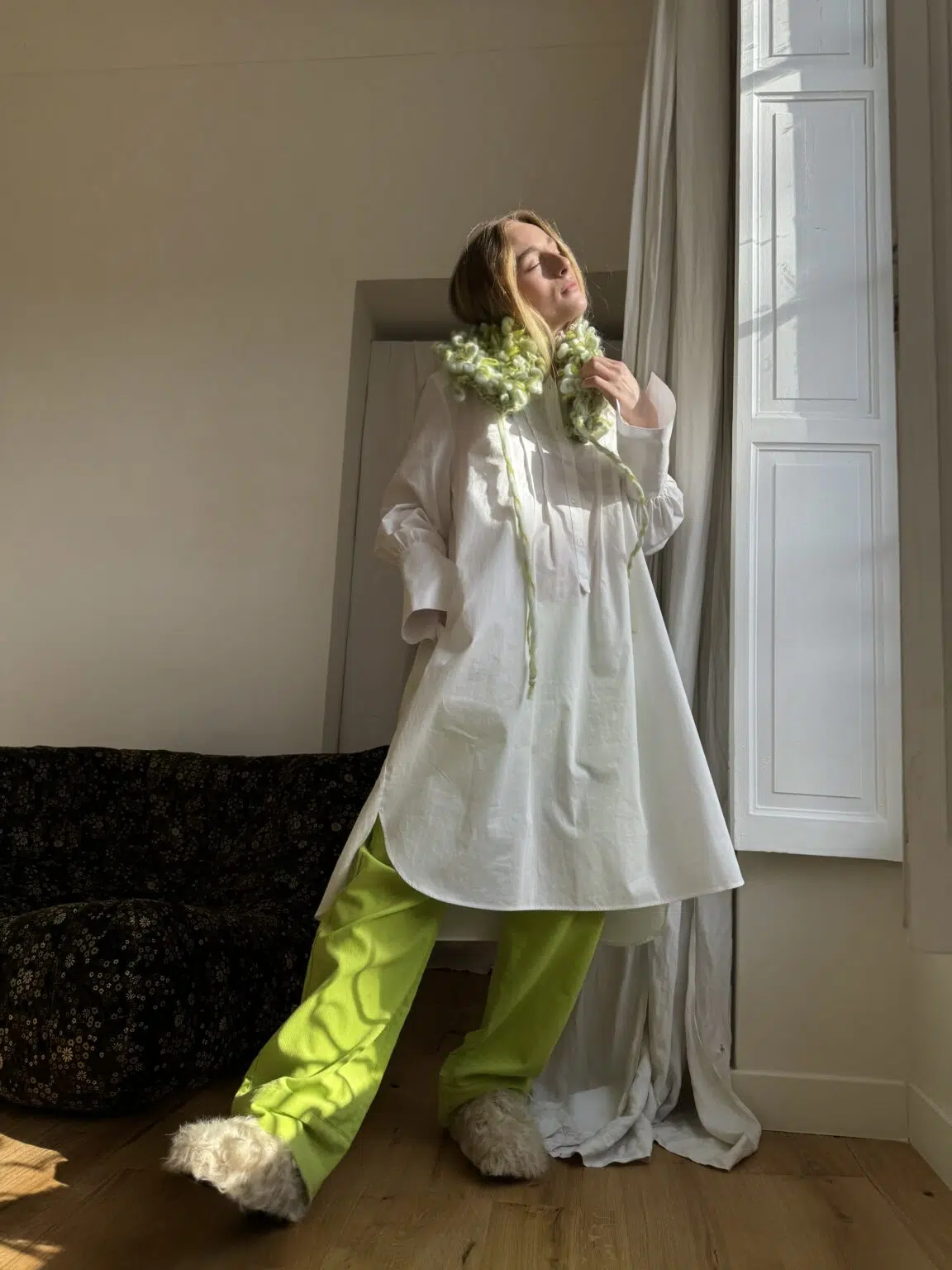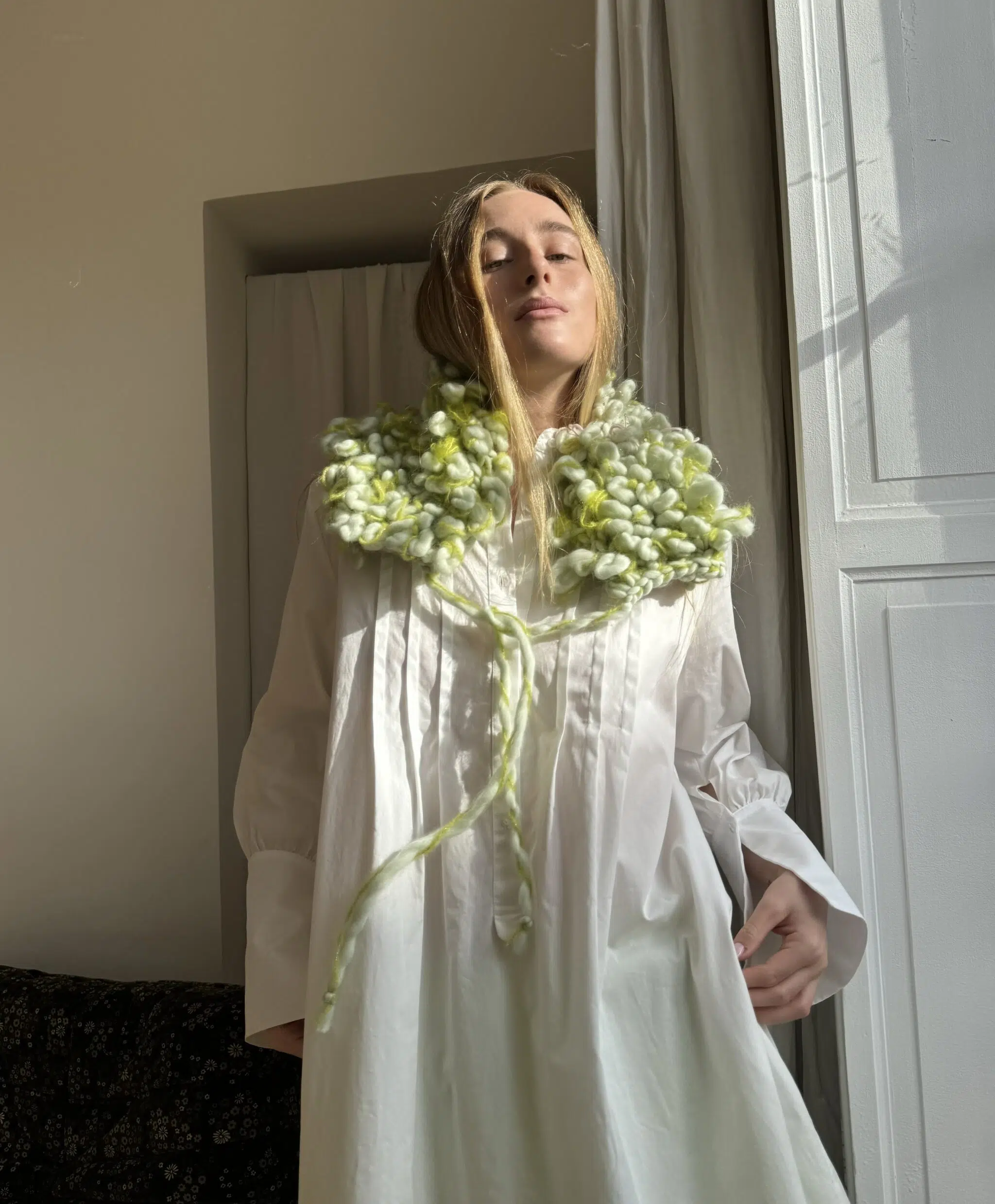 Col amovible tricoté main en laine et mohair. Une création poétique. PIÈCE UNIQUE