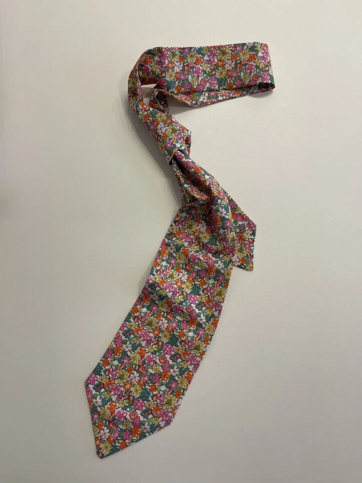 Cravate en coton Liberty of London. Une pièce unique, élégante et raffinée. La petite touche fleurie qui apportera un côté poétique à votre tenue. À porter sur un teeshirt, une blouse ou une robe.