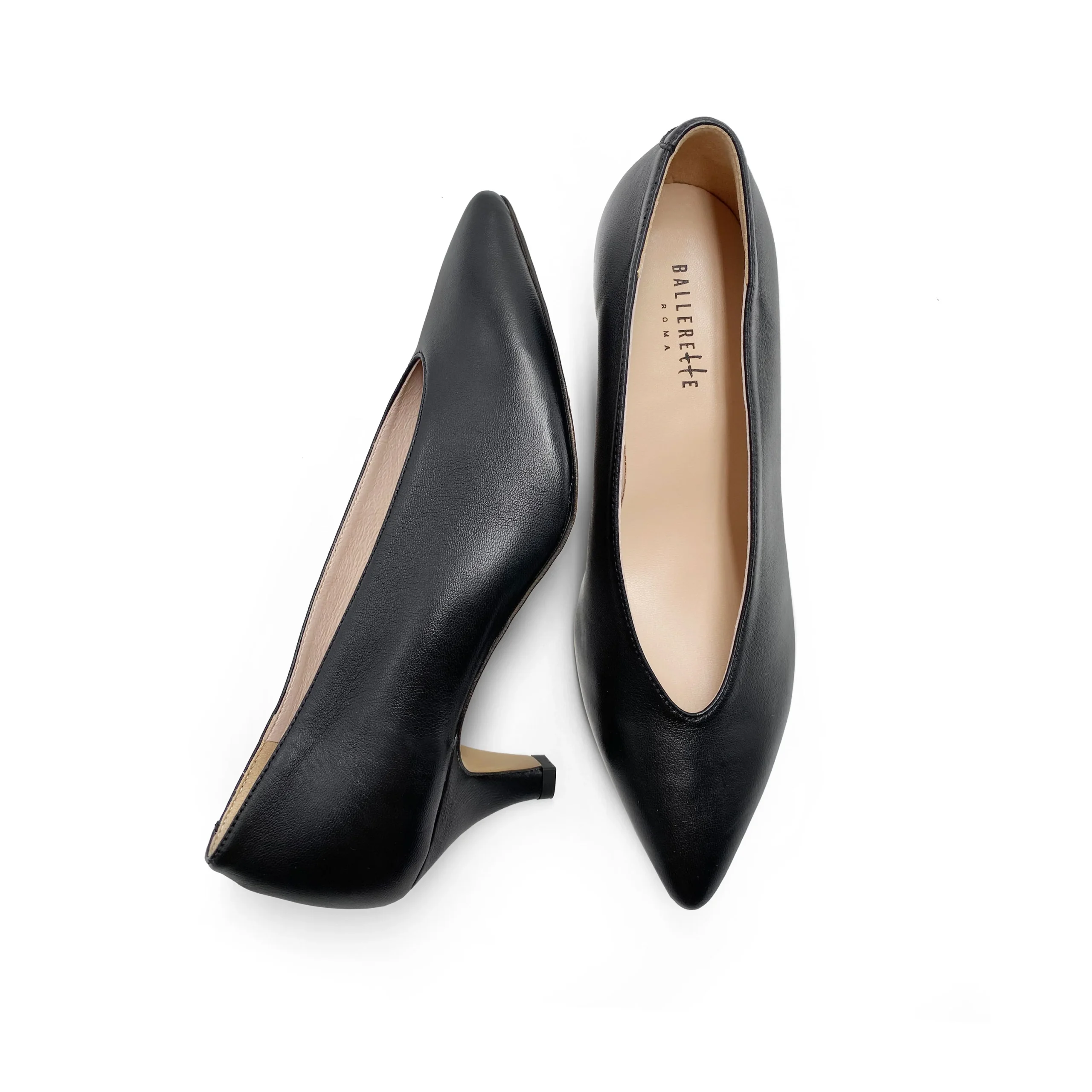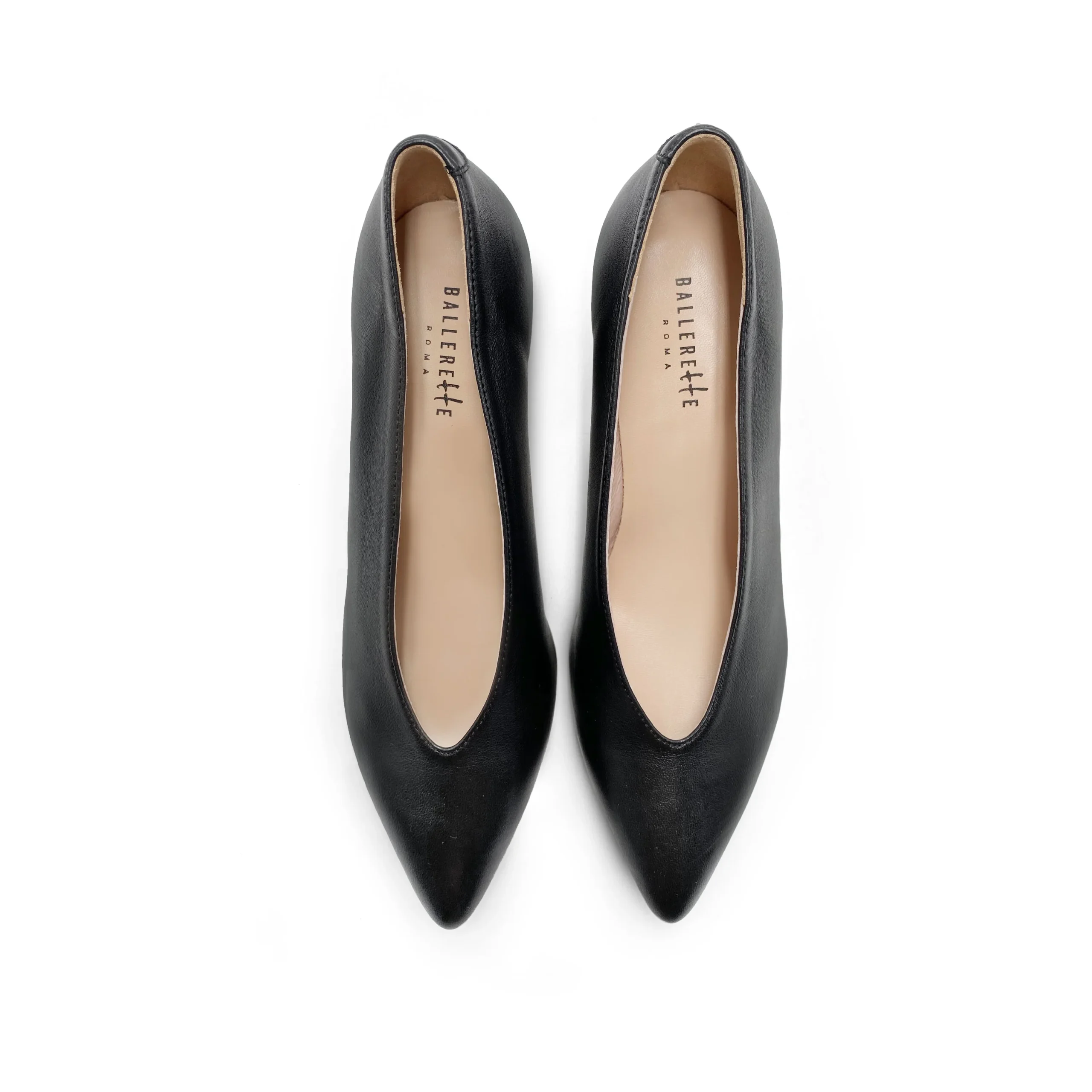 Con tacco altezza 6 cm e sinuosa punta, le ballerine Gianicolo sono delle comode decolletè da indossare tutto il giorno e adatte a diverse occasioni. Un modello sofisticato che presenta un avvolgente e femminile scollo a V sul dorso del piede che rende confortevole e versatile la calzata. Realizzate artigianalemnte e con attenzione ai materiali sono tutte in morbida pelle sia la tomaia che la fodera. Questa variante nera è un vero jolly per i tuoi outfit: abbinala con un jeans, una camicia bianca over e una giacca blu elettrico per un look moderno e metropolitano, con un gonnellone in toulle nero e un top glitter per una romantica serata speciale.