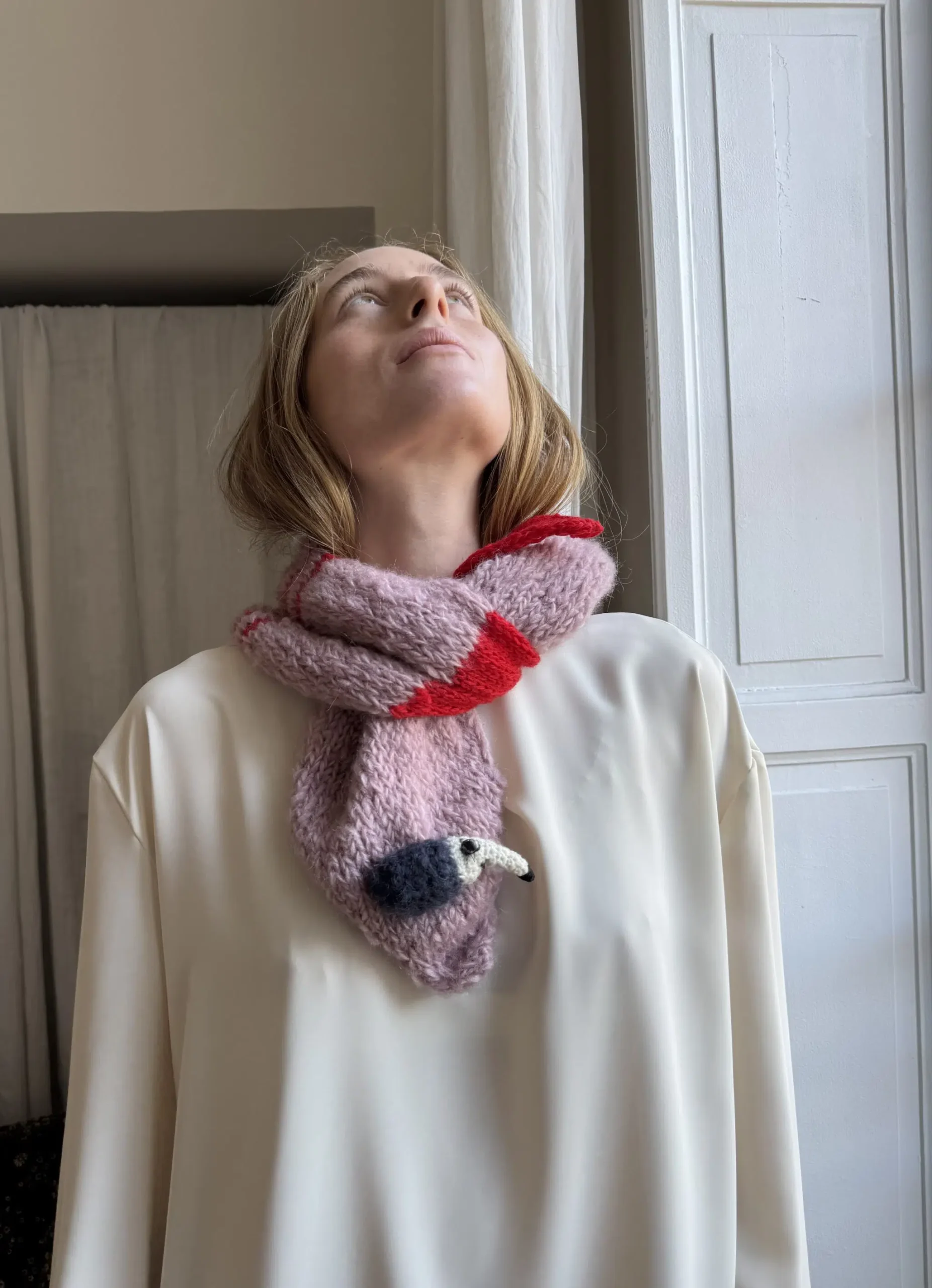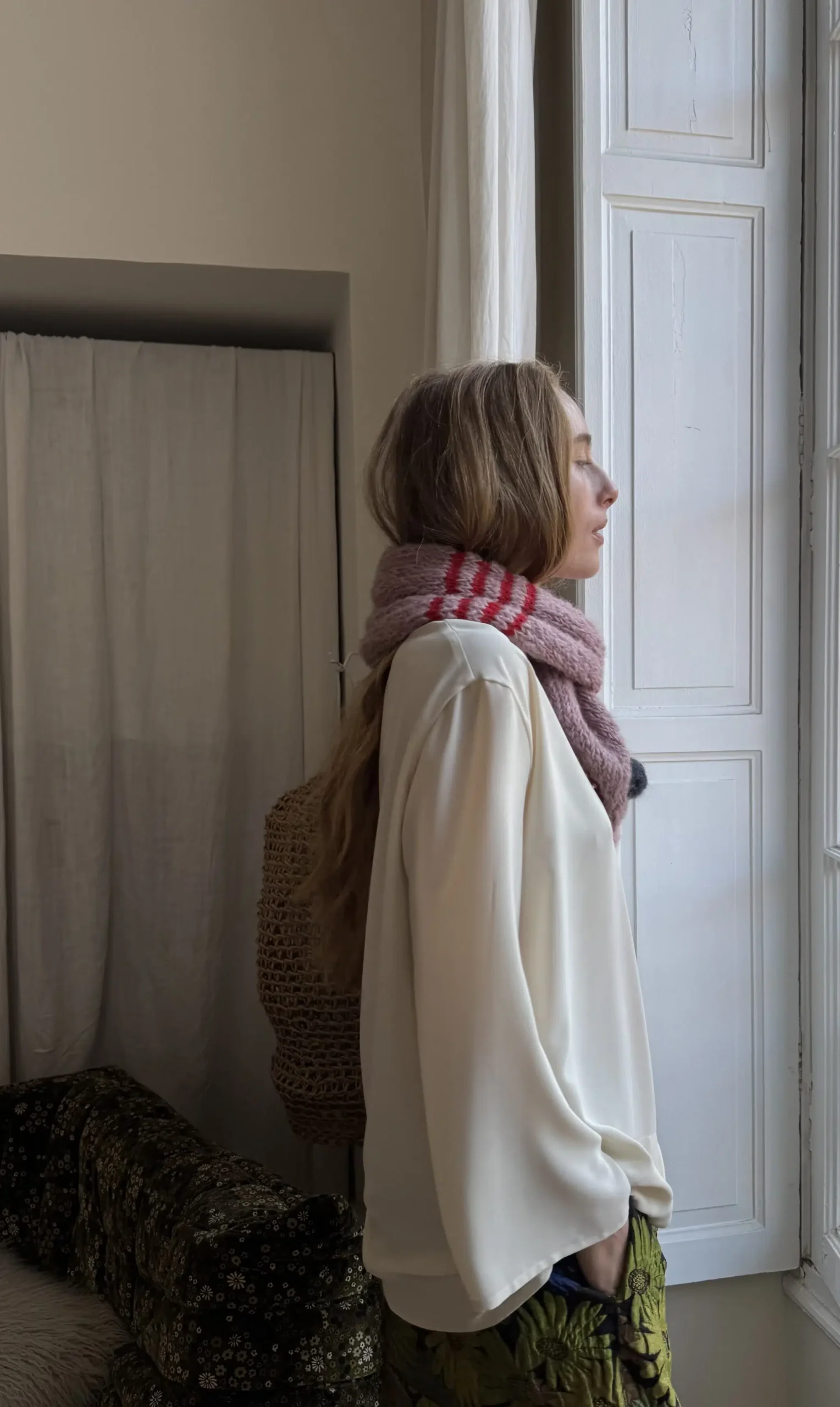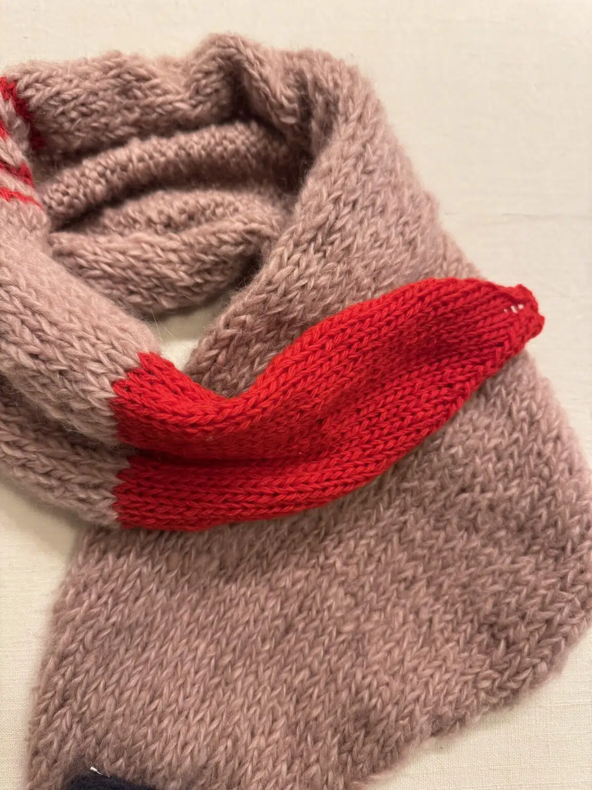 Écharpe tricotée main en laine & coton.