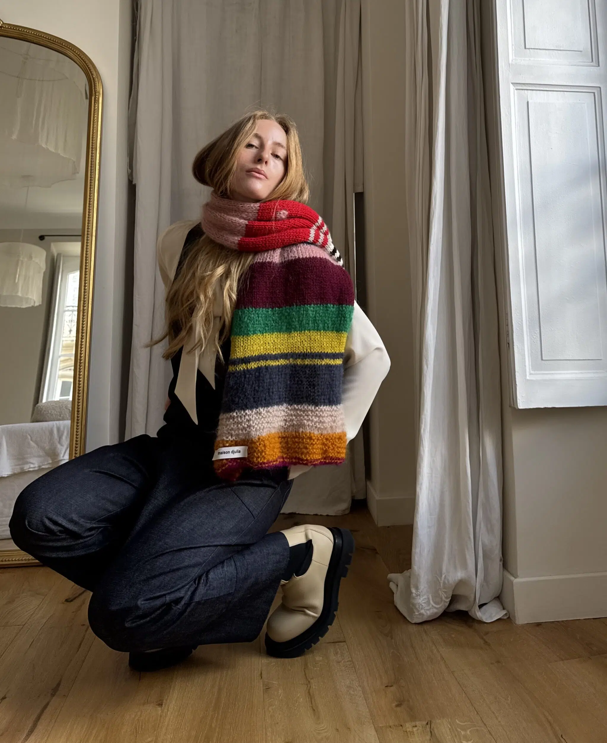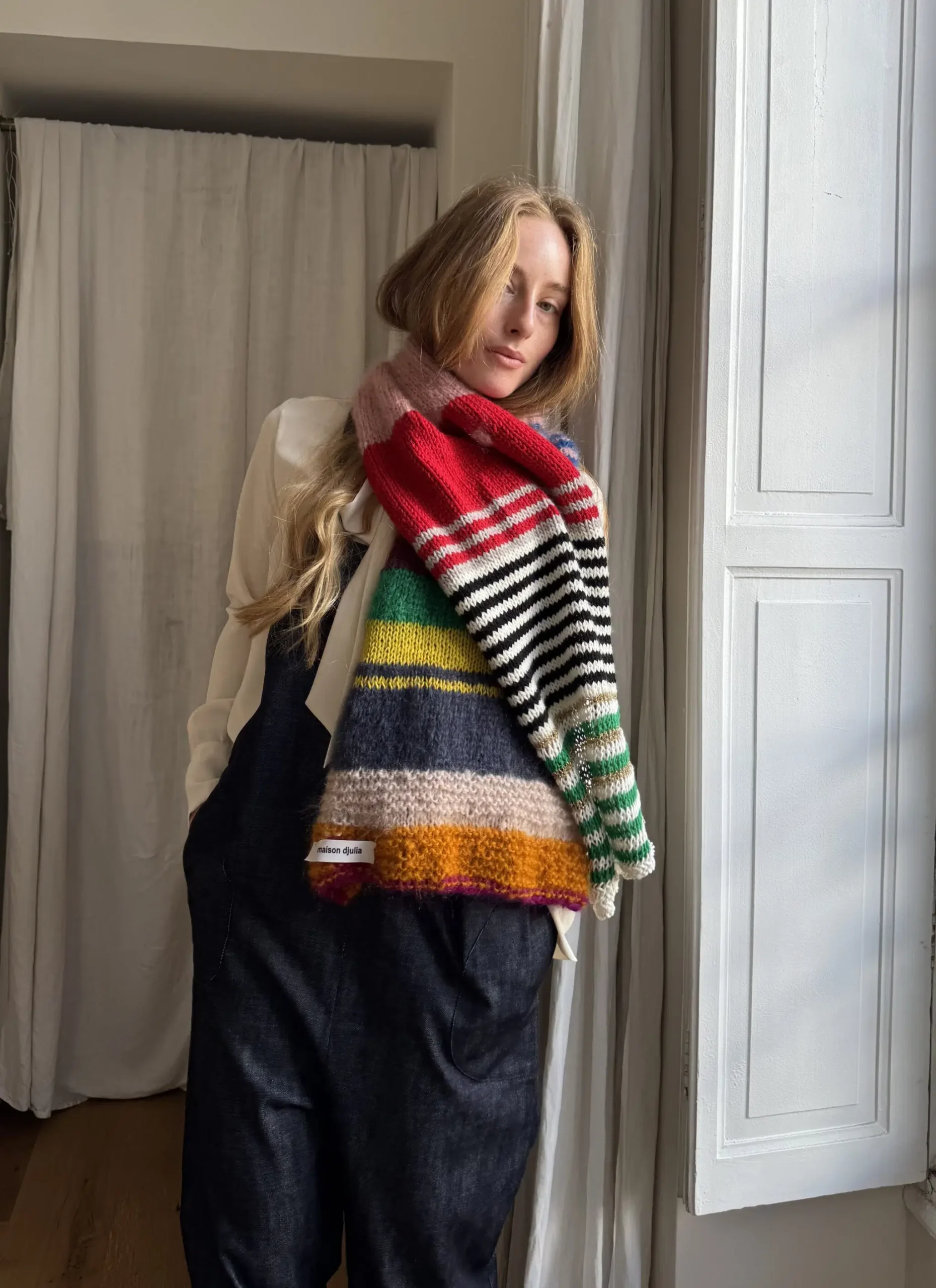 Écharpe tricotée main en laine & kid mohair. PIÈCE UNIQUE