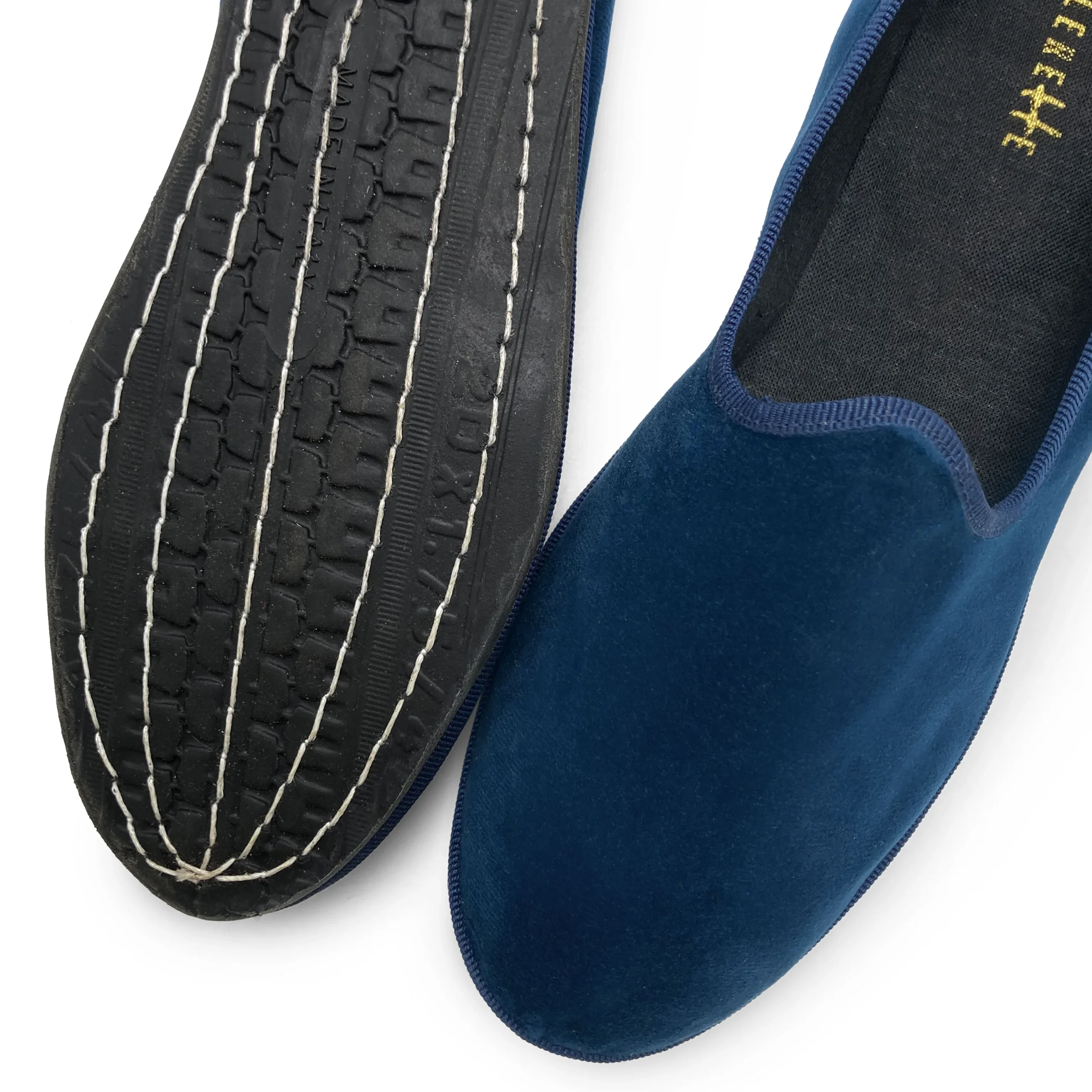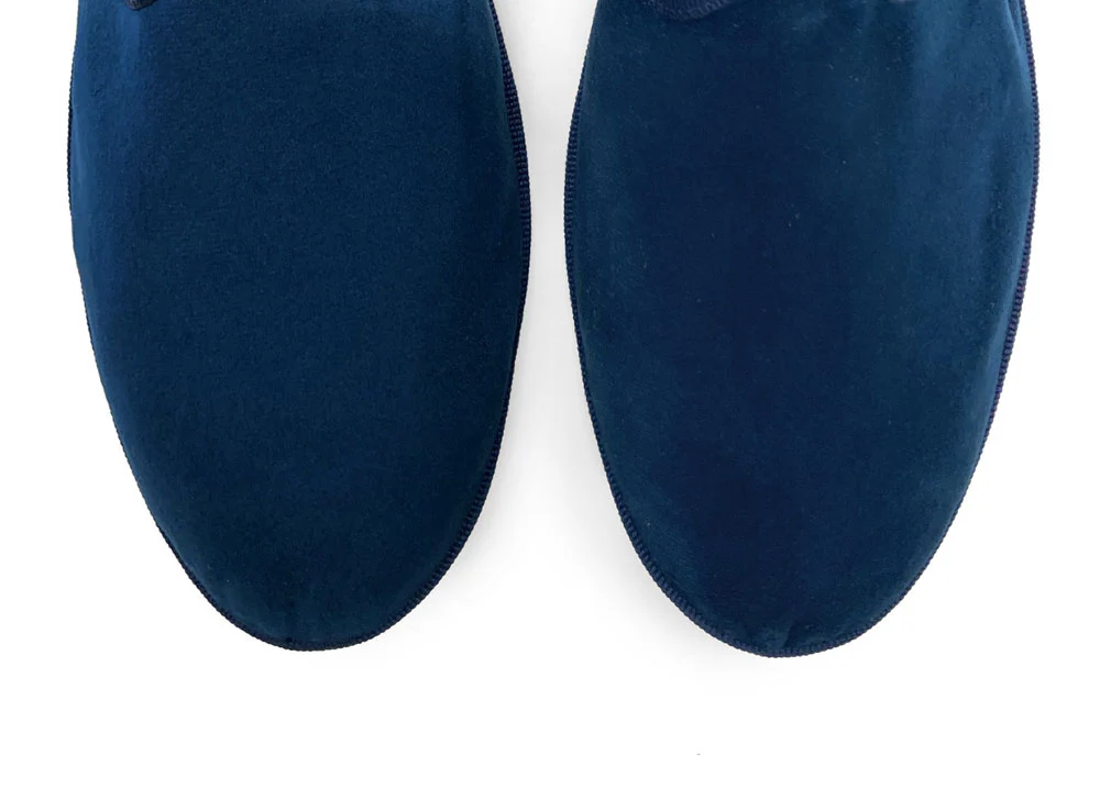 Le friulane, o furlane, o ancora « scarpets » sono scarpe della tradizione veneta realizzate a mano in Italia che si contraddistinguono per comodità, eleganza e versatilità. Questo modello d’origine antica è realizzato in morbido e lussuoso velluto di colore blu intenso con un particolare e innovativo trattamento antimacchia e idrorepellente, bordo in gros grain in tinta, fodera e sottopiede in cotone naturale, suola in gomma cucita. Le friulane in velluto blu da donna sono un modello da indossare in ogni occasione e stagione, sia con calze che a piede nudo. Chic e al tempo stesso informali possono essere portate di giorno con un bermuda in lino naturale e camicia a righe celesti o di sera con lungo un abito in satin dai colori accesi.