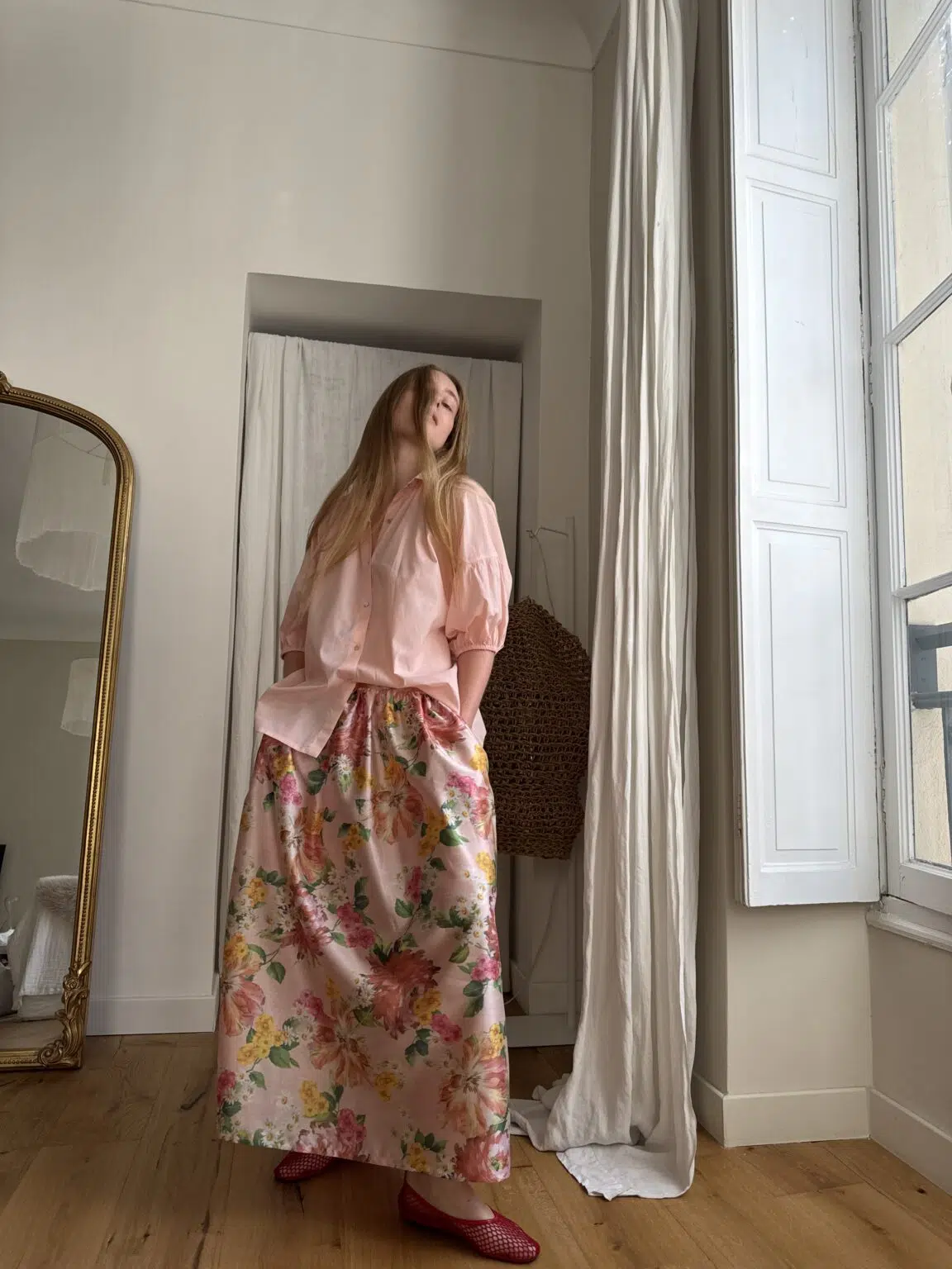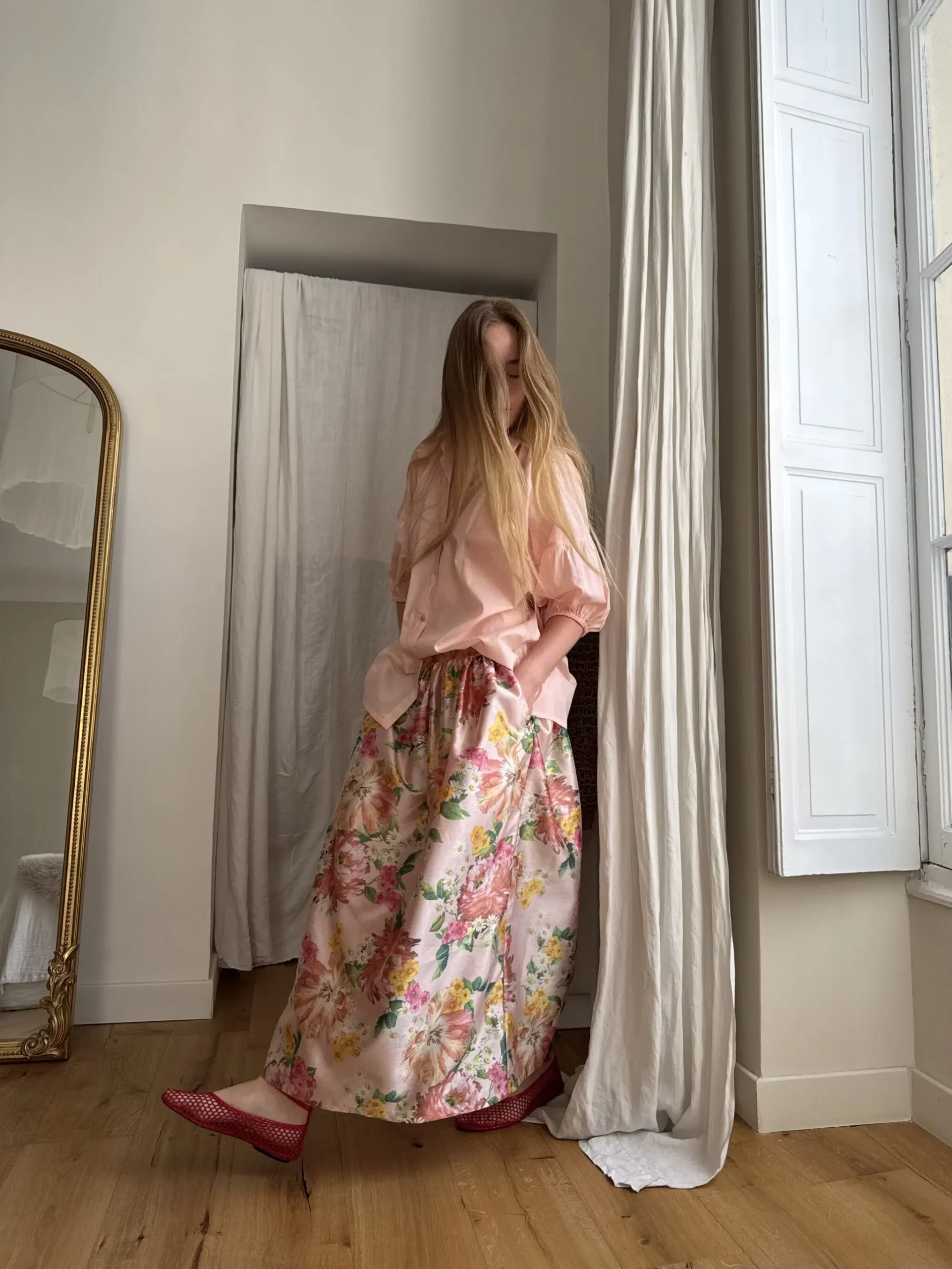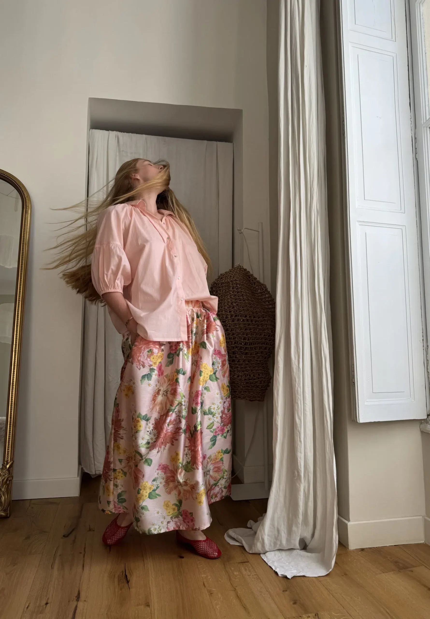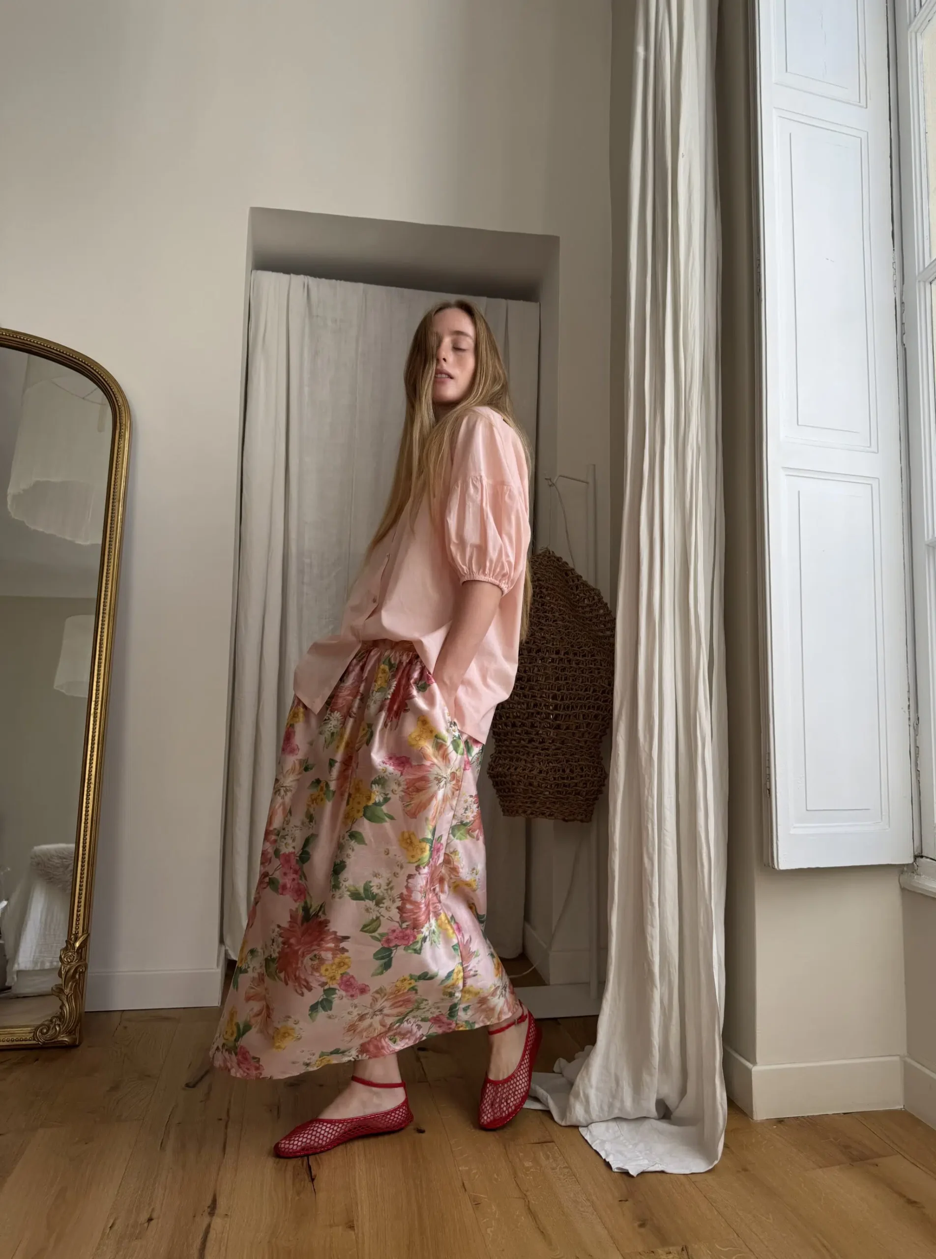 Jupe « AMBRE » fleurie. Taille sur élastique au dos & biais sur le devant. Fronces, poches latérales. PETITE ÉDITION.