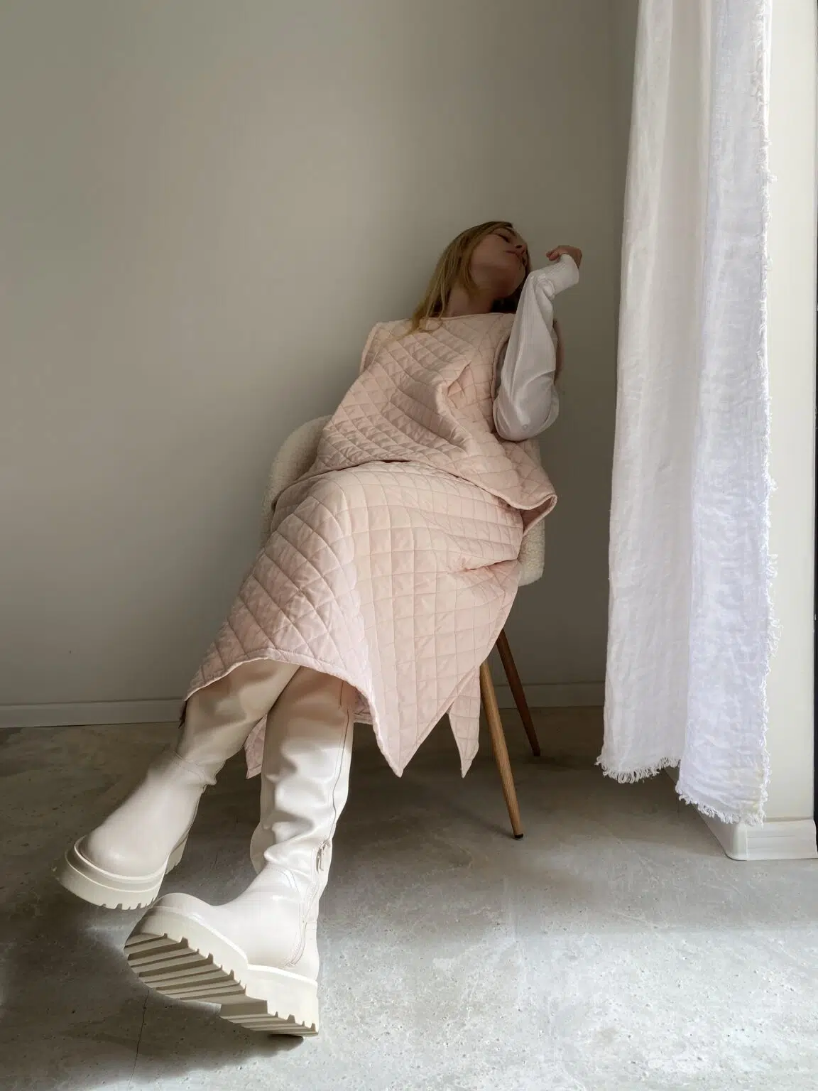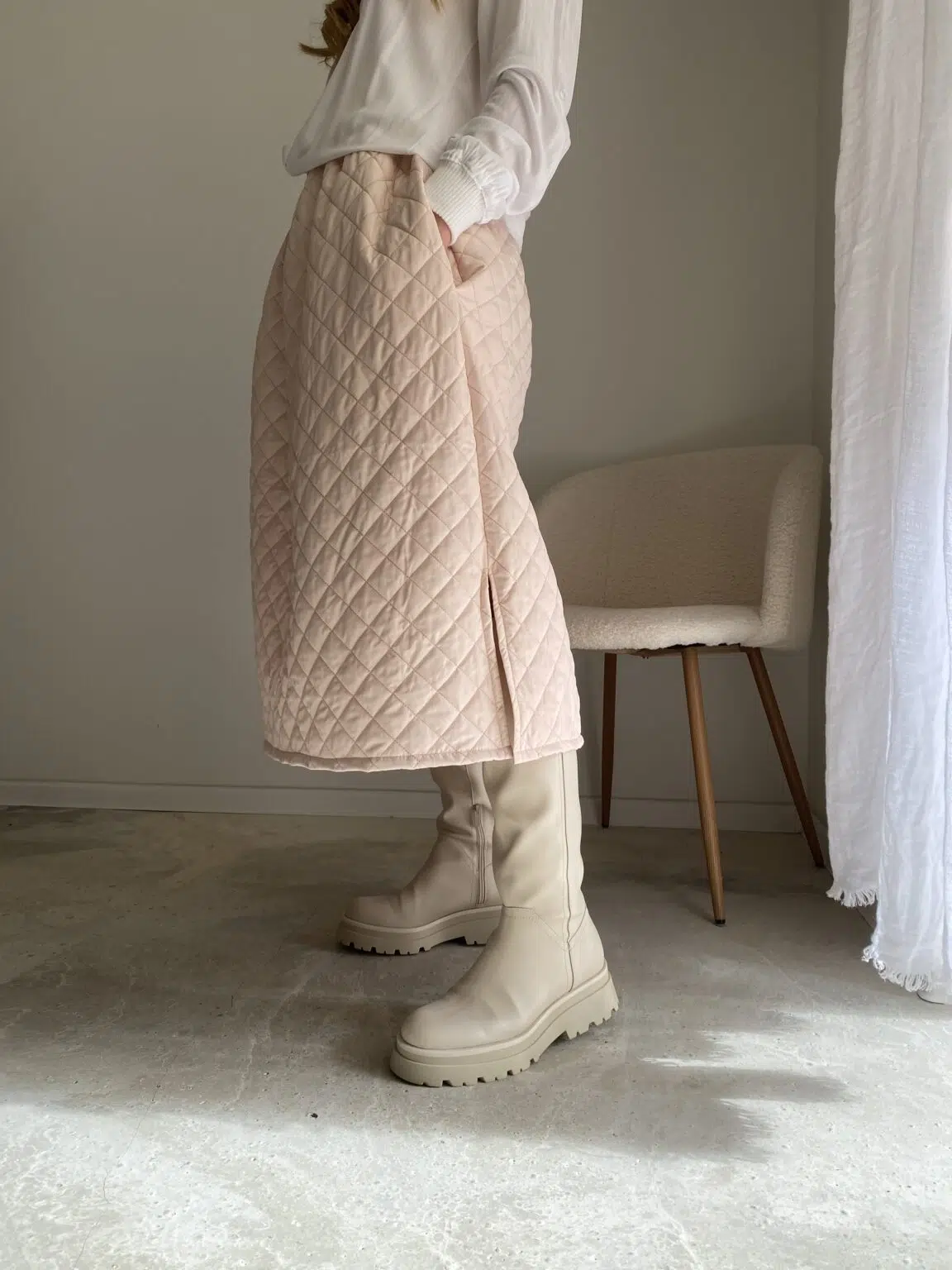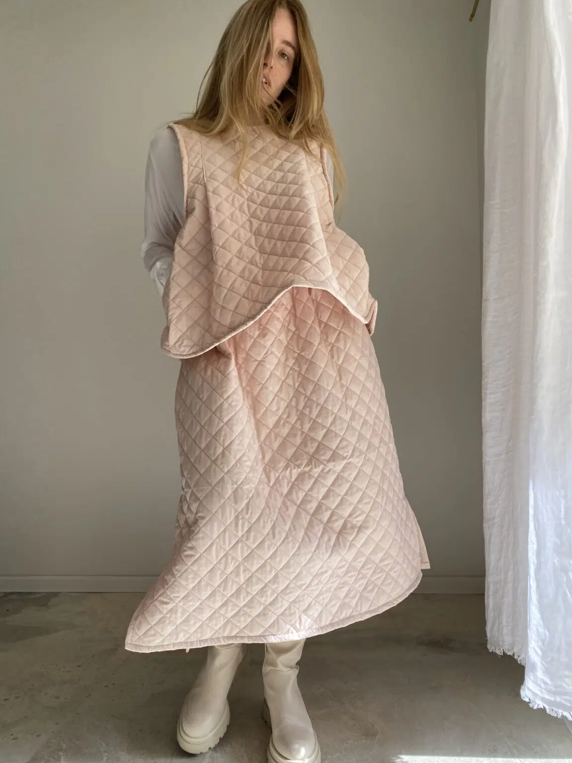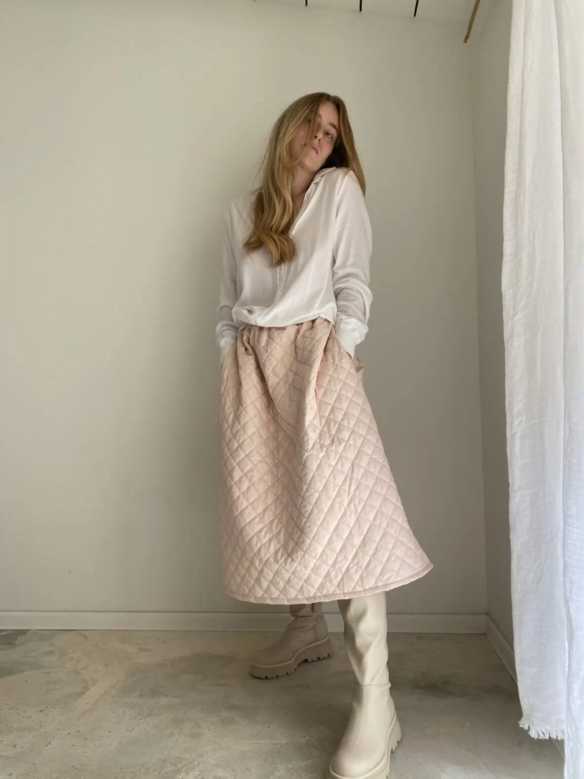 Jupe longue matelassée rose poudrée, élastique à la taille, poches latérales, bouffantes, légère et surtout UNIQUE ! LA pièce tendance !