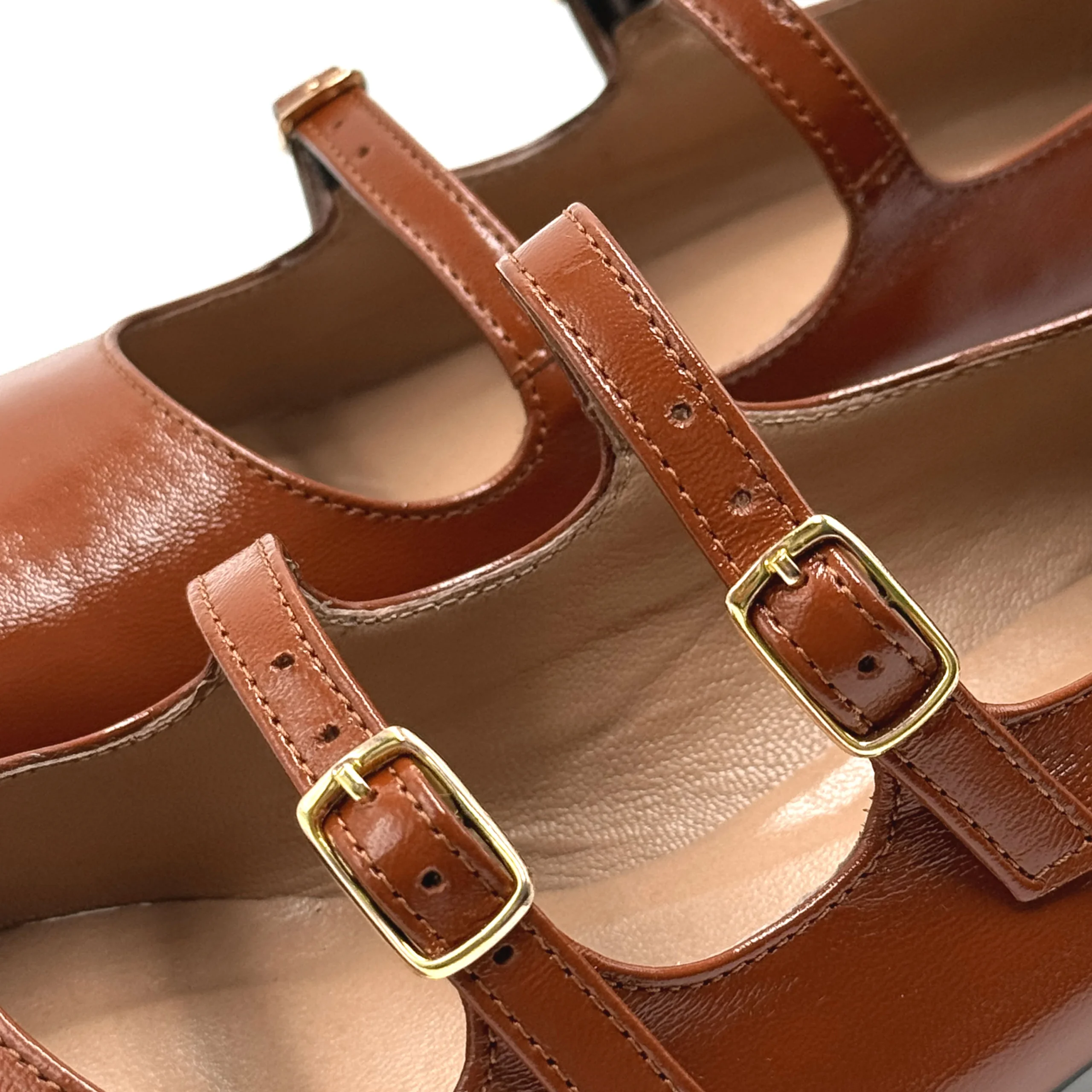 Le Mary Jane Barberini sono delle ballerine con tacco 3 cm e due eleganti cinturini che seguono il piede e che possono essere comodamente regolati. Un modello classico caratterizzato però dalla pelle lucida che crea un effetto luminoso e particolare adatto sia di giorno che si sera. Questa versione è di una particolare tonalità di marrone arancio perfetto per tutti i tuoi abbinamenti autunno inverno. Immaginale con il marrone, il blu, il nero o il verde e viola. Confortevoli e morbide da indossare, hanno un scollo leggermente basso e una punta quadrata affusolata. L’interno è foderato in pelle e la suola è in gomma light di colore nero. Puoi scegliere se indossarle con calze o calzini colorati e abbinarle sia a gonne che pantaloni di varie lunghezze.