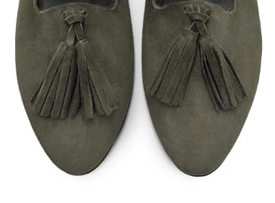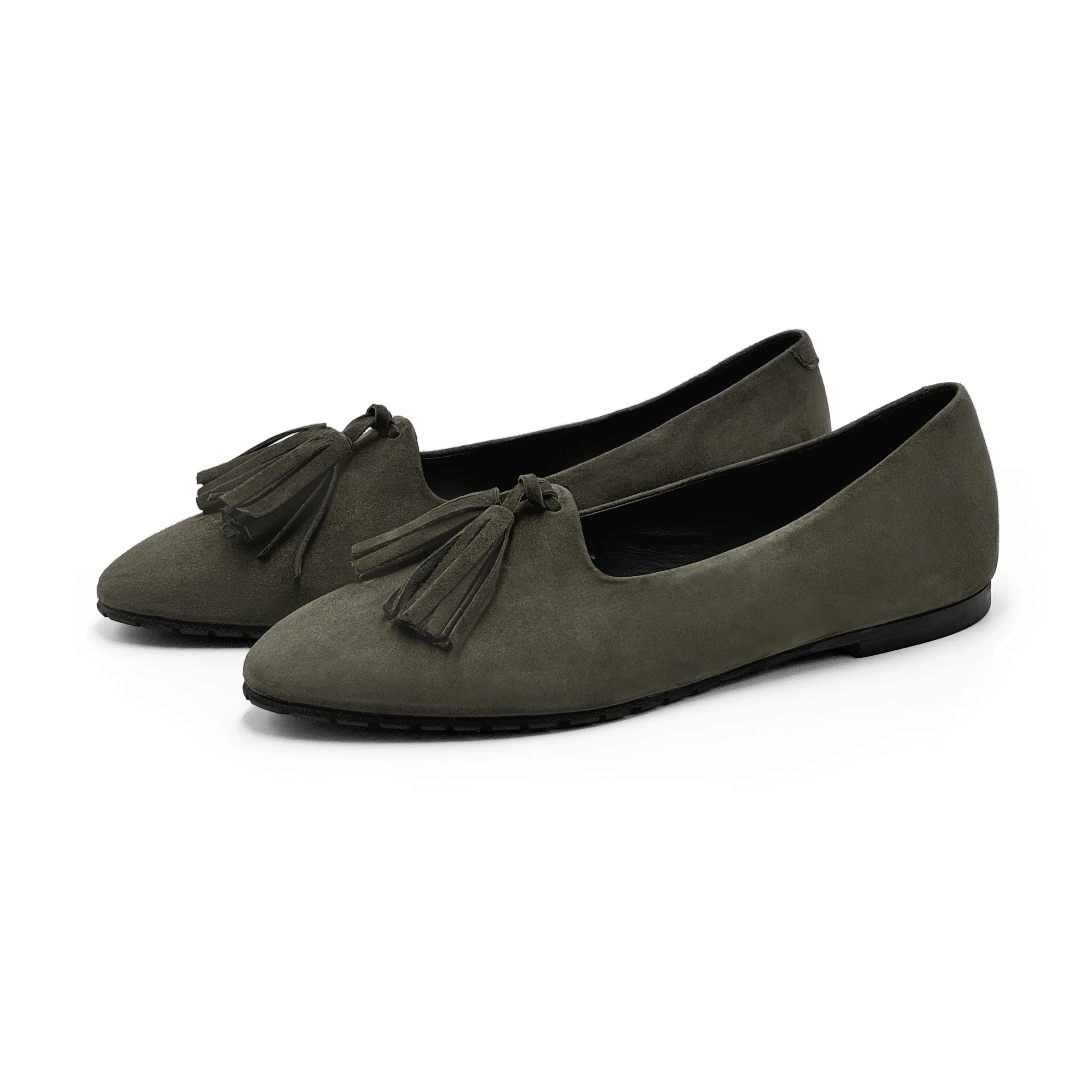 I Monserrato sono mocassini da donna in camoscio con nappine decorative in tinta che uniscono comfort ed eleganza in un’unica calzatura. Foderati internamente in pelle nera, presentano un tacco basso di 0,5 cm e una suola sottile in carrarmato leggero di colore nero, pensata per garantire stabilità e leggerezza. La scollatura con mascherina alta dona al piede una linea affusolata, contribuendo a slanciare visivamente la figura. In questa versione in camoscio verde bosco, si distinguono per il loro fascino sobrio e raffinato, perfetto per aggiungere un tocco sofisticato a ogni look. Versatili e ricercati, si abbinano perfettamente a un completo in tweed nei toni del beige, a pantaloni palazzo color panna con maglia a collo alto color cuoio, oppure a una gonna plissé color avorio abbinata a un dolcevita verde oliva. Ideali anche per outfit più audaci, possono essere indossati con un maxi abito floreale nei toni caldi dell’autunno o con un tailleur in velluto a coste bordeaux per un look vintage rivisitato. I Monserrato sono i mocassini perfetti per chi desidera creare combinazioni sempre nuove senza rinunciare allo stile e alla comodità.