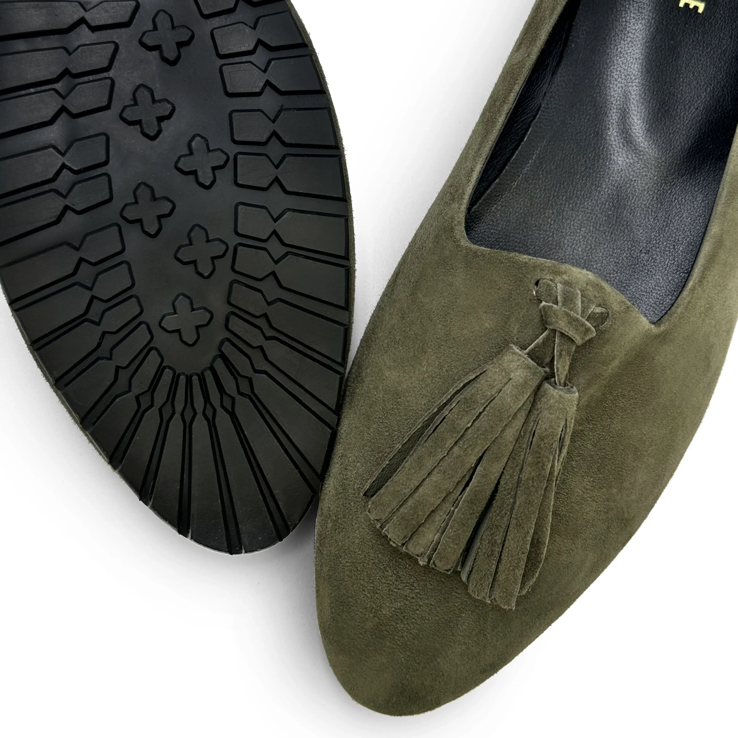 Mocassini da donna in camoscio con nappine in tinta, i Monserrato sono le scarpe da donna ideali per chi cerca un modello artigianale comodo e trendy. Foderati in pelle nera, hanno la suola in gomma nera leggera con trama a carrarmato. Grazie alla forma a punta e alla mascherina che accompagna bene il dorso del piede, questi mocassini rislutano particolarmente affusolati e sinuosi. Qui proposti nel colore verde oliva, sono perfetti per creare diversi abbinamenti e accompagnarti durante tutta la stagione.