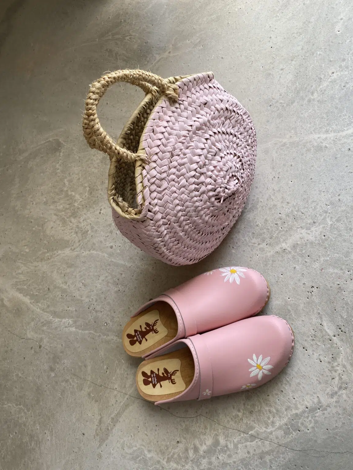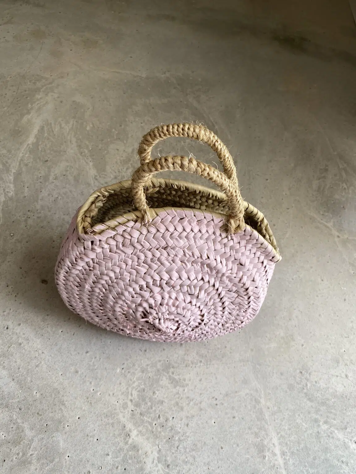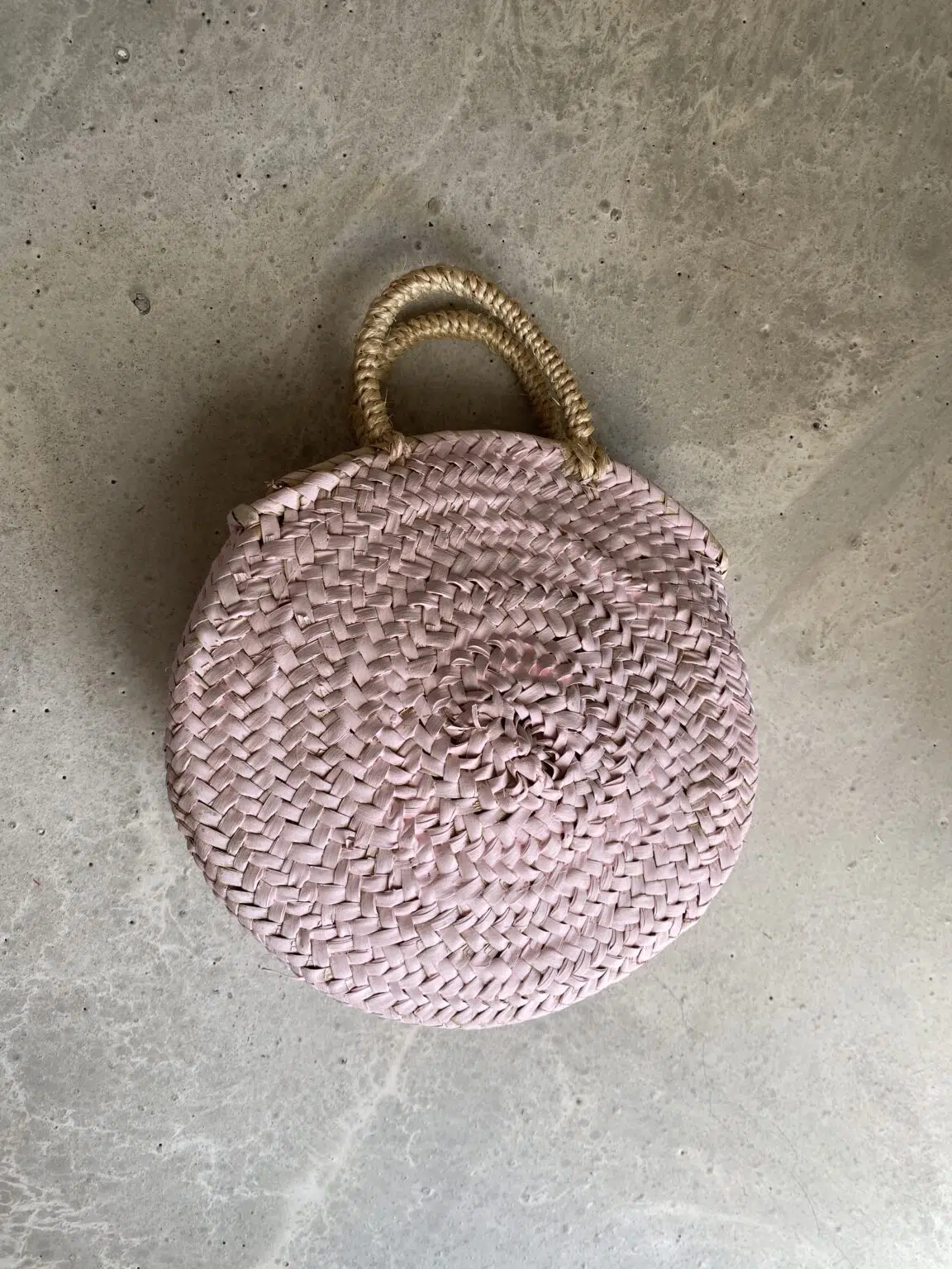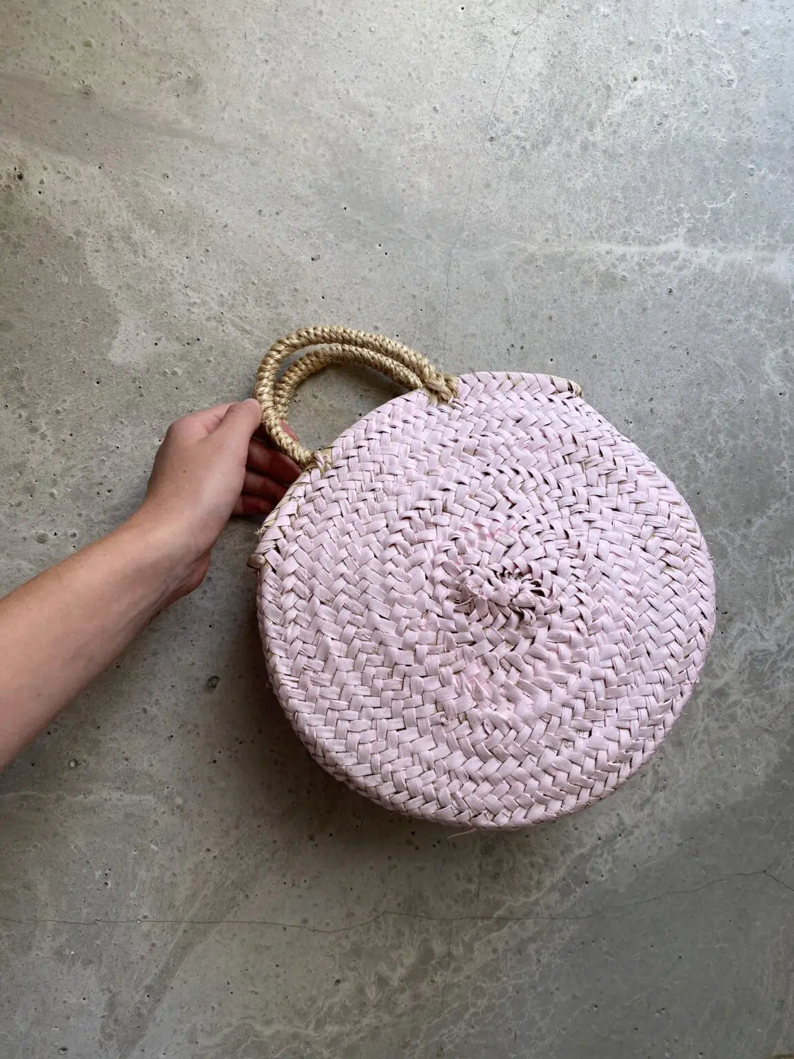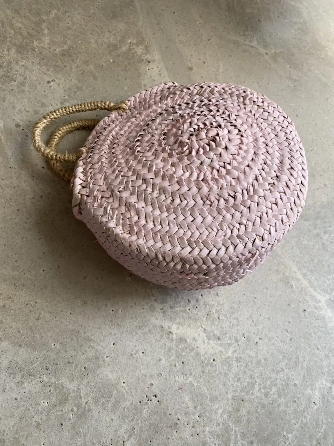 Petit panier rond rose poudré, peint à la main 💕Le petit sac parfait qui viendra habiller vos tenues et mettre une petite touche de couleur !!