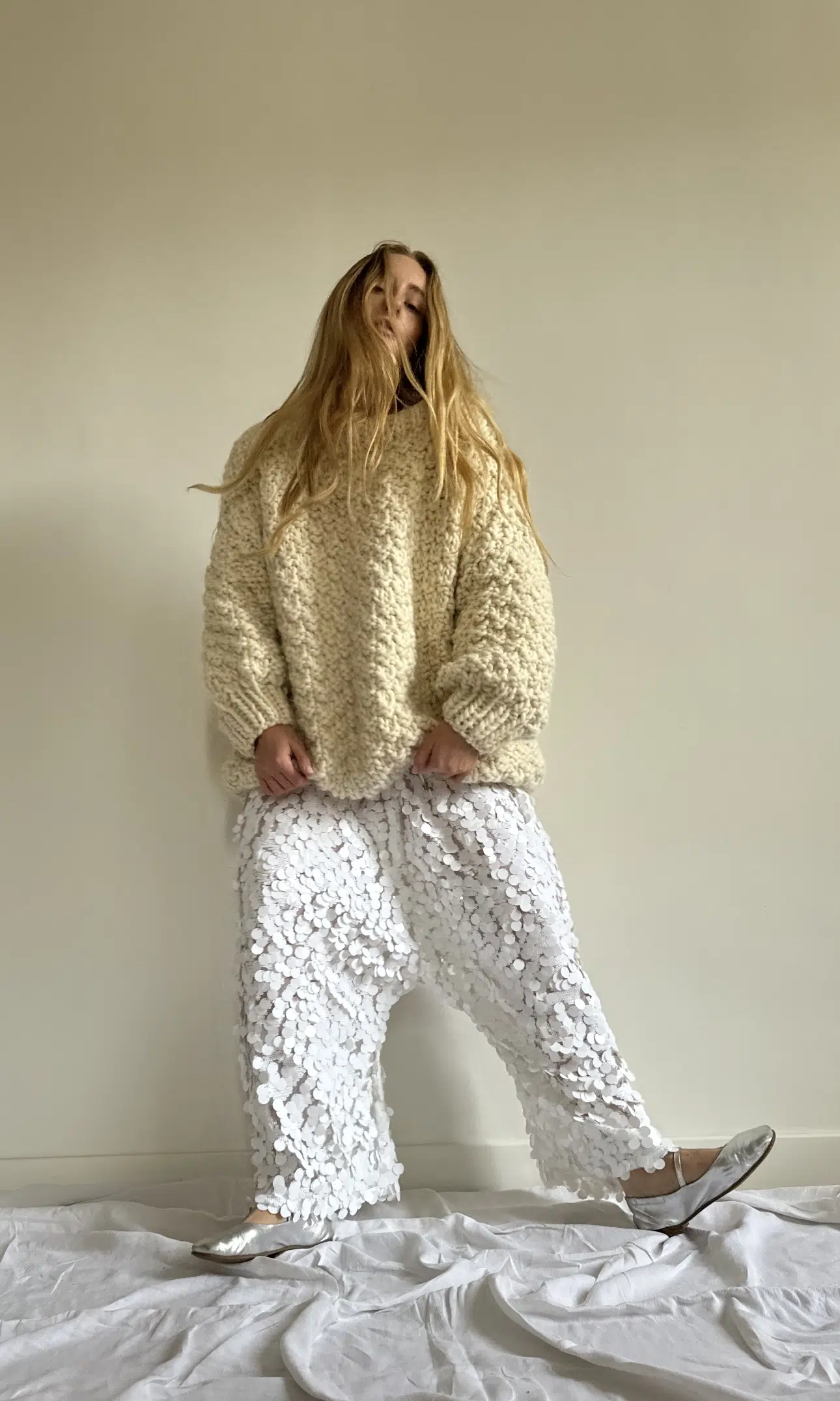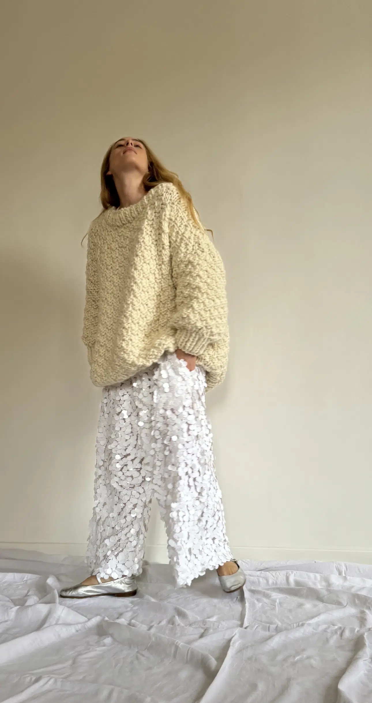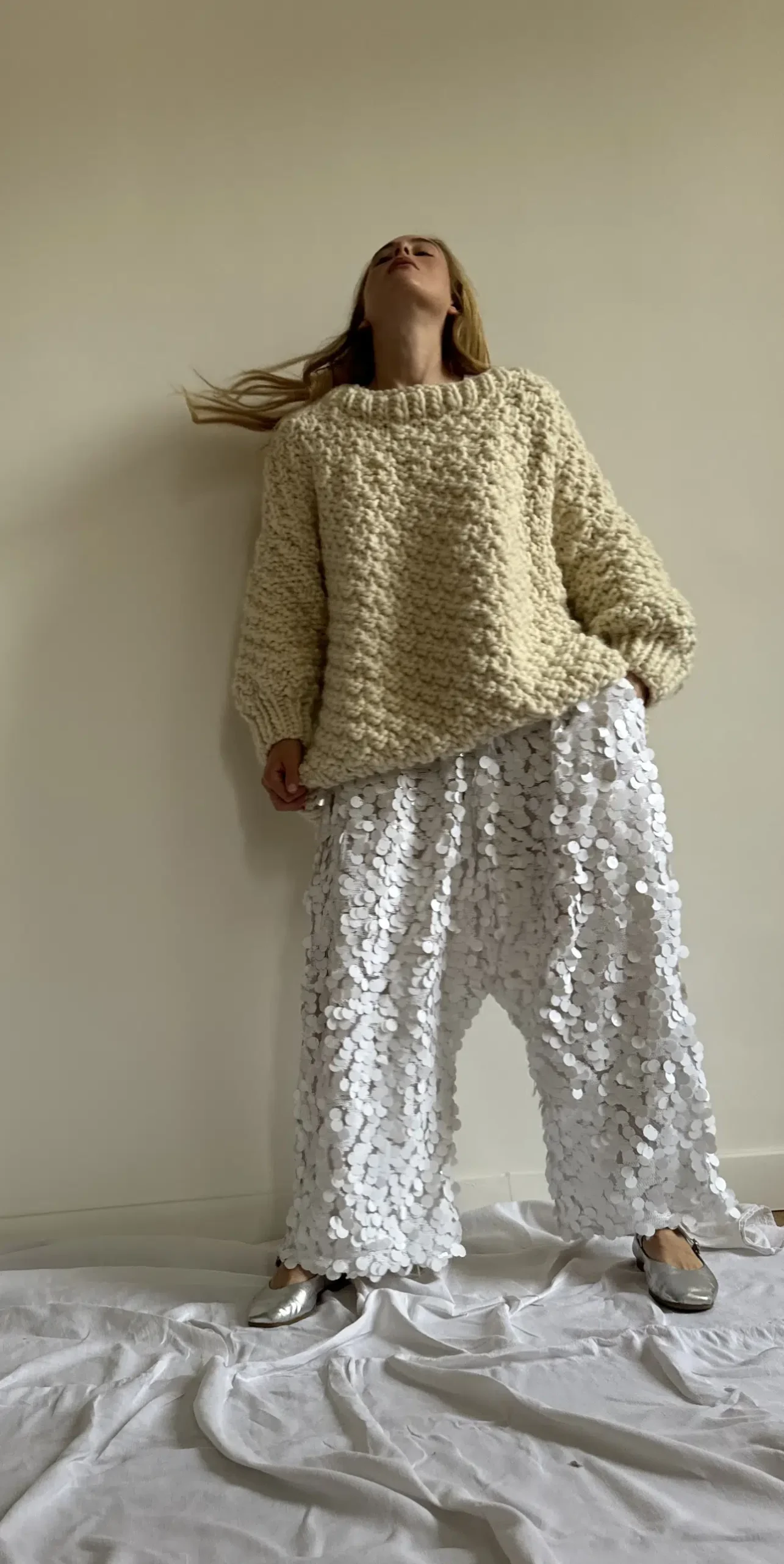 Pantalon « GASTON » dans un sublime tissu à sequins. Une coupe loose et minimaliste, style japonisant, fond de pantalon bas, poches, taille sur élastique, une pièce stylée et unique.