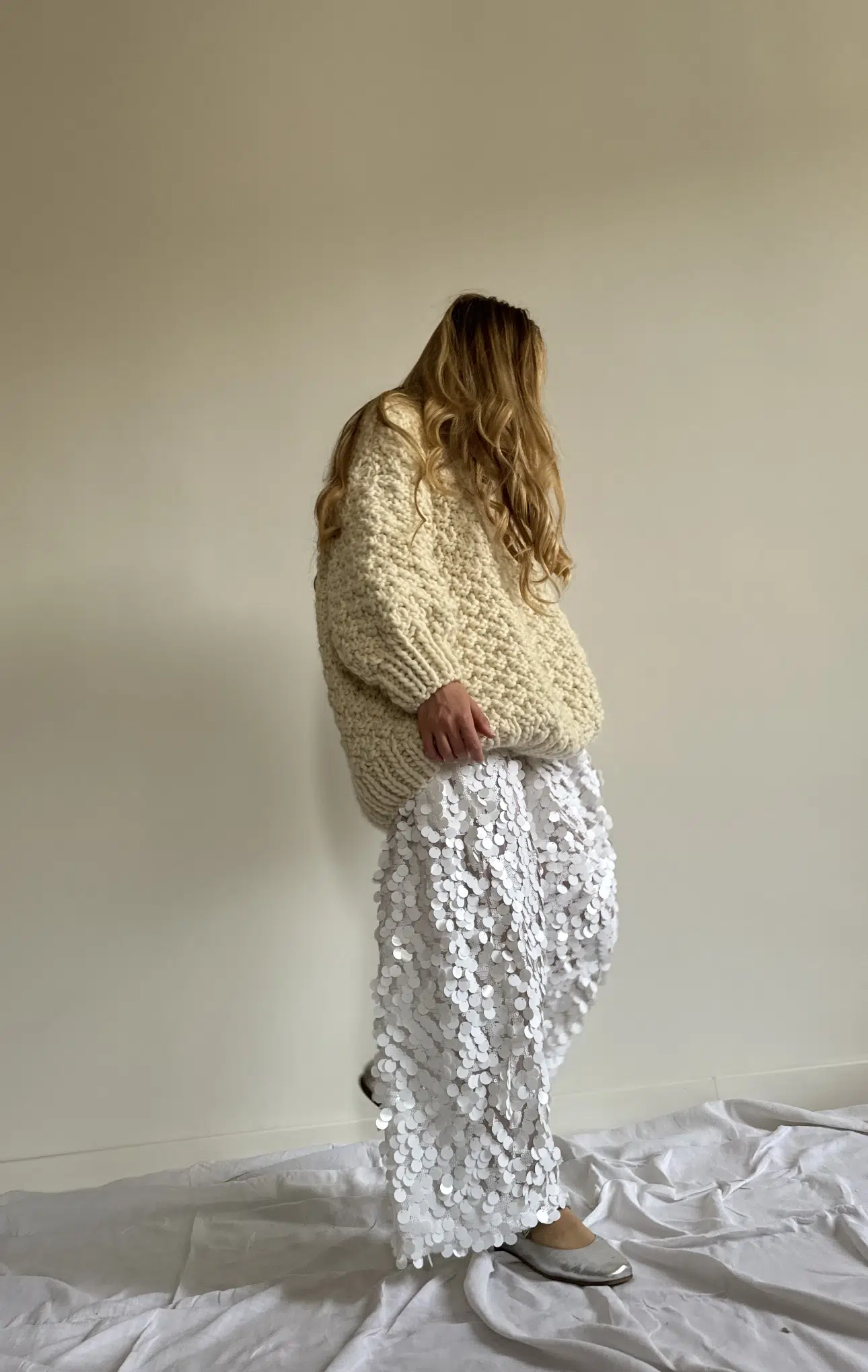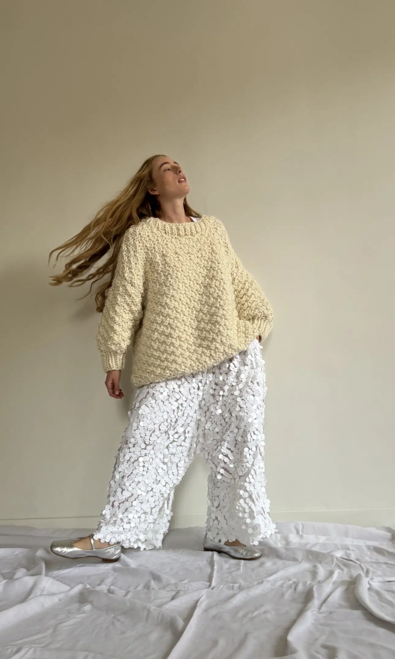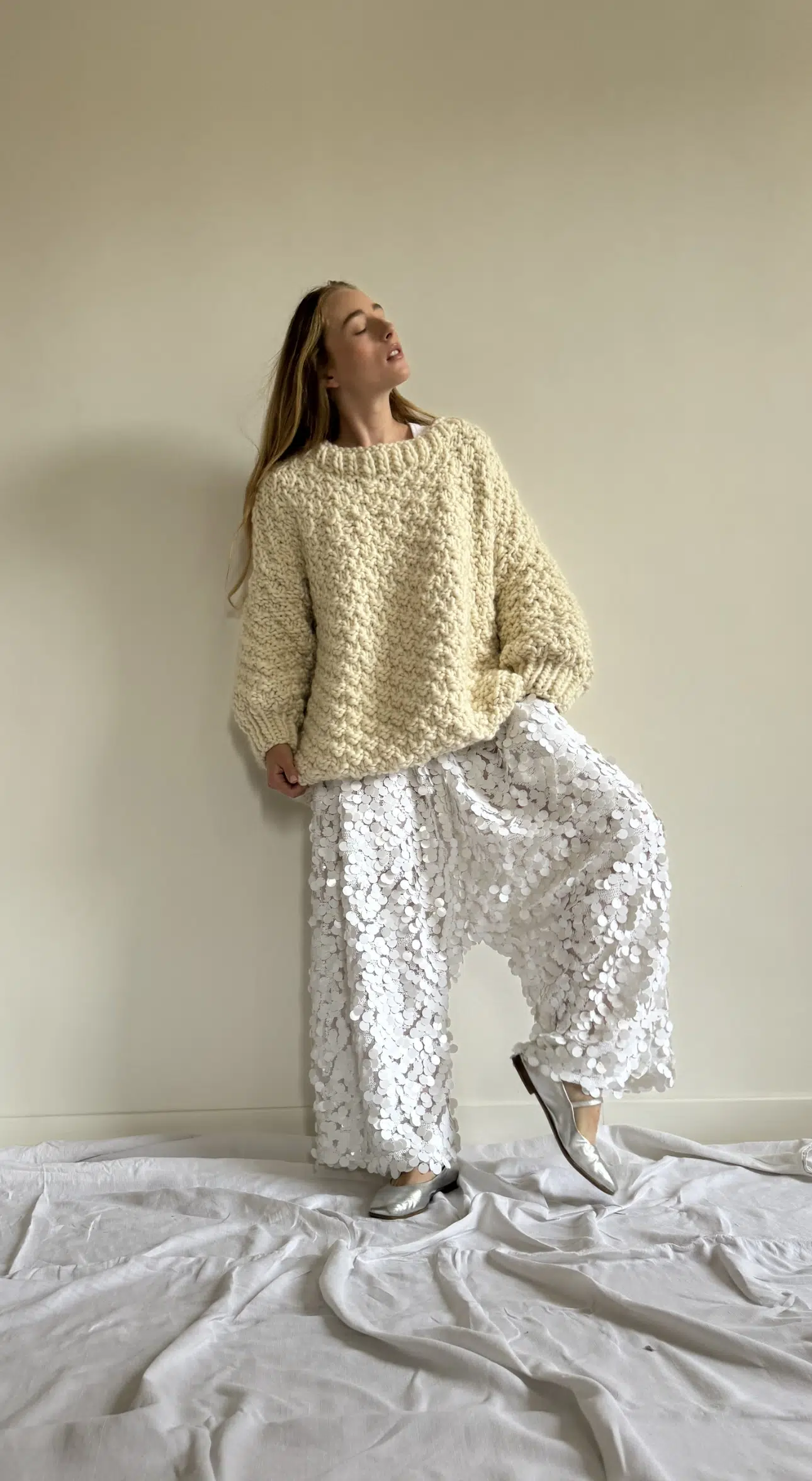 Pantalon « GASTON » dans un sublime tissu à sequins. Une coupe loose et minimaliste, style japonisant, fond de pantalon bas, poches, taille sur élastique, une pièce stylée et unique.