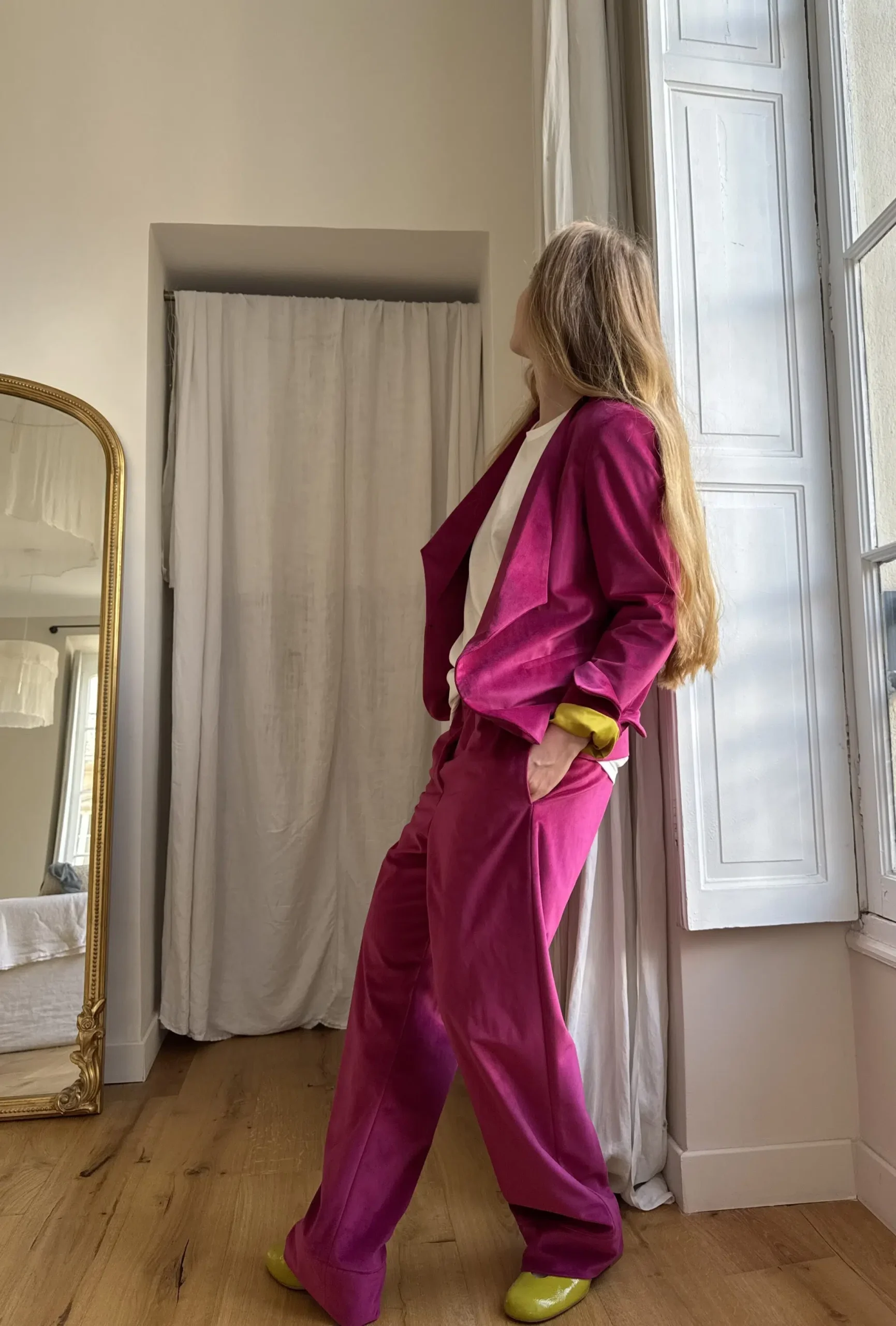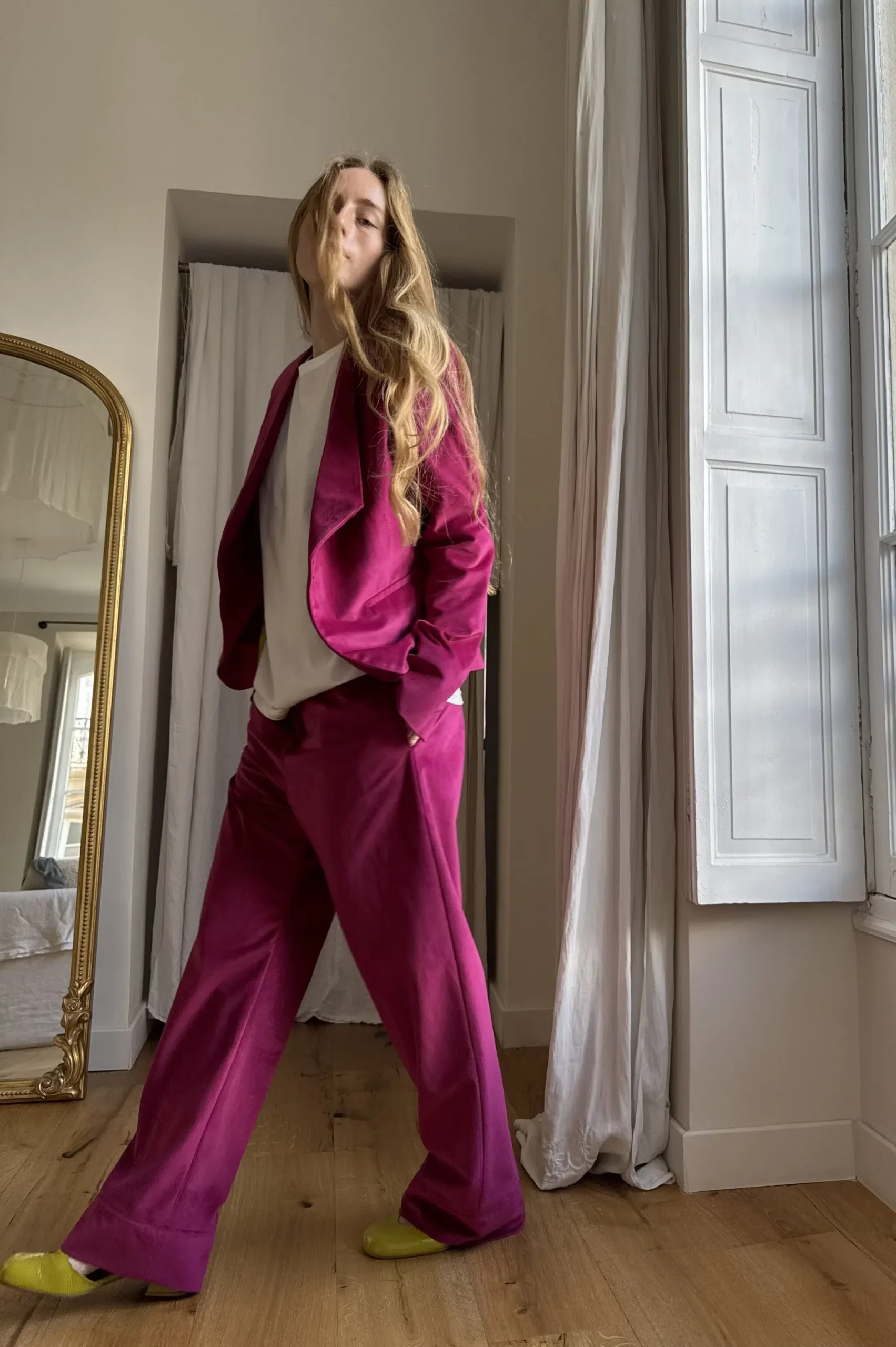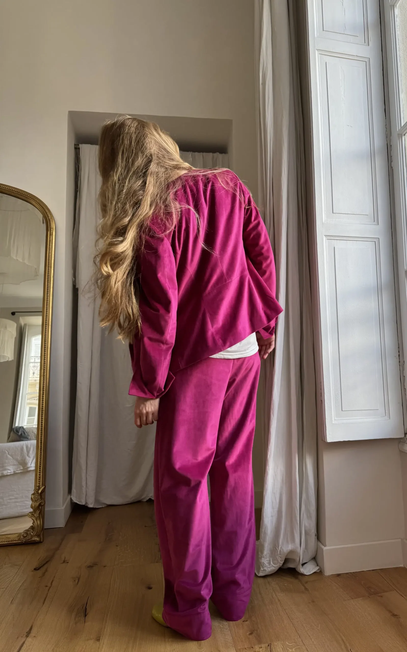 Soyez le premier à laisser votre avis sur “Pantalon « LENNY » velours lisse framboise”