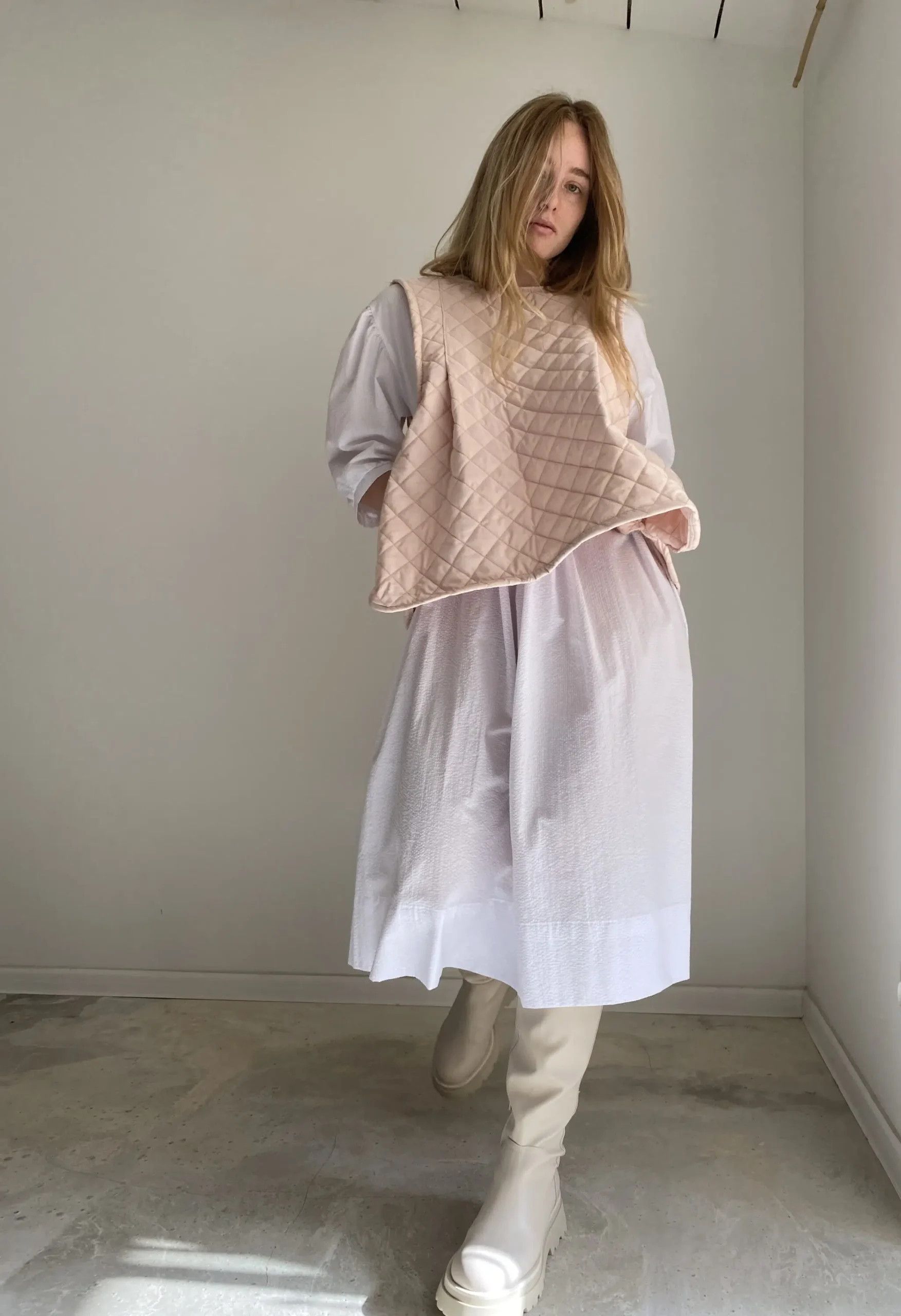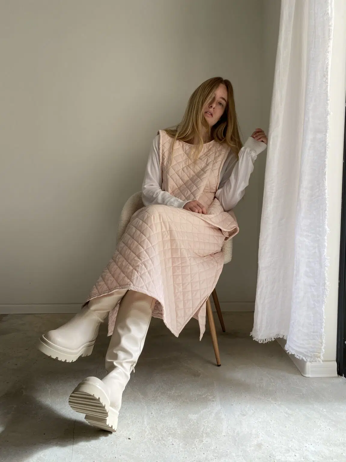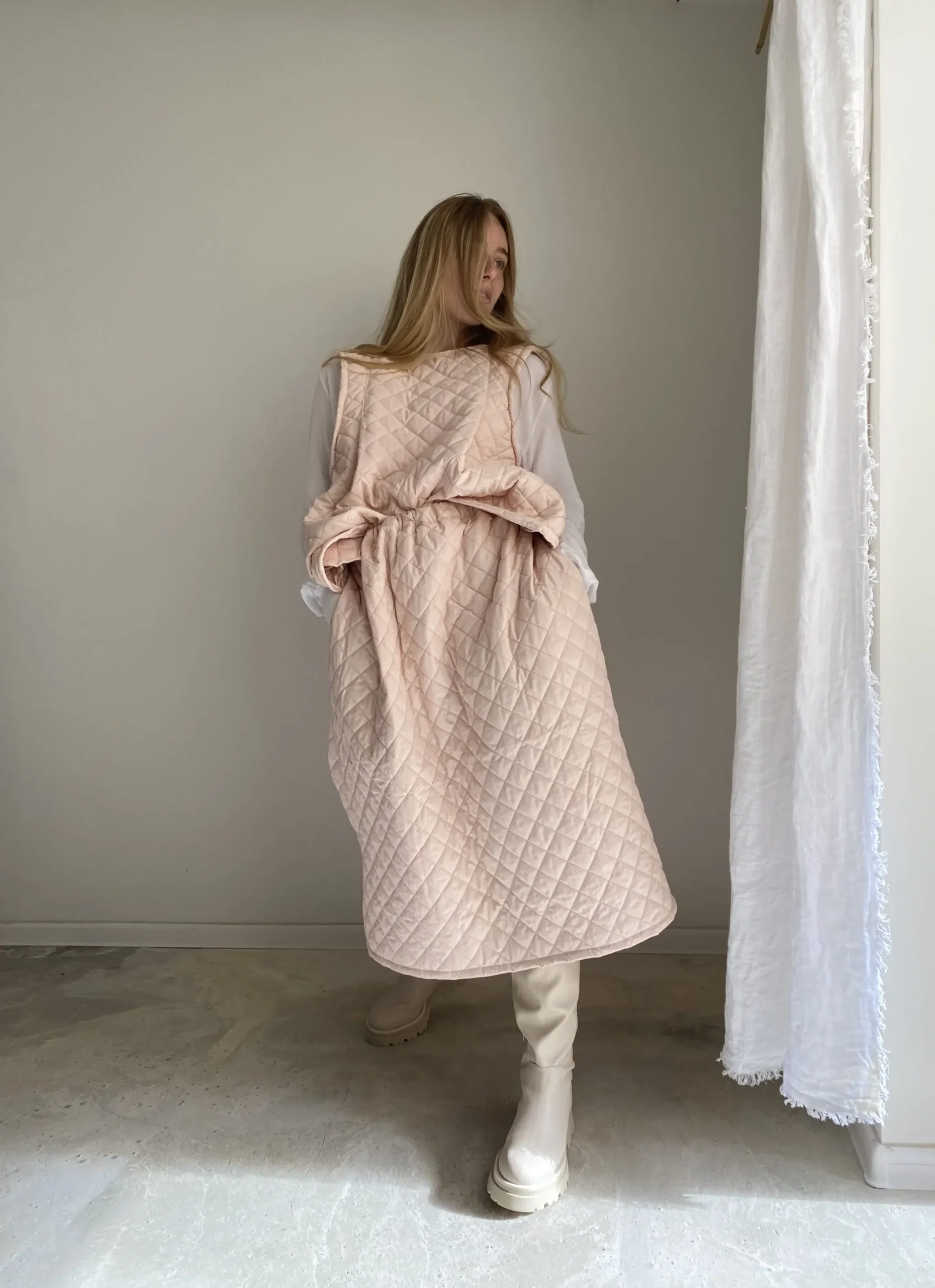 Pardessus matelassée rose poudrée, sans manches, poches latérales, léger et surtout UNIQUE ! LA pièce tendance !