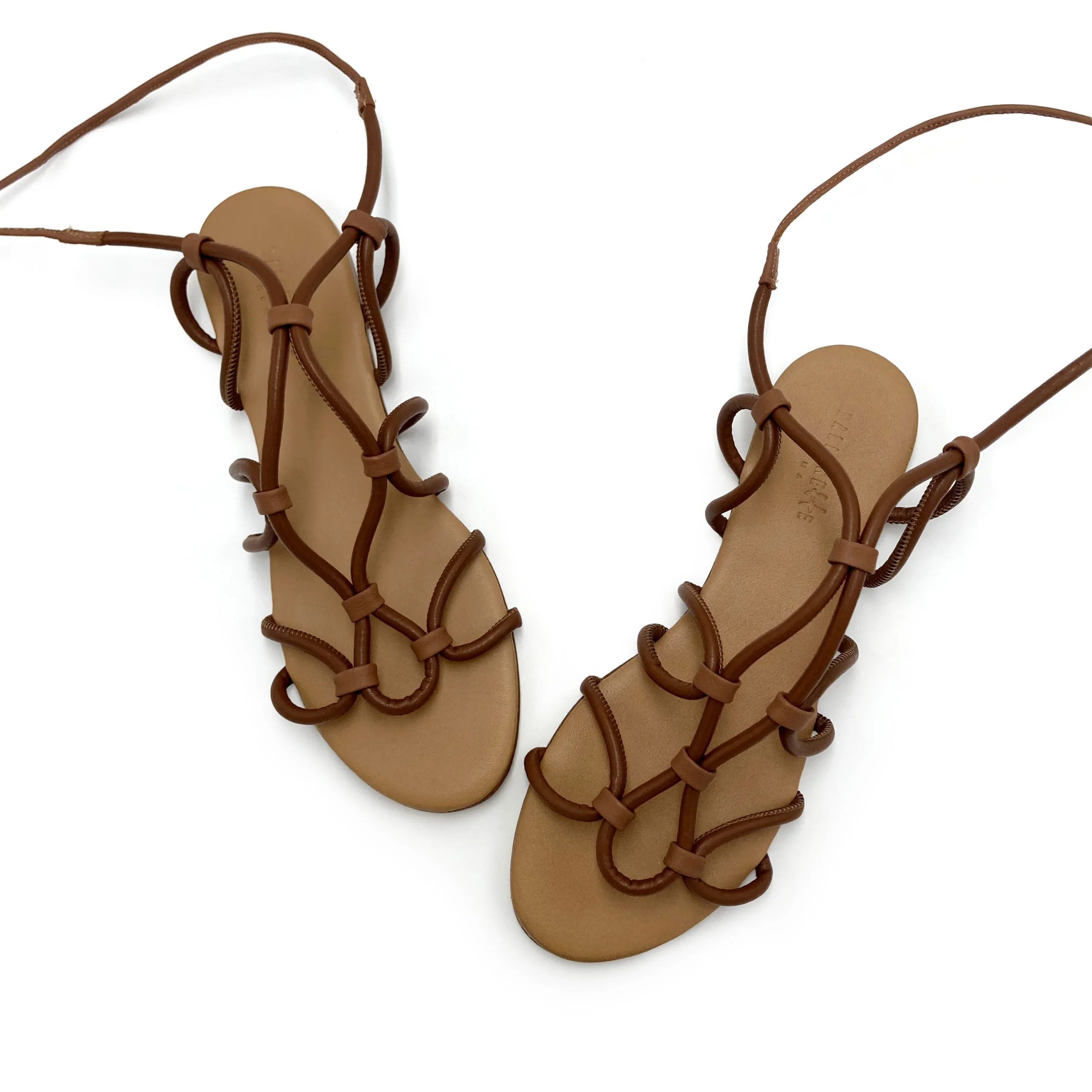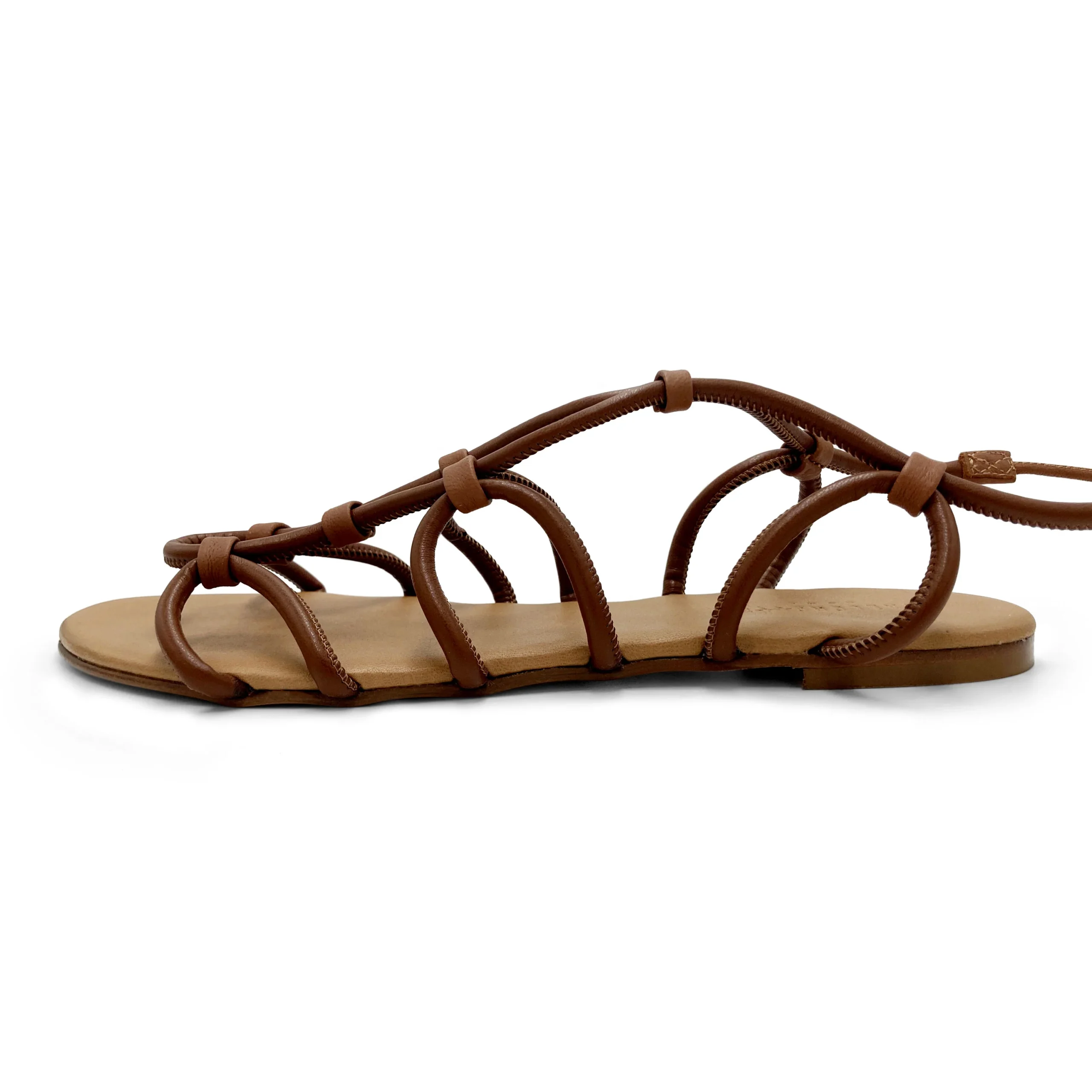 Sandali marroni in pelle con lacci alla schiava