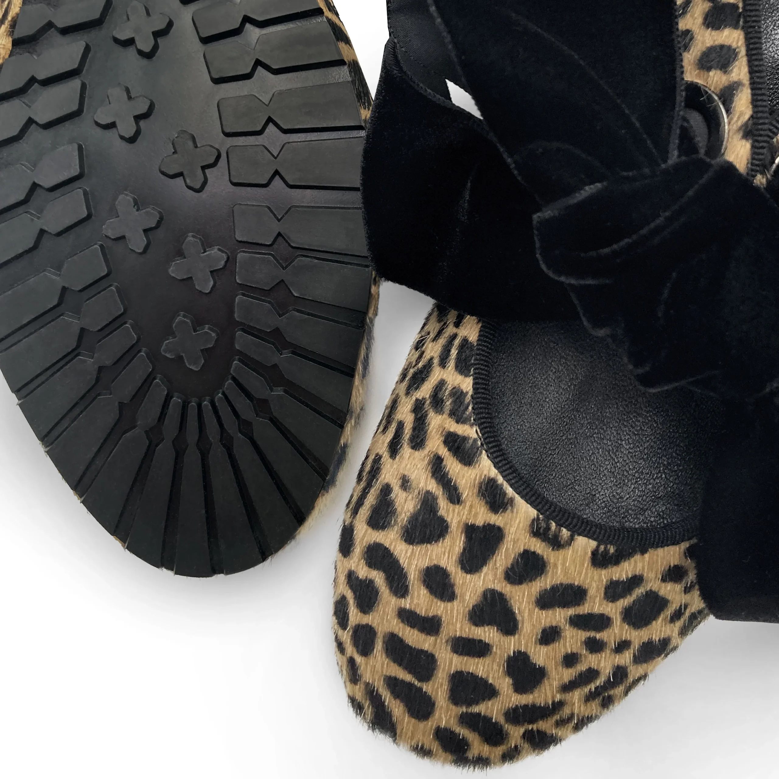 Le scarpe francesine a punta tonda modello Ottavia combinano l’eleganza della tradizione con dettagli raffinati, dando vita a uno stile intramontabile che si adatta con discrezione a ogni occasione. Progettate per chi desidera una calzatura invernale sofisticata ma estremamente versatile, si distinguono per lo scollo regolare bordato in camoscio nero e per il maxi fiocco in velluto, anch’esso nero, annodato sul dorso del piede per un tocco scenografico e femminile. La tomaia è realizzata in cavallino maculato con piccole chiazze nere su base marrone beige, una variante calda e naturale dell’animalier che conferisce carattere senza eccessi. Internamente, il sottopiede e la fodera in pelle garantiscono una calzata morbida e confortevole anche nei mesi più freddi, mentre la suola bassa in gomma con carrarmato assicura flessibilità, aderenza e leggerezza a ogni passo. Le ballerine Ottavia rappresentano l’accessorio ideale per chi ama uno stile distintivo ma equilibrato. Perfette di giorno con pantaloni cropped in lana e un pullover a collo alto, oppure con una gonna midi plissé e una camicia in seta; di sera, completano con eleganza un abito in velluto liscio, una jumpsuit minimal o un tailleur morbido nei toni scuri. Un modello pensato per chi non rinuncia a femminilità, comfort e personalità, anche nelle giornate più fredde.