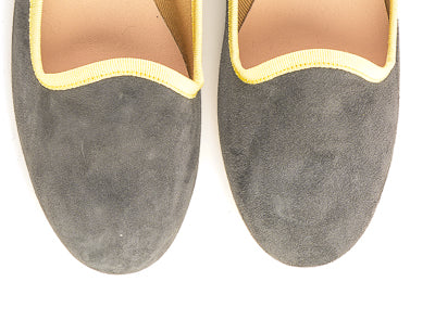 In particolare, in questa elegante versione in camoscio grigio fumo con gros grain giallo limone sono le scarpe pantofola da donna perfette per essere indossate in tante situazioni diverse senza mai rinunciare al proprio stile.