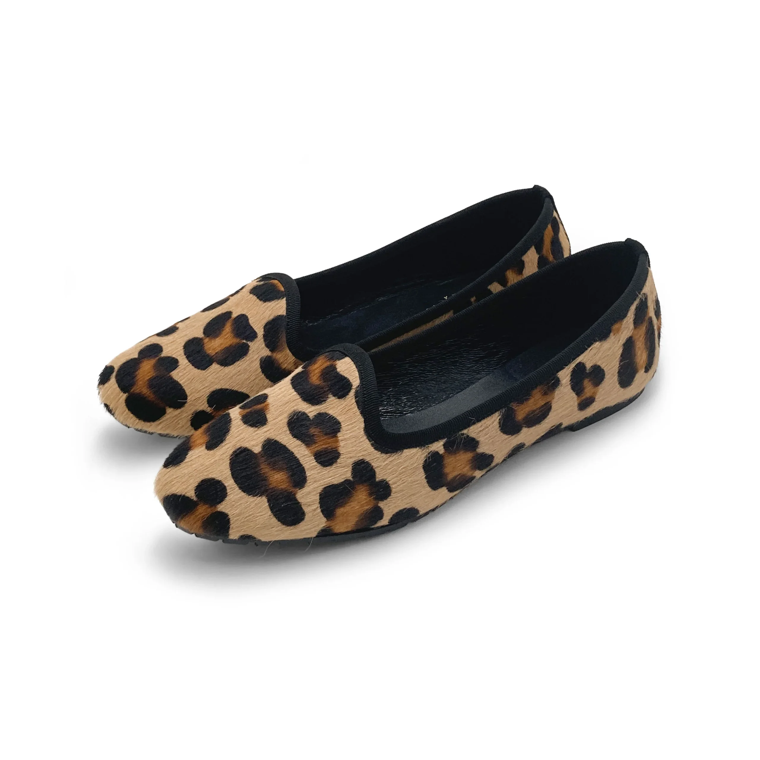 Le Saba sono il modello di slippers donna a punta tonda pratico e moderno, reso ancora più glamour dalla proposta in cavallino maculato. Con tacco basso 0,5 cm, questa variante è arricchita da una comoda suola carrarmato leggero in gomma nera. La fodera e il morbido sottopiede sono in pelle nera, pensati per rendere queste scarpe basse perfette da indossare anche durante i mesi invernali. La scarpa è bordata da un gros grain in cotone nero.