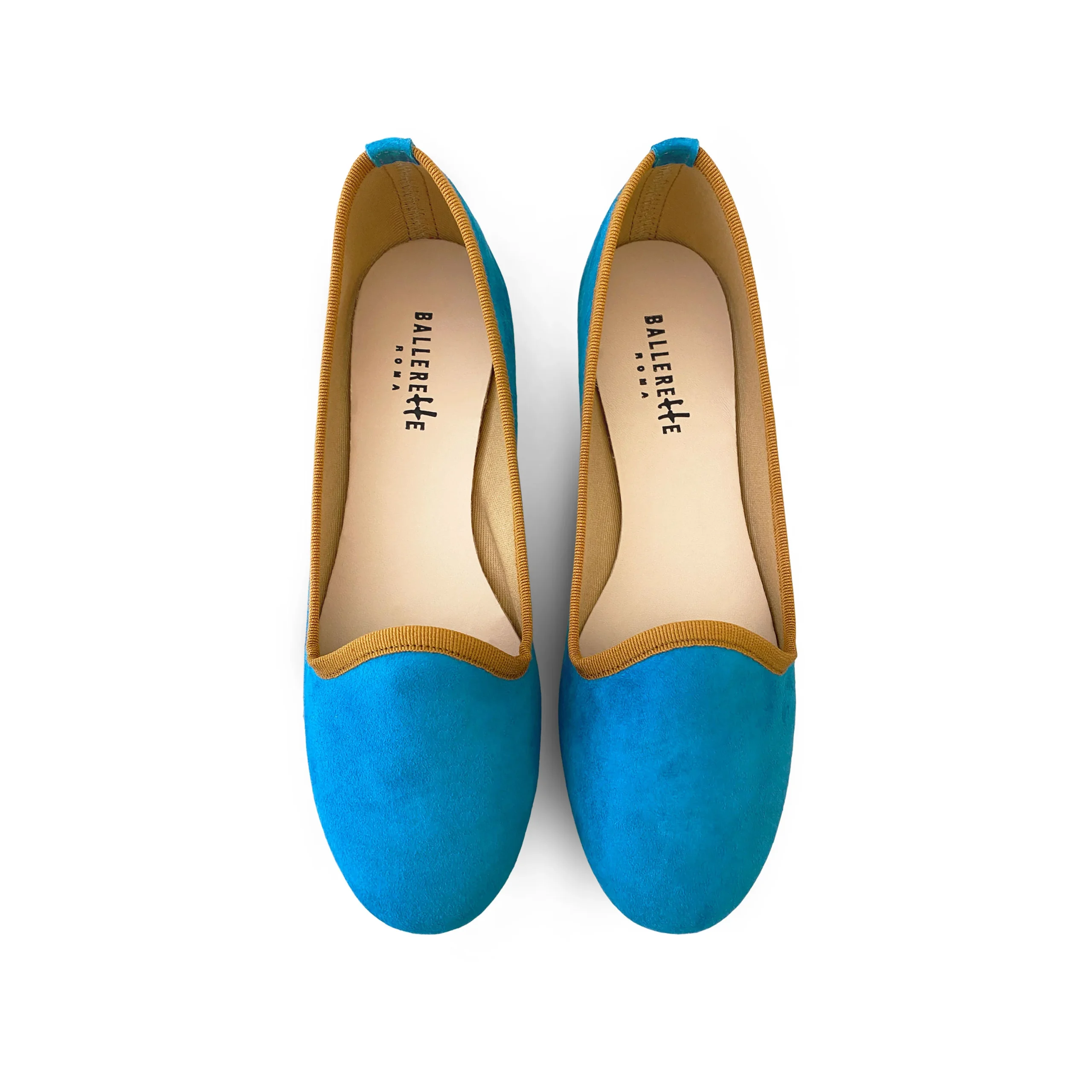 Le Saba sono le slippers femminili e versatili, che potrai indossare senza rinunciare alla comodità. La fodera è in cotone nei toni neutri del beige, con sottopiede in pelle in tinta, pensati per poterle indossare con praticità tutta la giornata. La punta tonda accompagna la linea essenziale e moderna di queste scarpe basse stile furlane in morbido camoscio azzurro con gros grain a contrasto nei caldi toni dell’ambra.