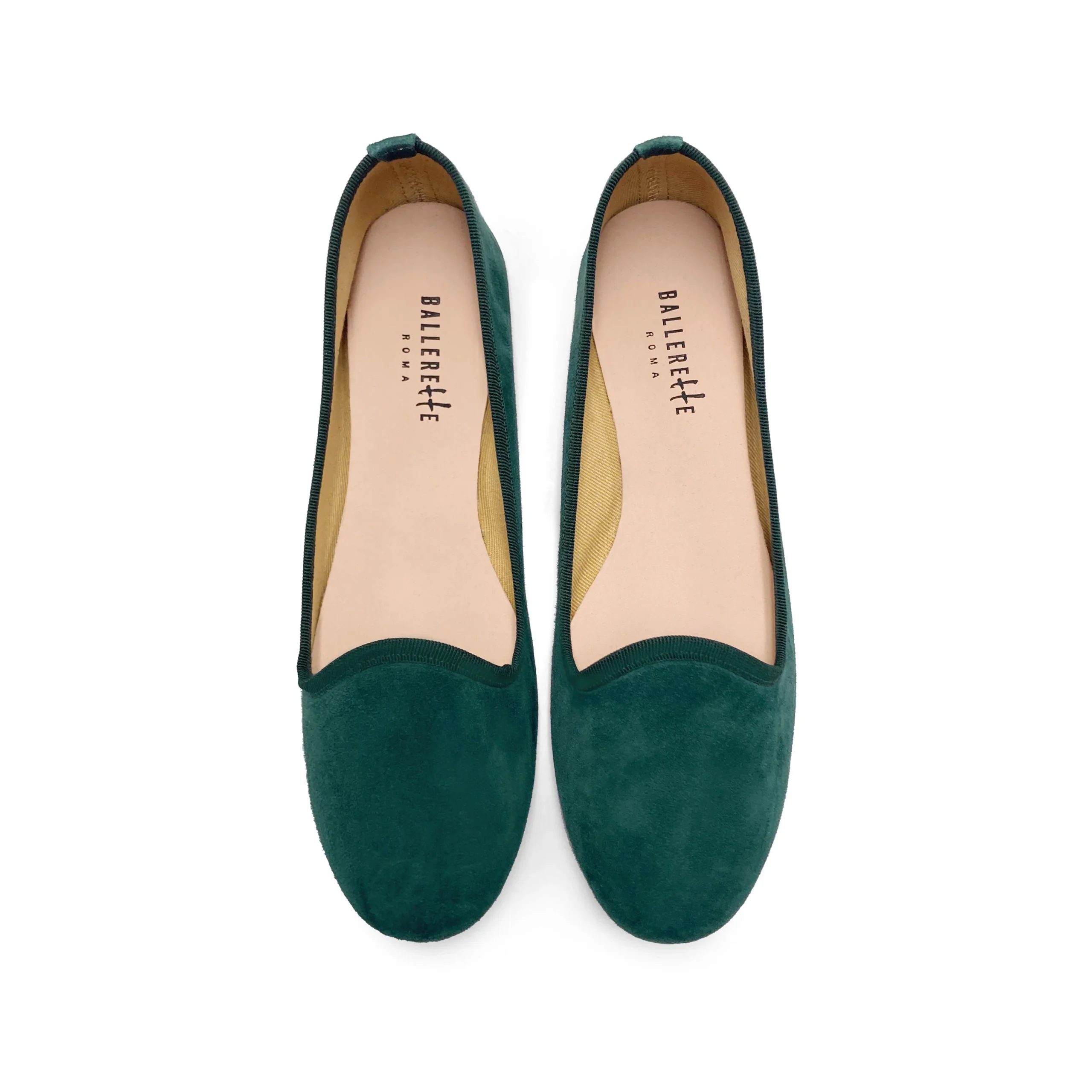 Le slippers o pantofoline Saba sono un modello di scarpe basse da donna che ricorda lo stile delle « furlane » per la loro forma avvolgente e mascherina alta. Comode da indossare in ogni stagione, grazie alla fodera in cotone e sottopiede in pelle, sono realizzate in morbido camoscio di colore verde bottiglia, una tinta versatile ed elegante. Indossale sia con calze che a piede nudo e abbinale con i tuoi look in ogni stagione, scoprirai gli infiniti usi di questa scarpa iconica della collezione BallereTTe.